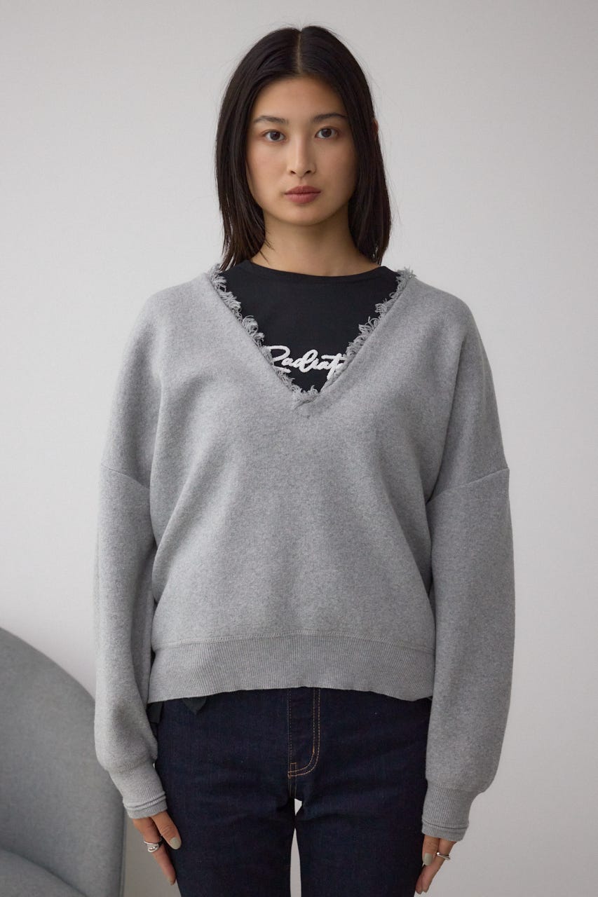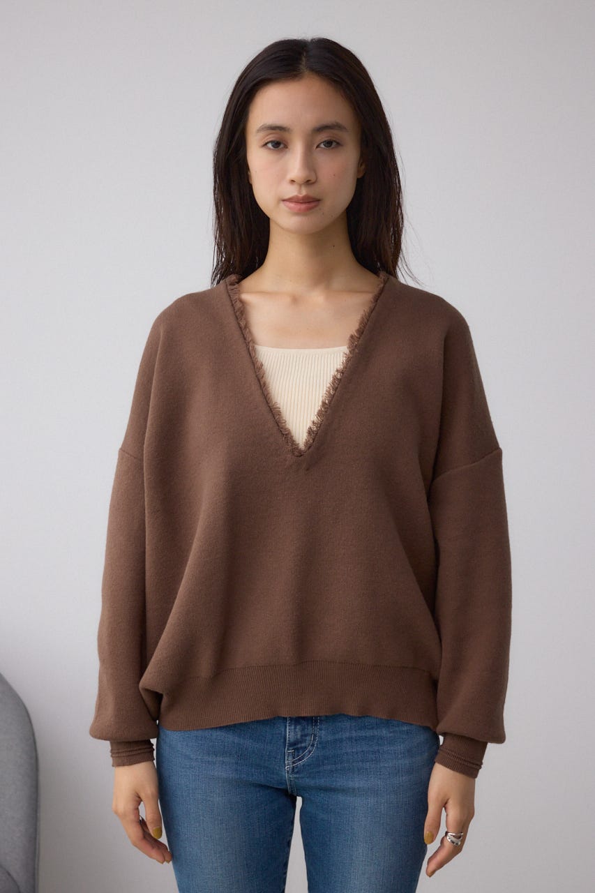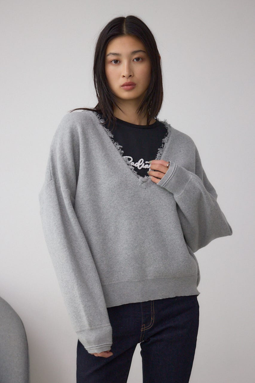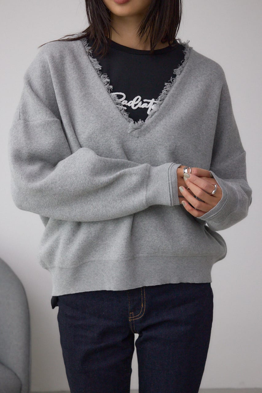 カジュアルな素材感に深めのVネックを入れたプルオーバー。