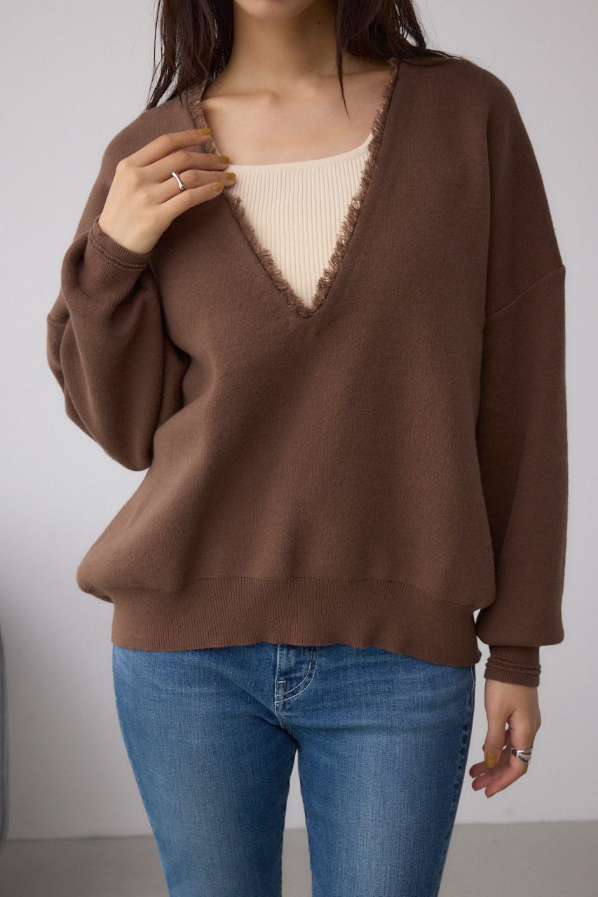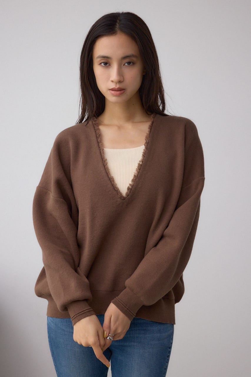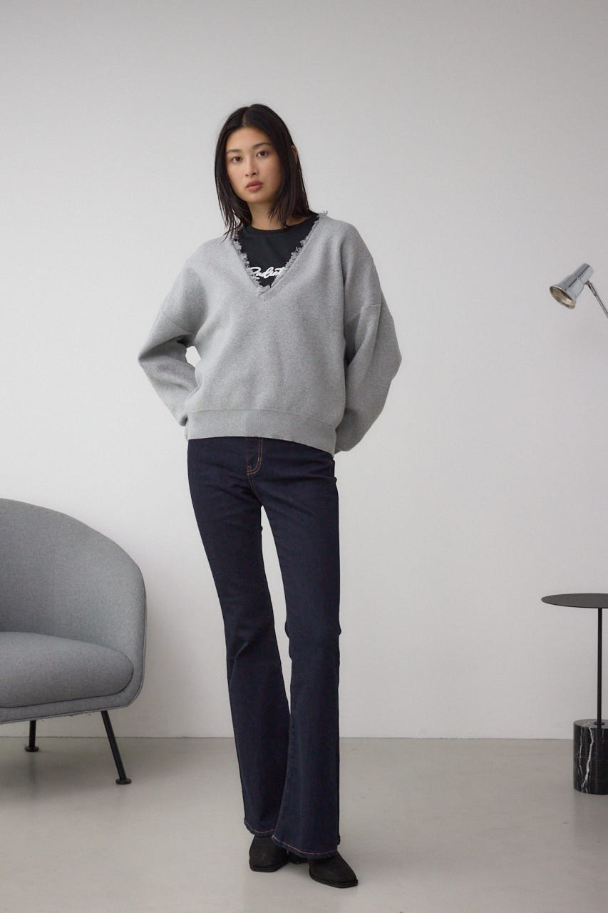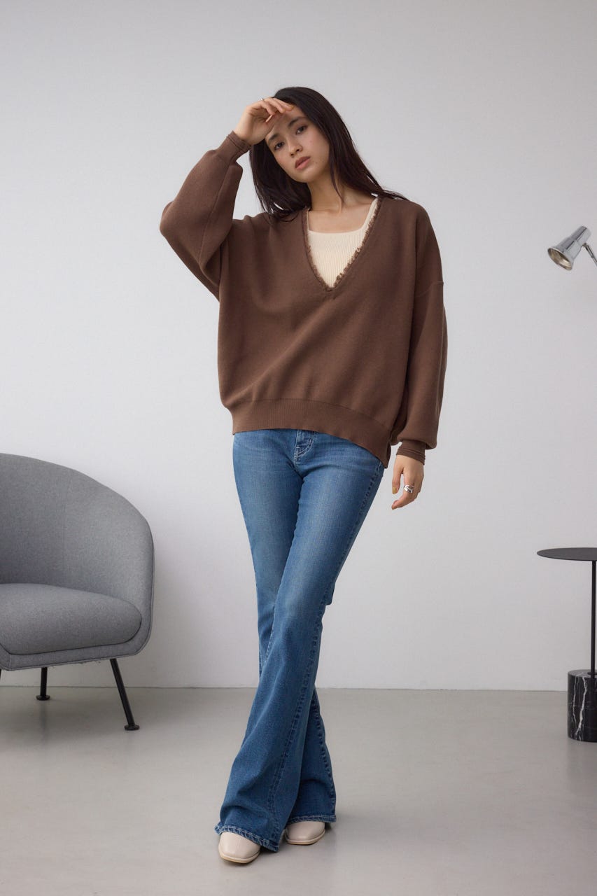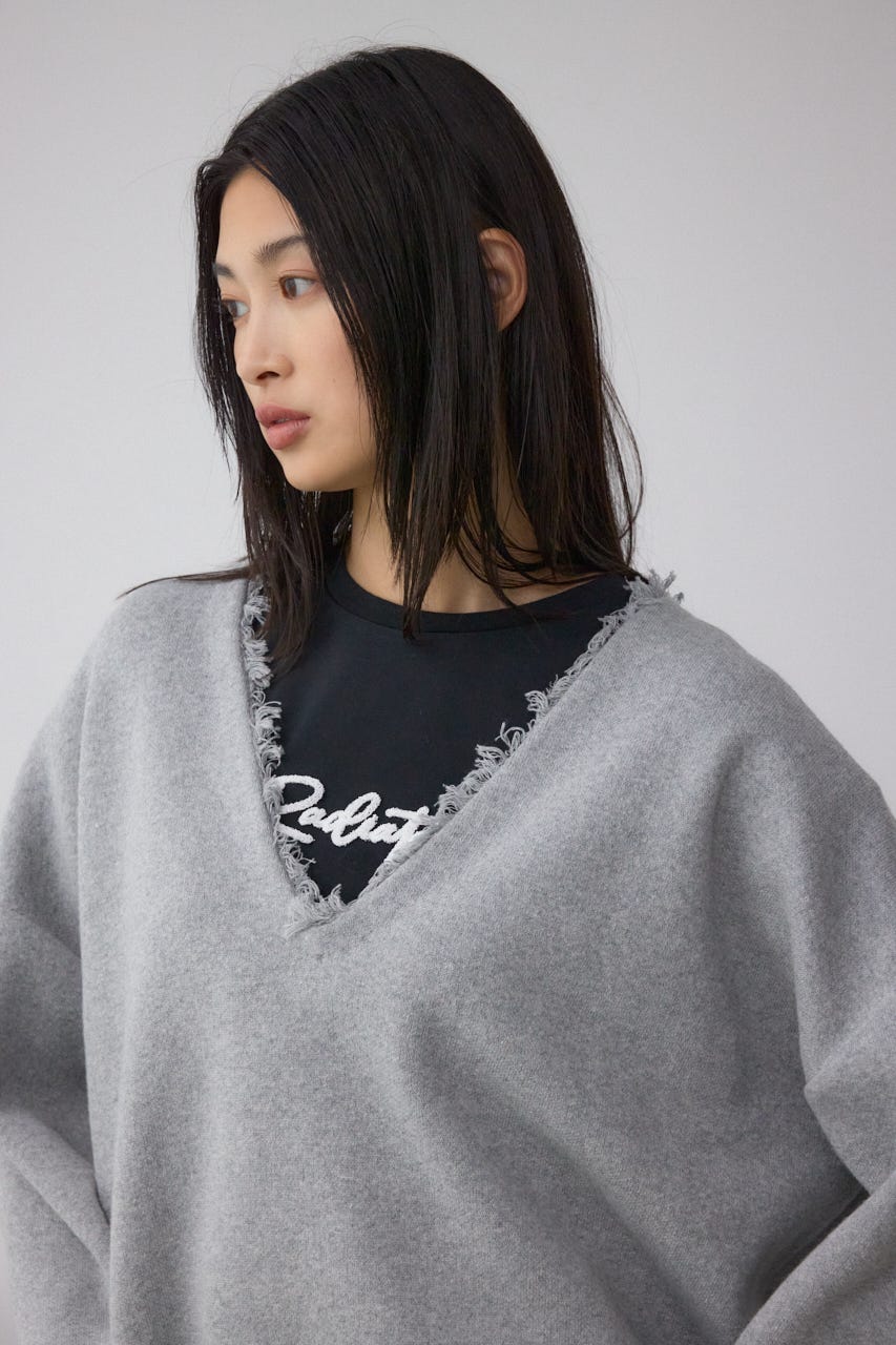 カジュアルな素材感に深めのVネックを入れたプルオーバー。