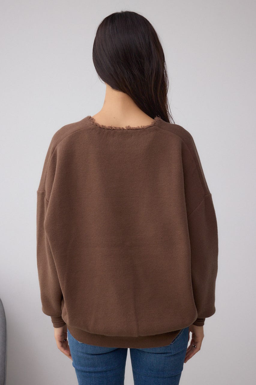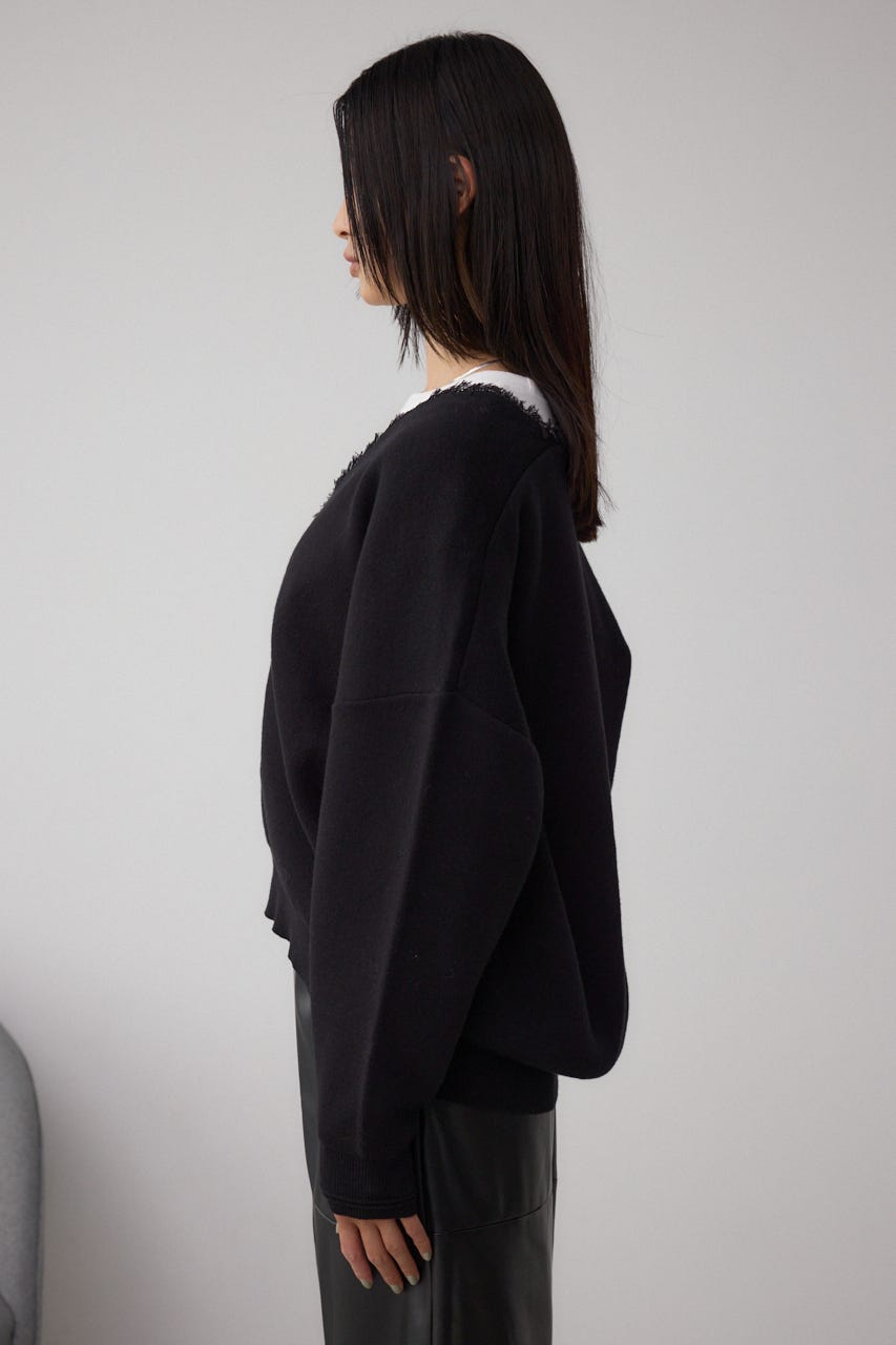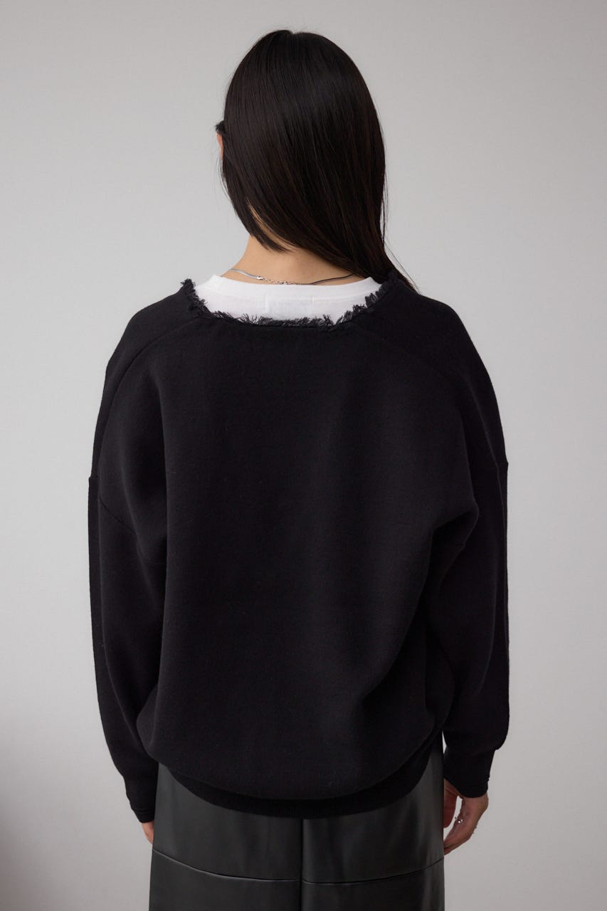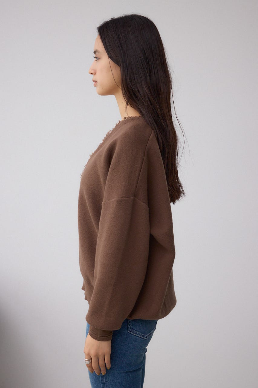 カジュアルな素材感に深めのVネックを入れたプルオーバー。