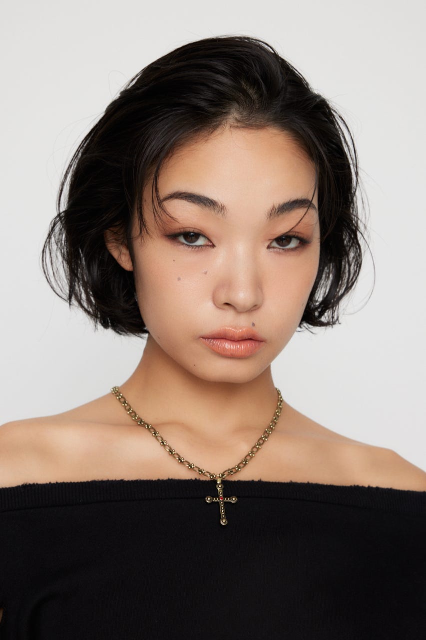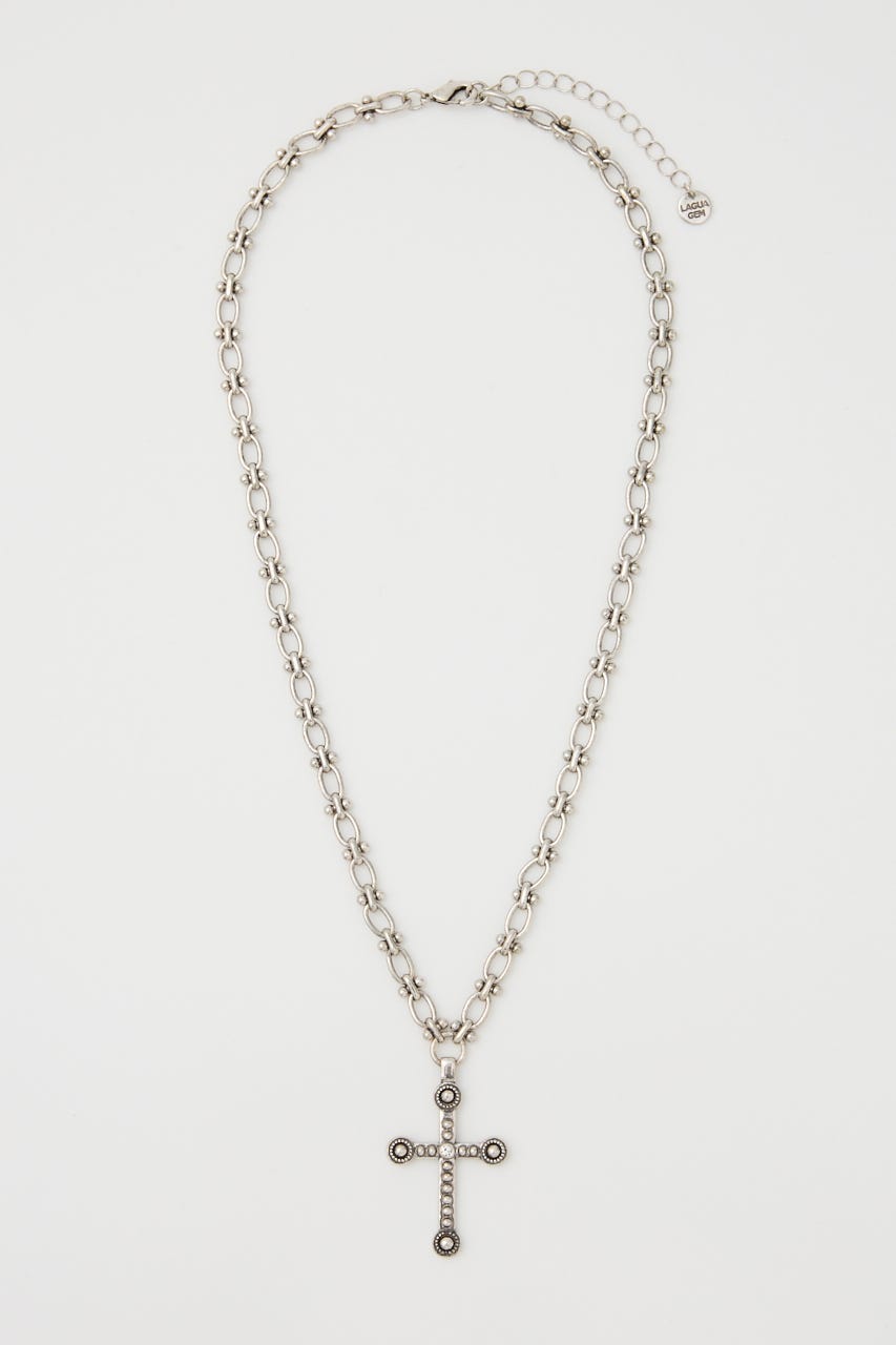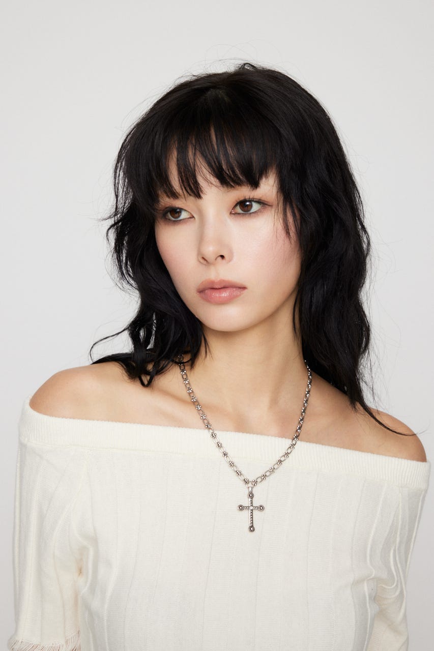 ■DETAIL:少し長めのチェーンでクロスが目立つデザイン。