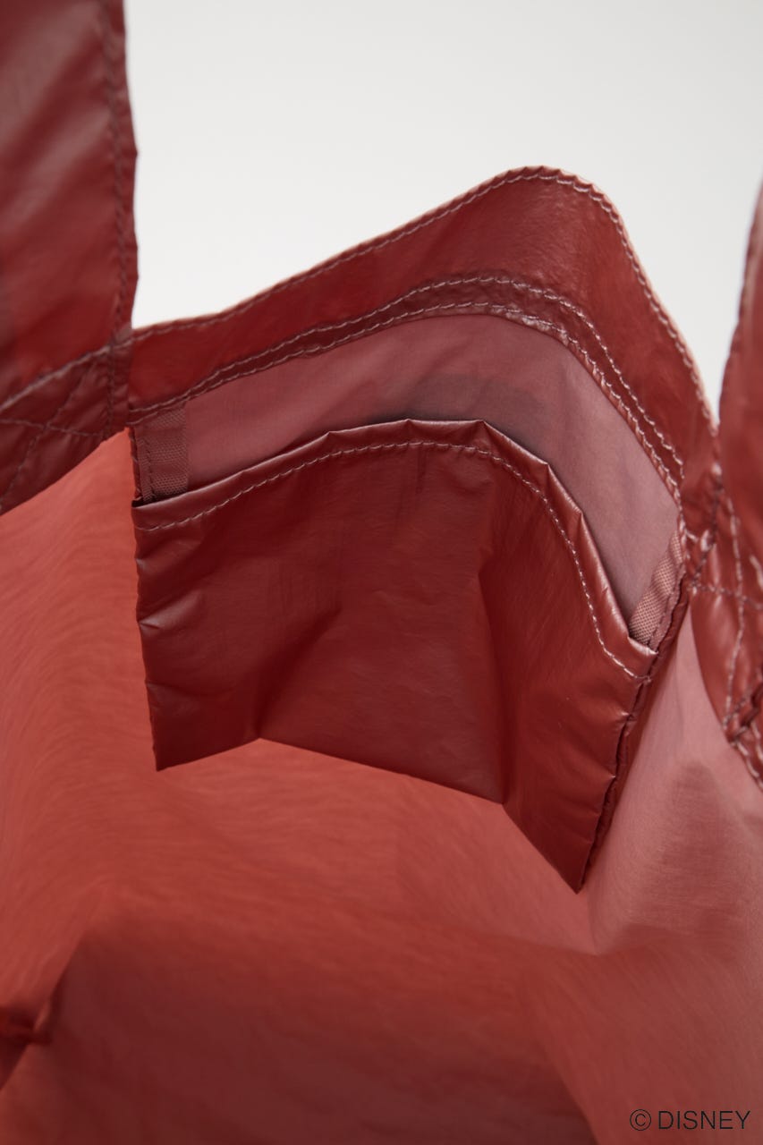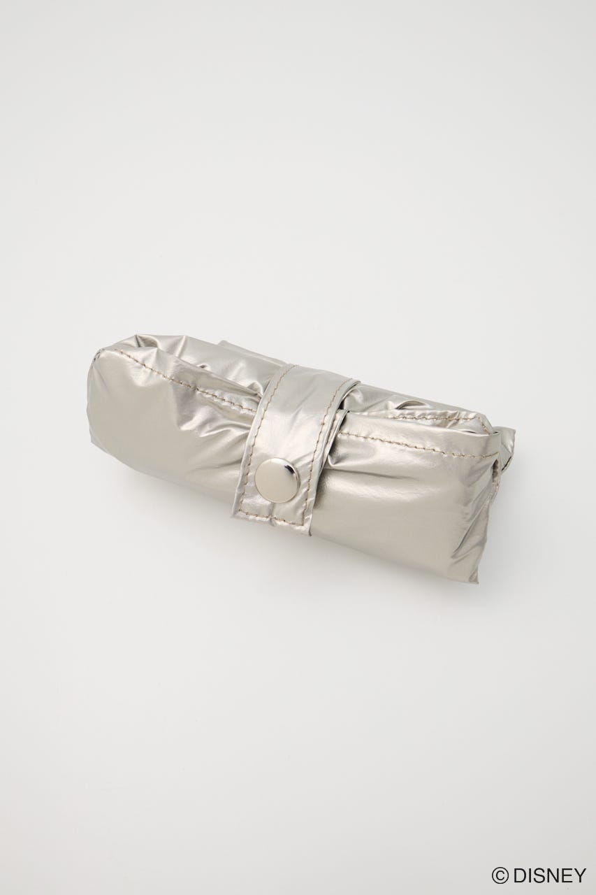 軽いメタリックな表情の素材にプリントしパッカブル仕様なので使わない時は小さく丸めてバッグに入れておけます。