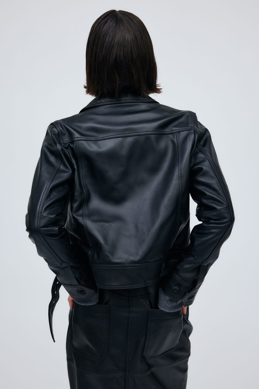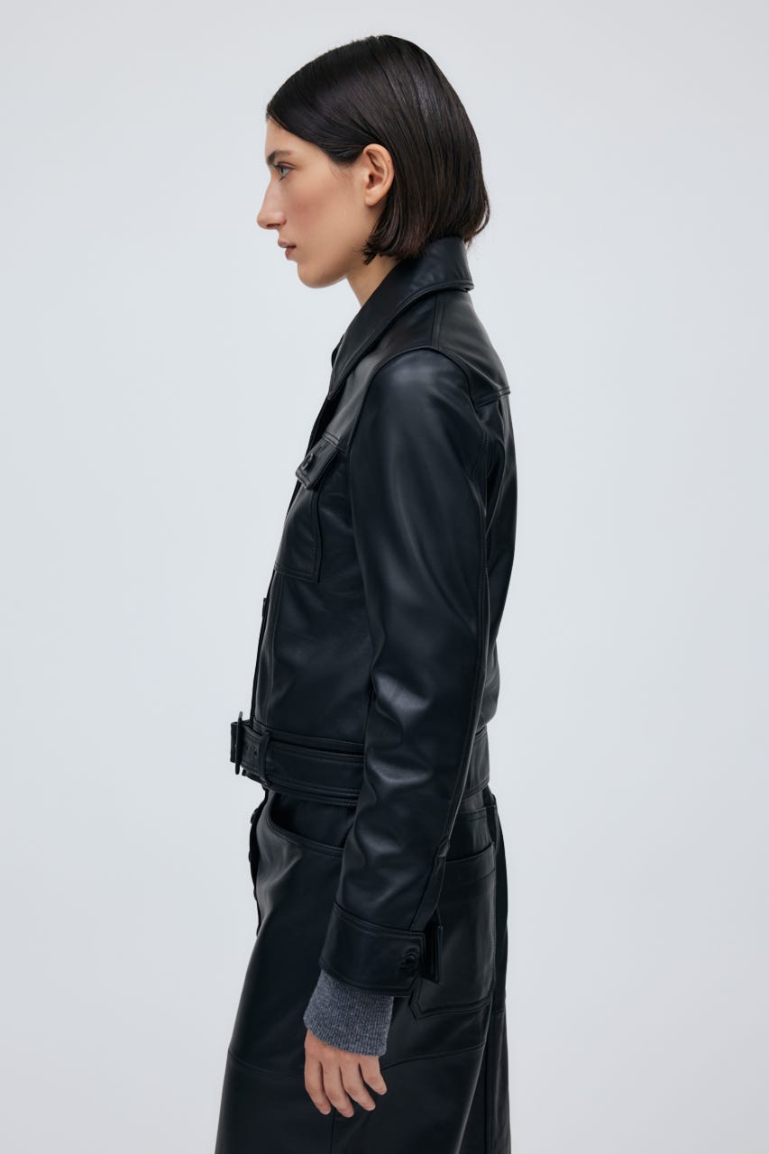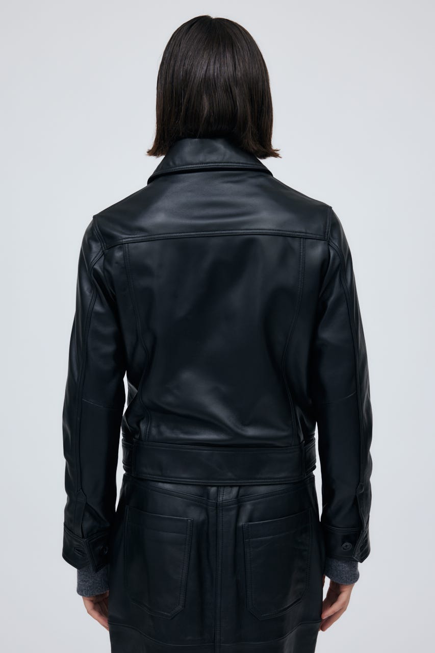同シリーズのLamb Leather Pencil Skirtとのセットアップコーデもおすすめ。
