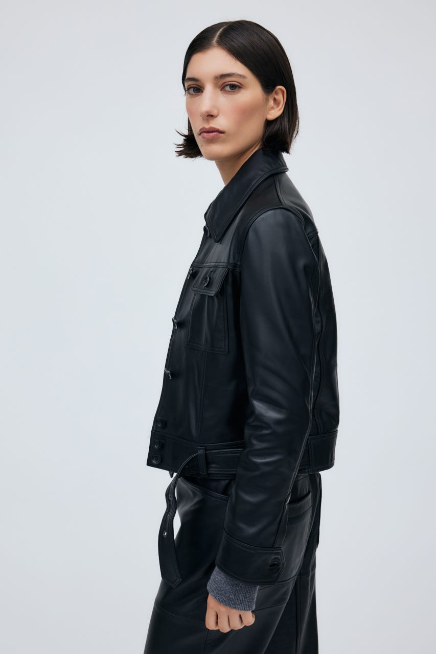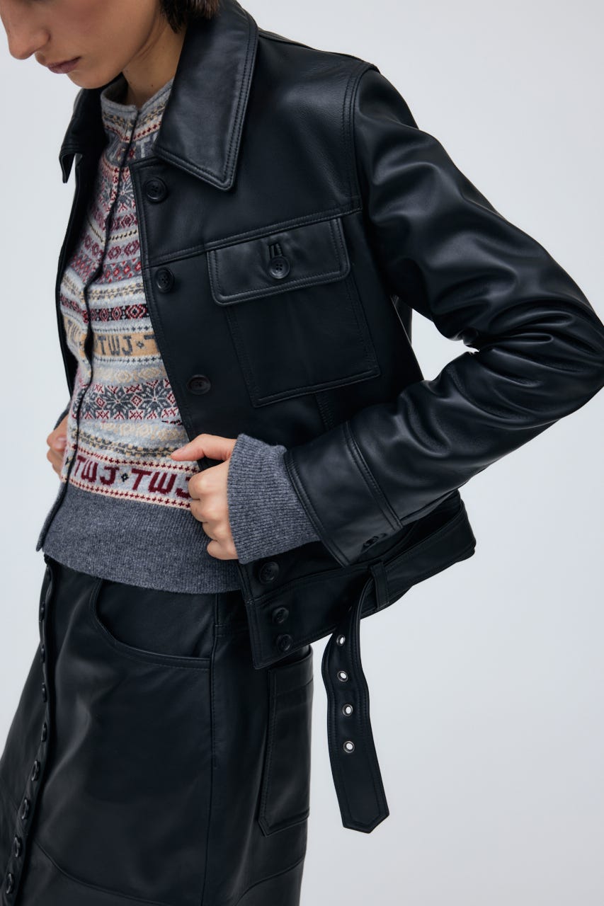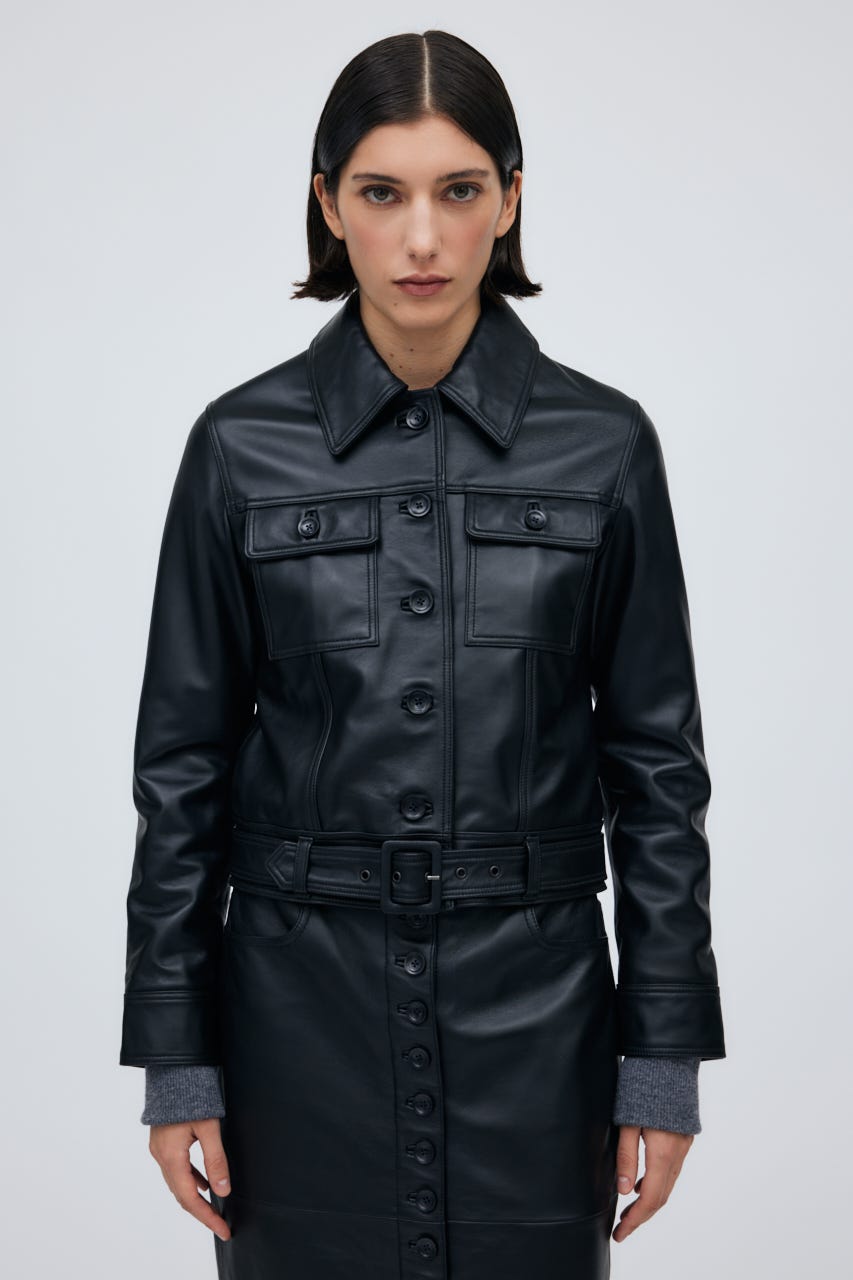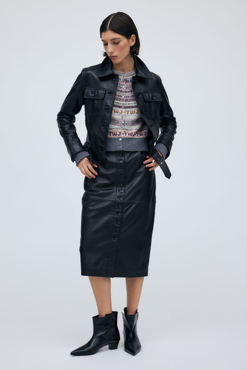 同シリーズのLamb Leather Pencil Skirtとのセットアップコーデもおすすめ。