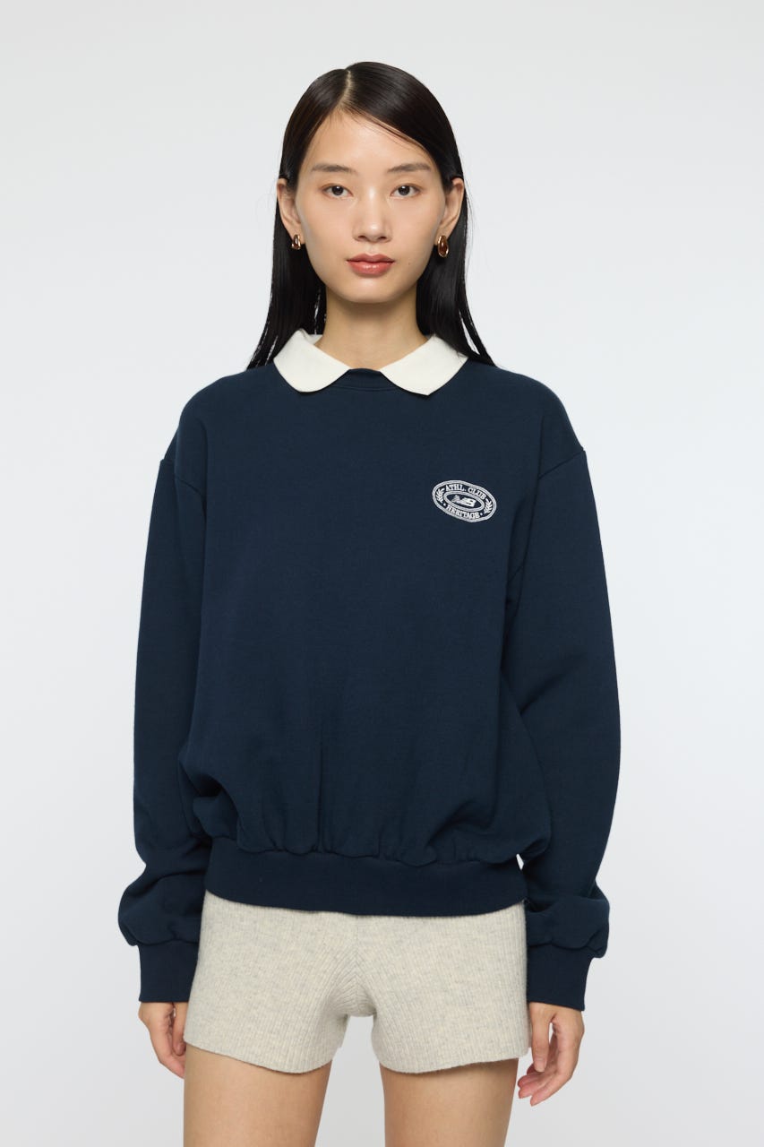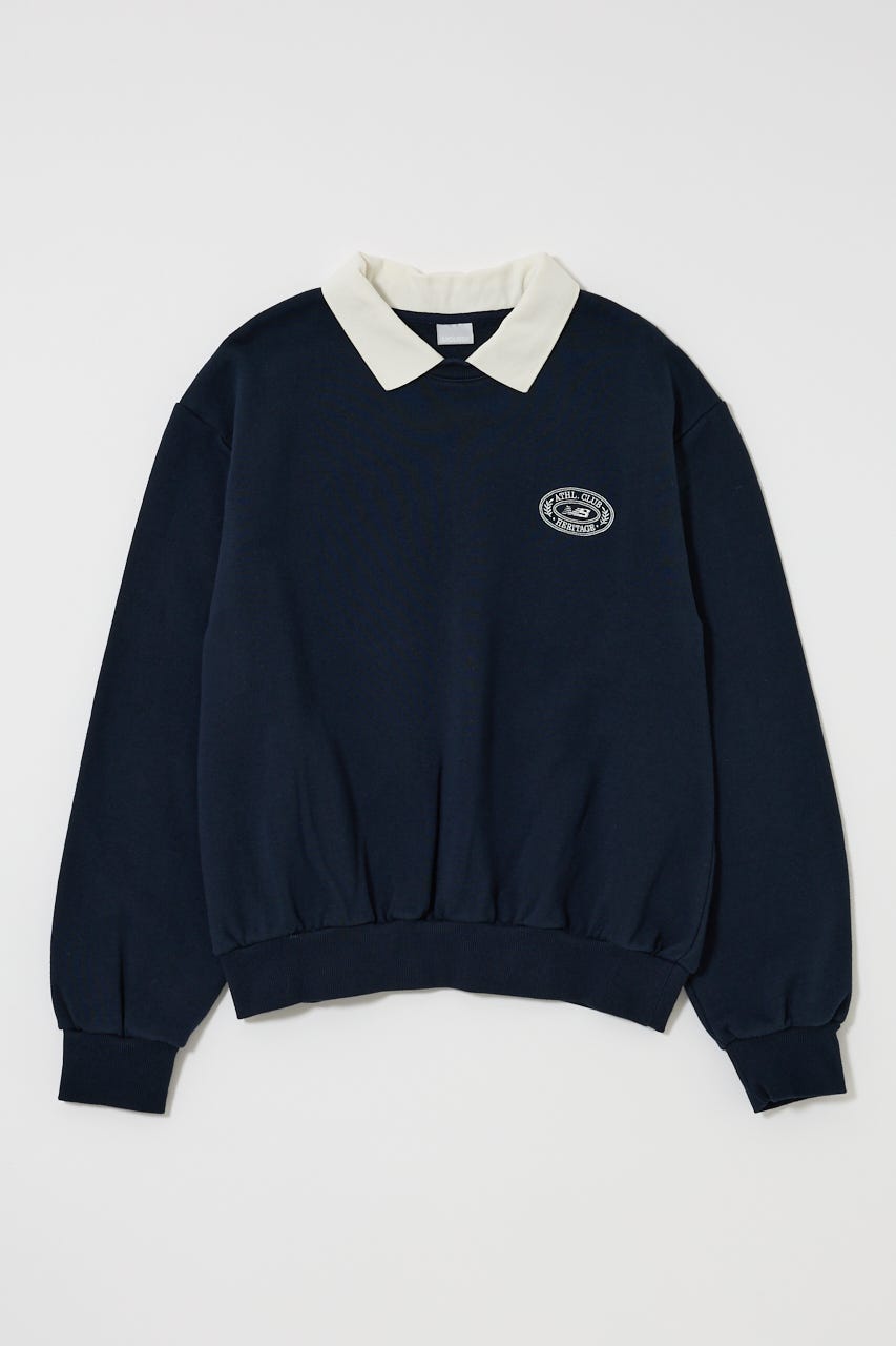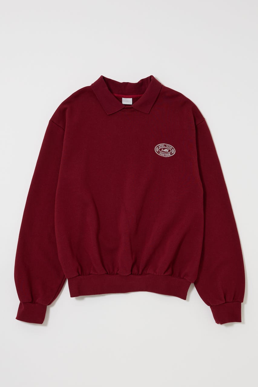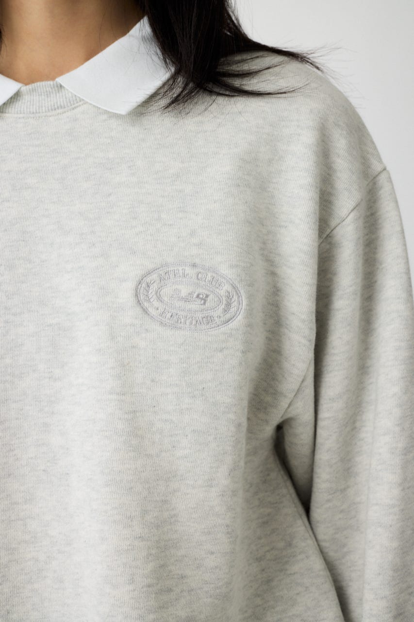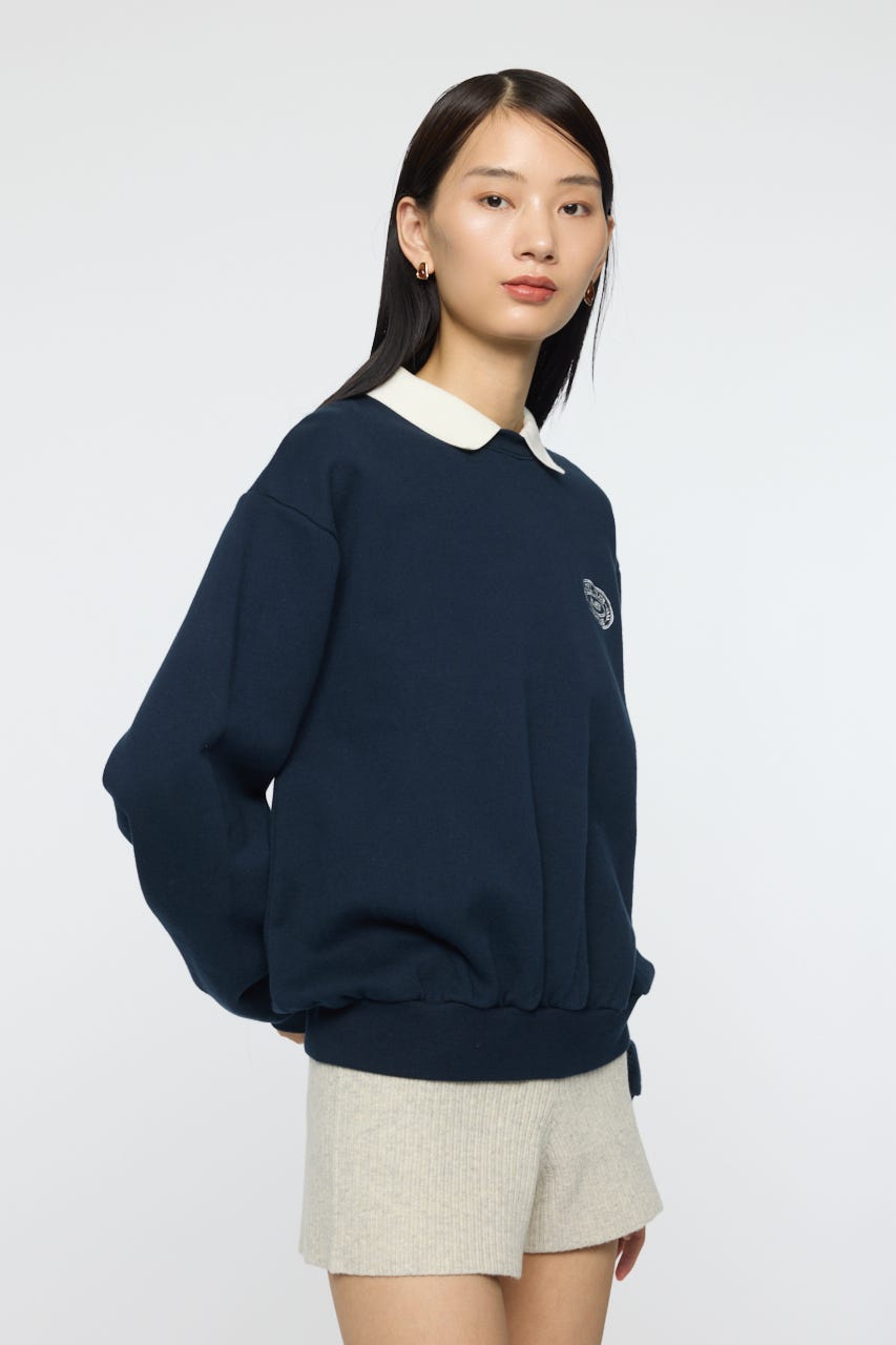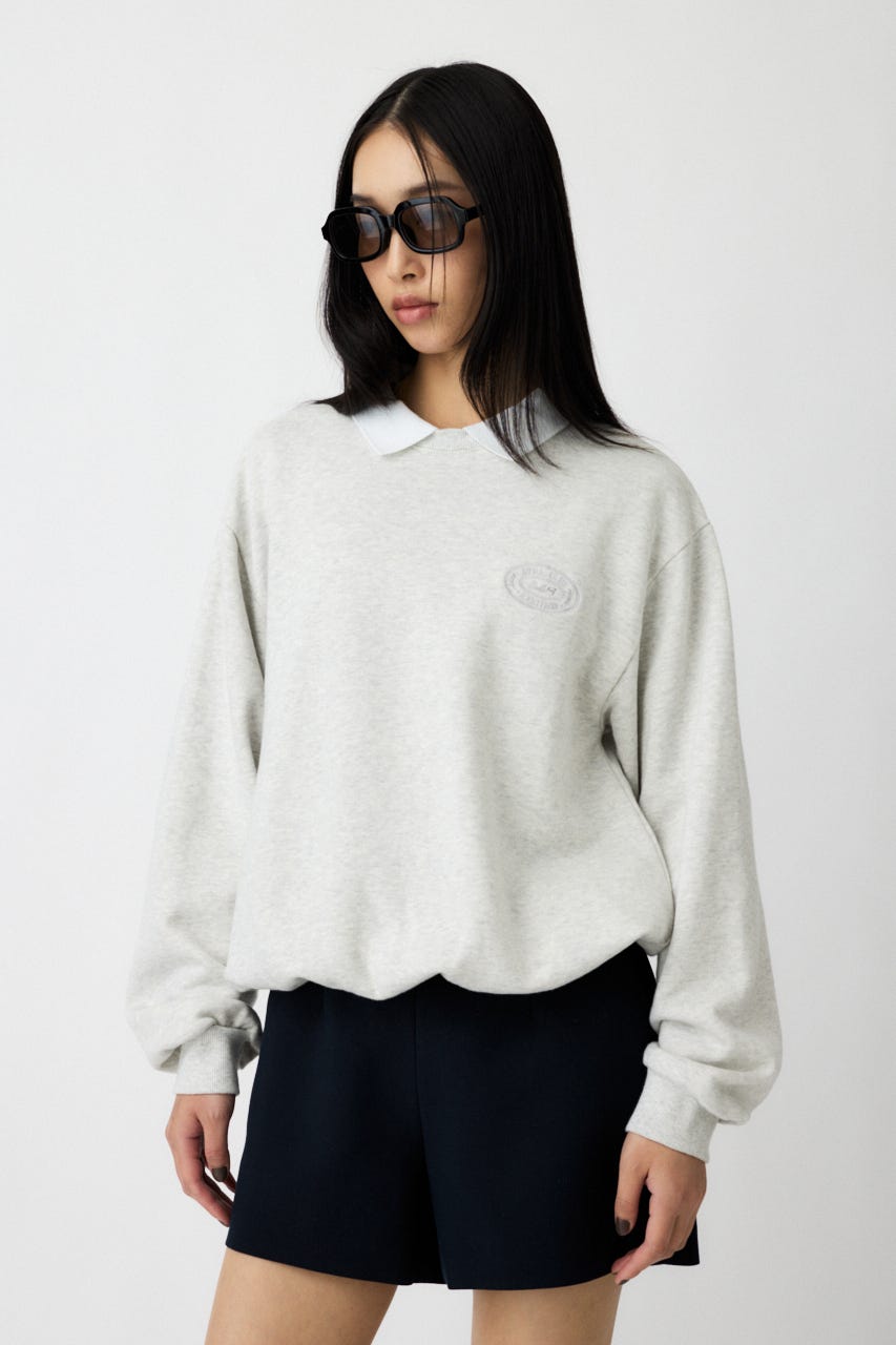 襟付きのスウェットにワンポイント刺繍を施した、クラシカルな雰囲気が魅力の1枚。