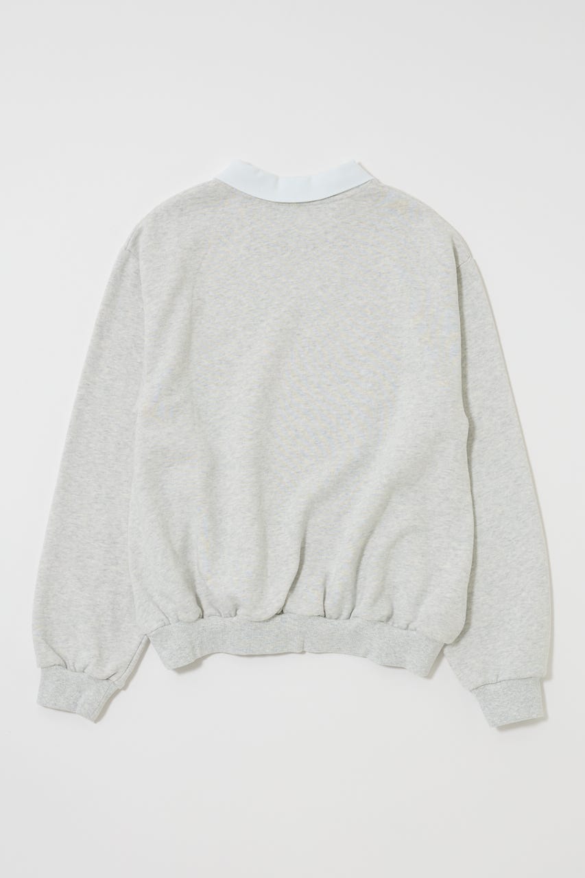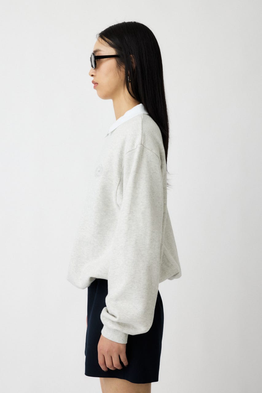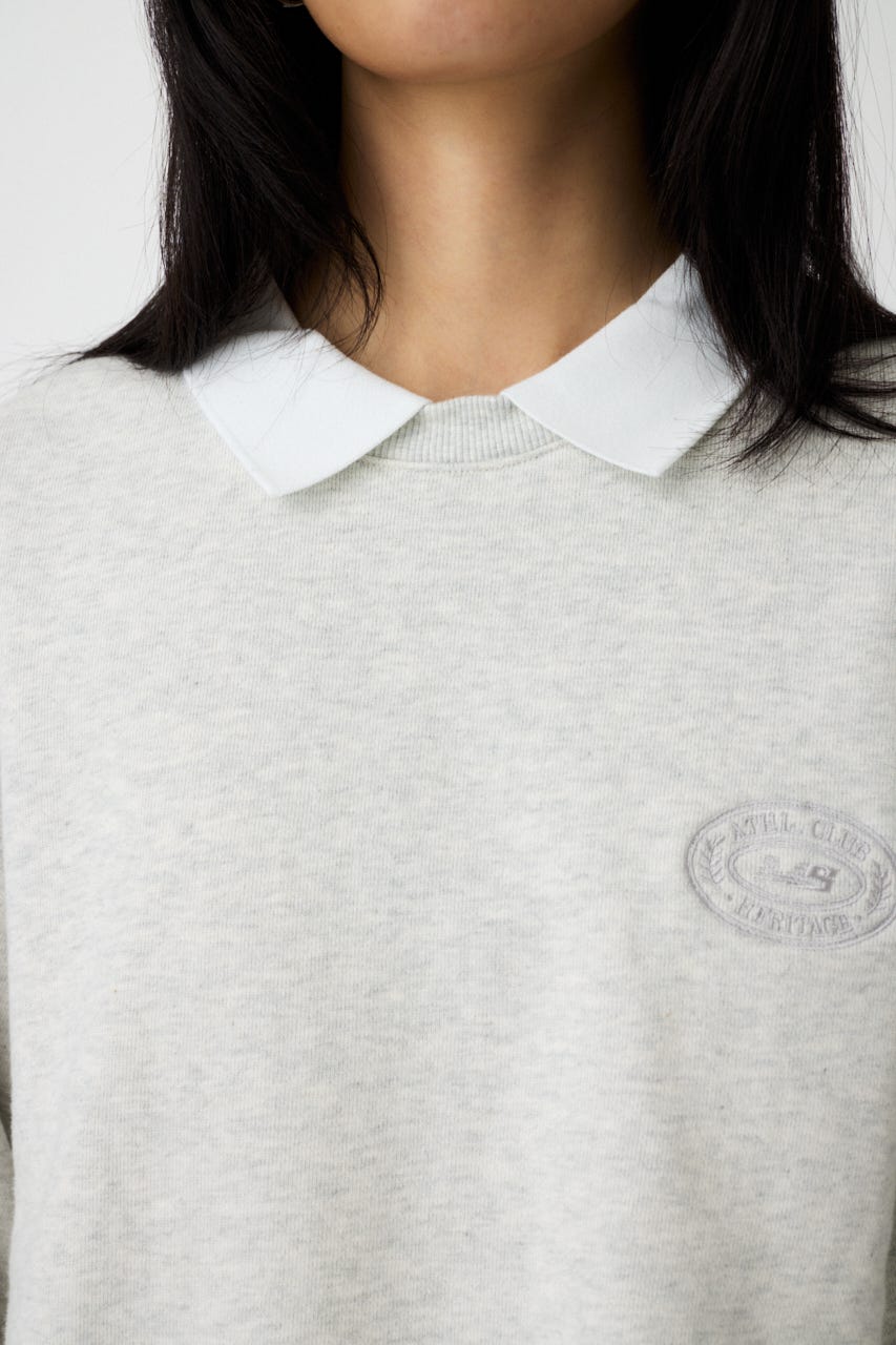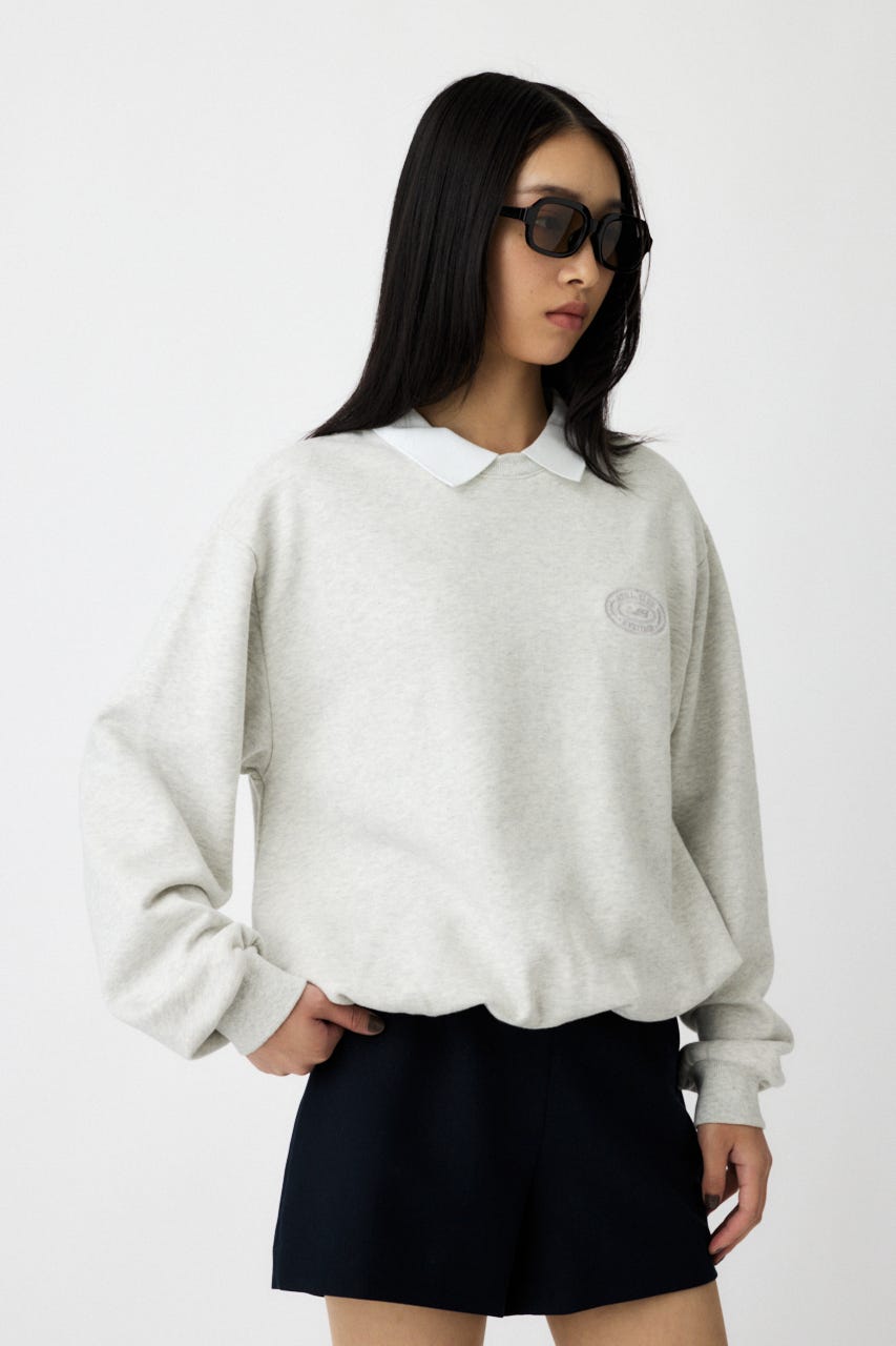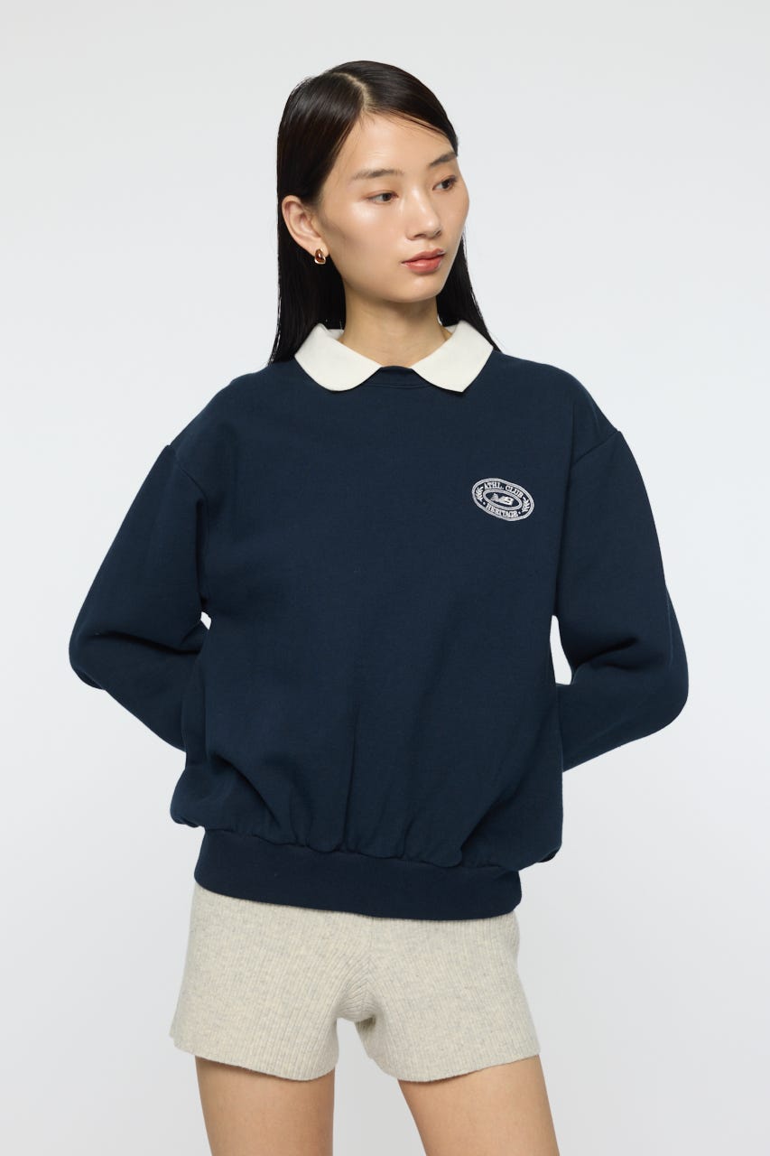 襟付きのスウェットにワンポイント刺繍を施した、クラシカルな雰囲気が魅力の1枚。