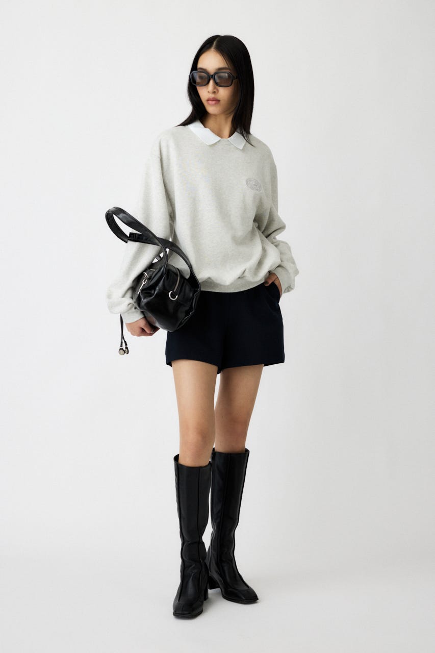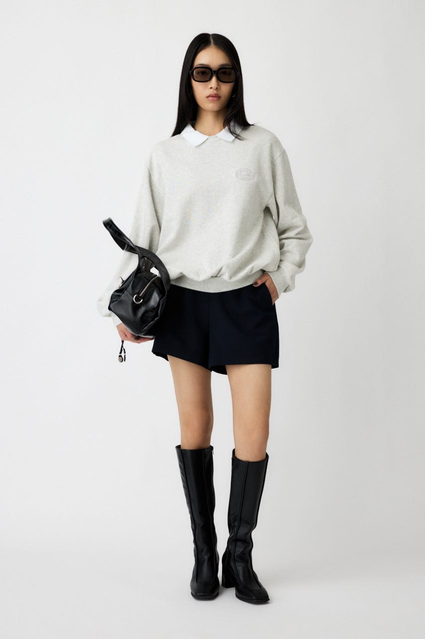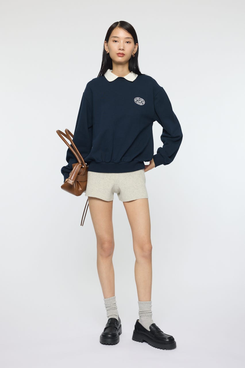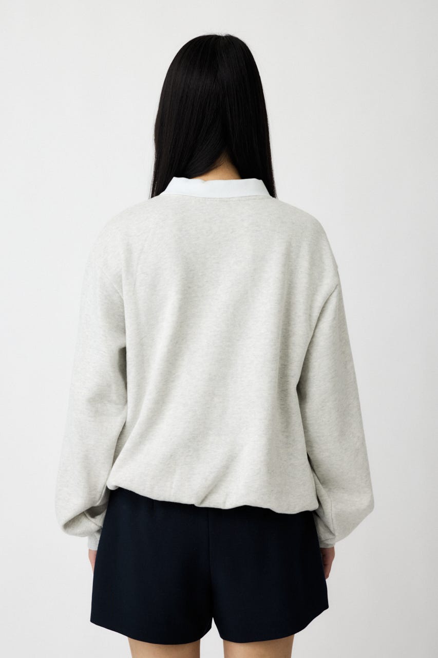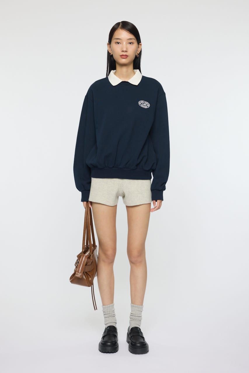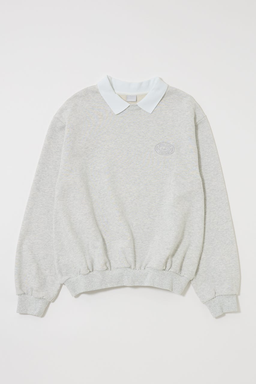 襟付きのスウェットにワンポイント刺繍を施した、クラシカルな雰囲気が魅力の1枚。