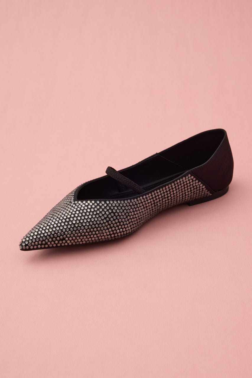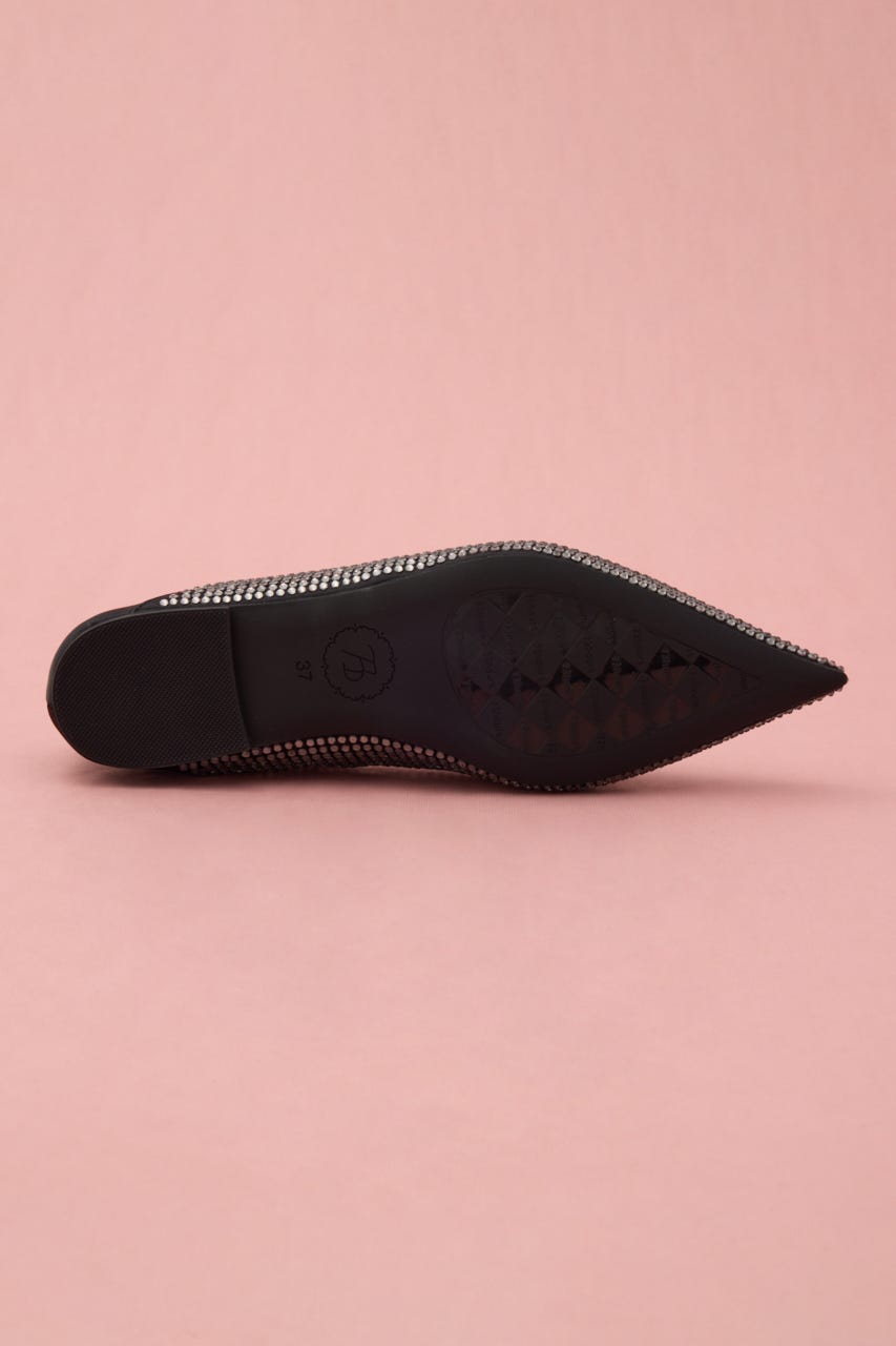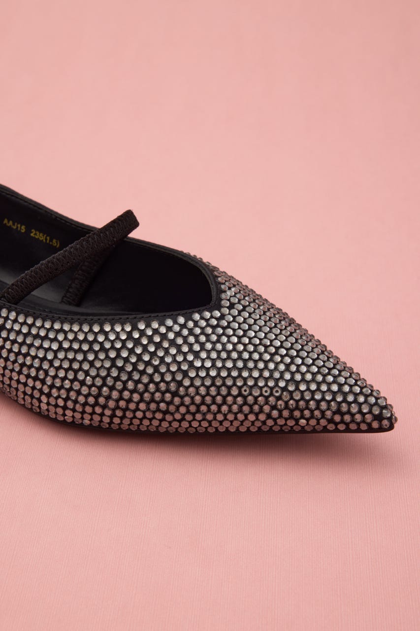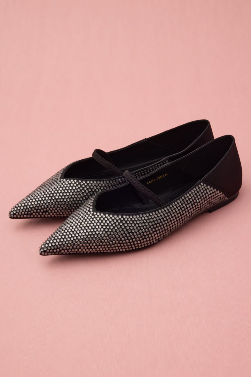 妖艶な雰囲気も纏う、カッターパンプス。程よくクールでエレガントな装いに、華奢見えしてくれる細ベルト。上品なサテン上には、小粒のストーンを敷き詰めた、ソフトな足あたりのポインテッドトゥなのでスタイリッシュな足元に魅せてくれます。