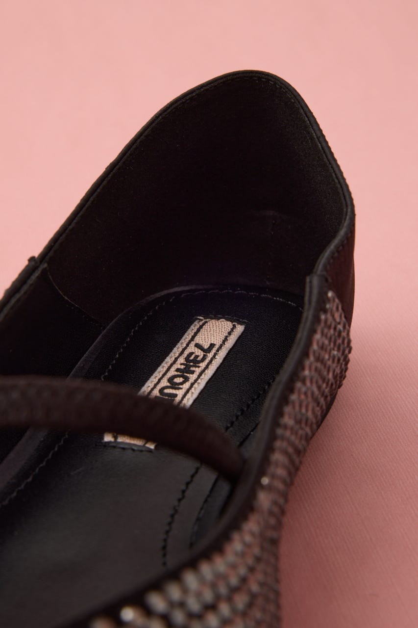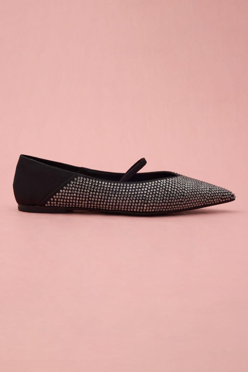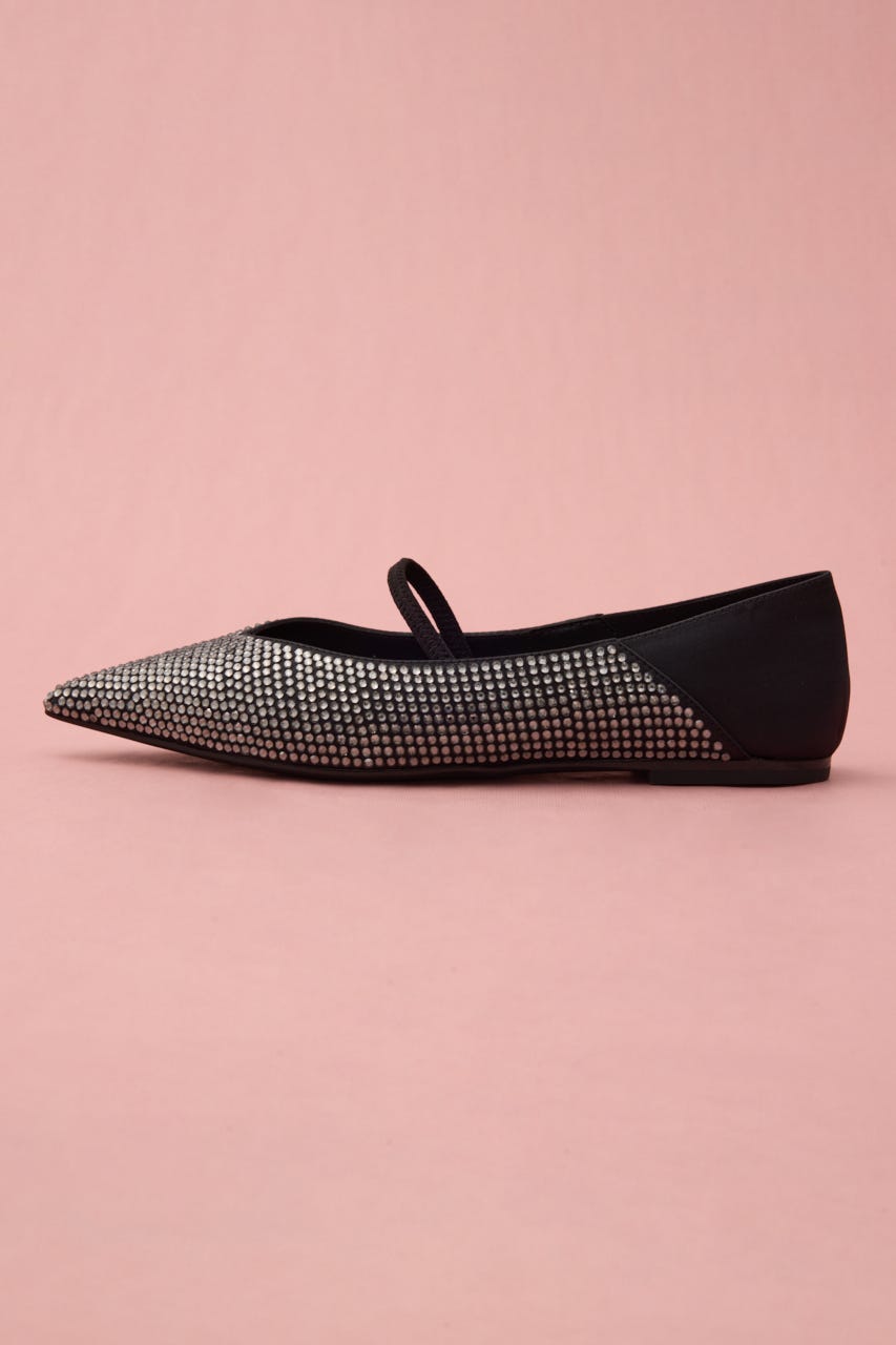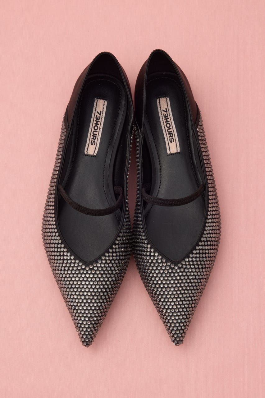 妖艶な雰囲気も纏う、カッターパンプス。程よくクールでエレガントな装いに、華奢見えしてくれる細ベルト。上品なサテン上には、小粒のストーンを敷き詰めた、ソフトな足あたりのポインテッドトゥなのでスタイリッシュな足元に魅せてくれます。