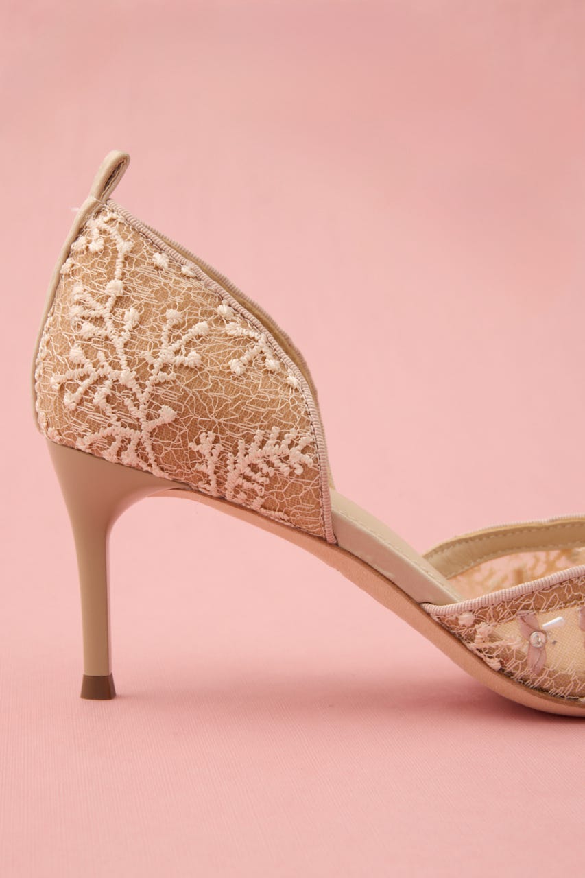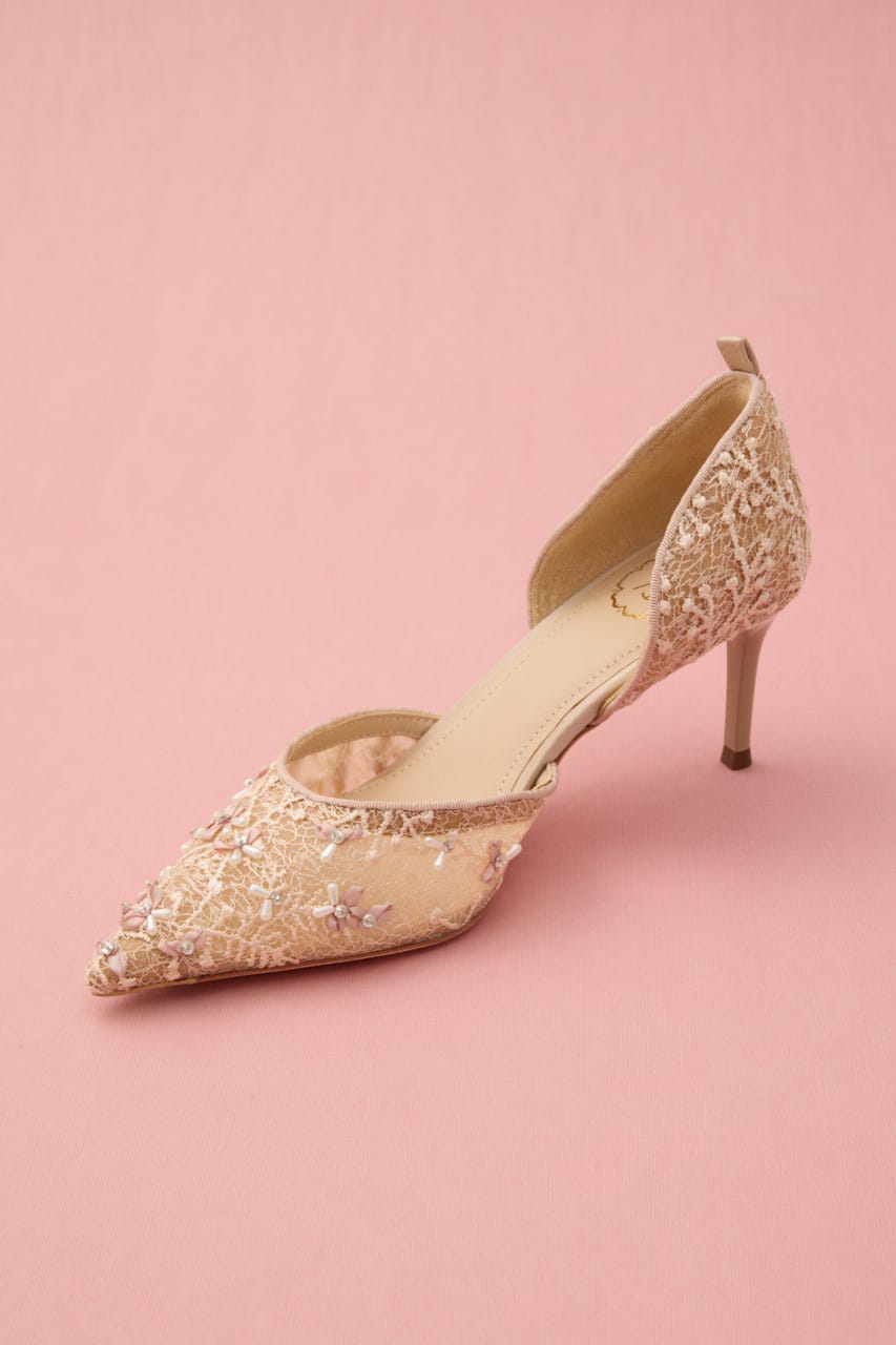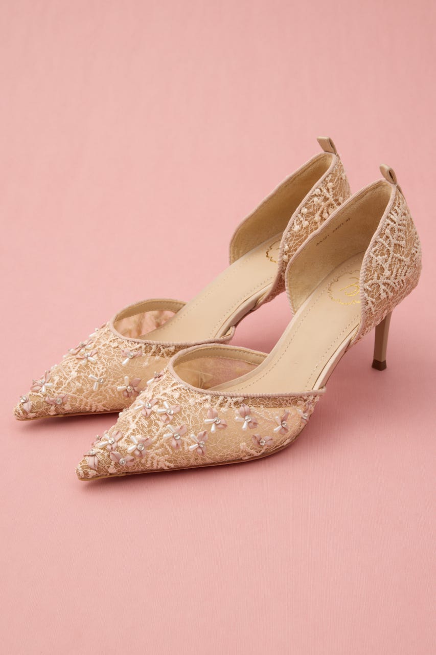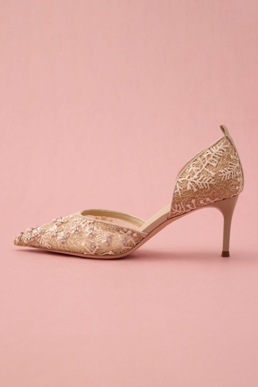 脚を綺麗に魅せてくれる『73Hours』定番型のセパレートパンプス。女性らしさ漂う、刺繍×メッシュ地に小粒のリボンビーズ装飾が施された、繊細なディテールが光るオリジナリティ溢れるフェミニンな雰囲気のパンプスです。