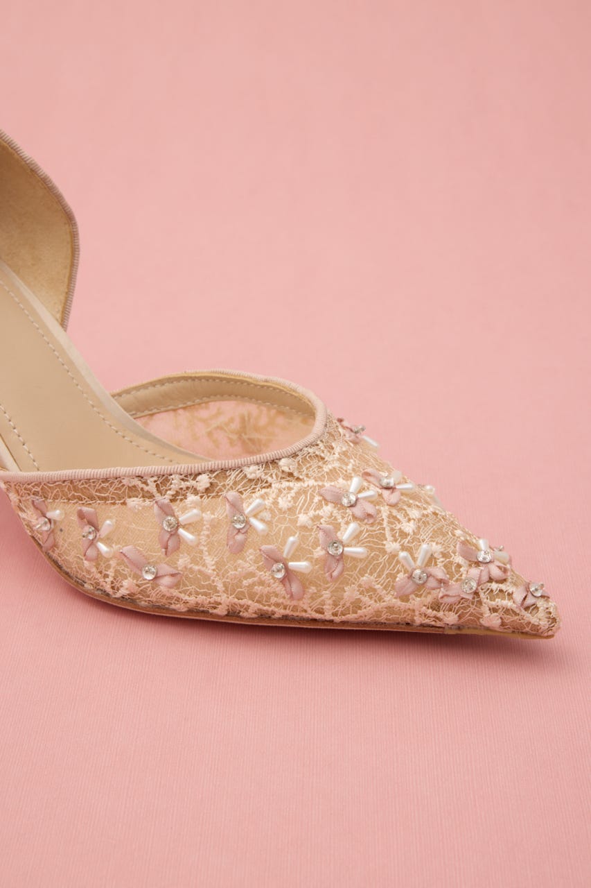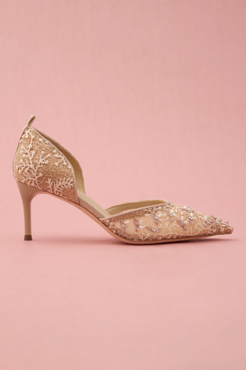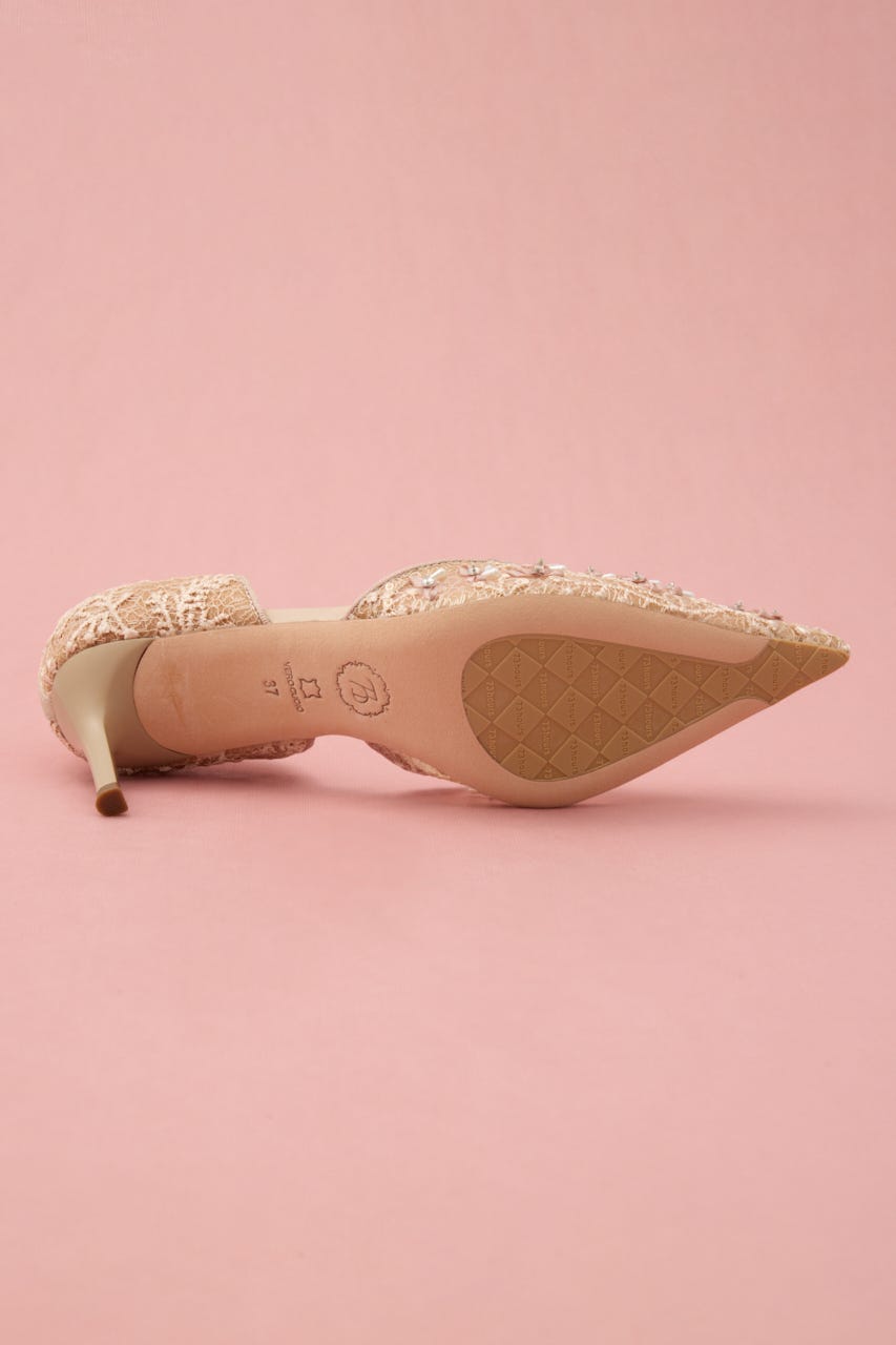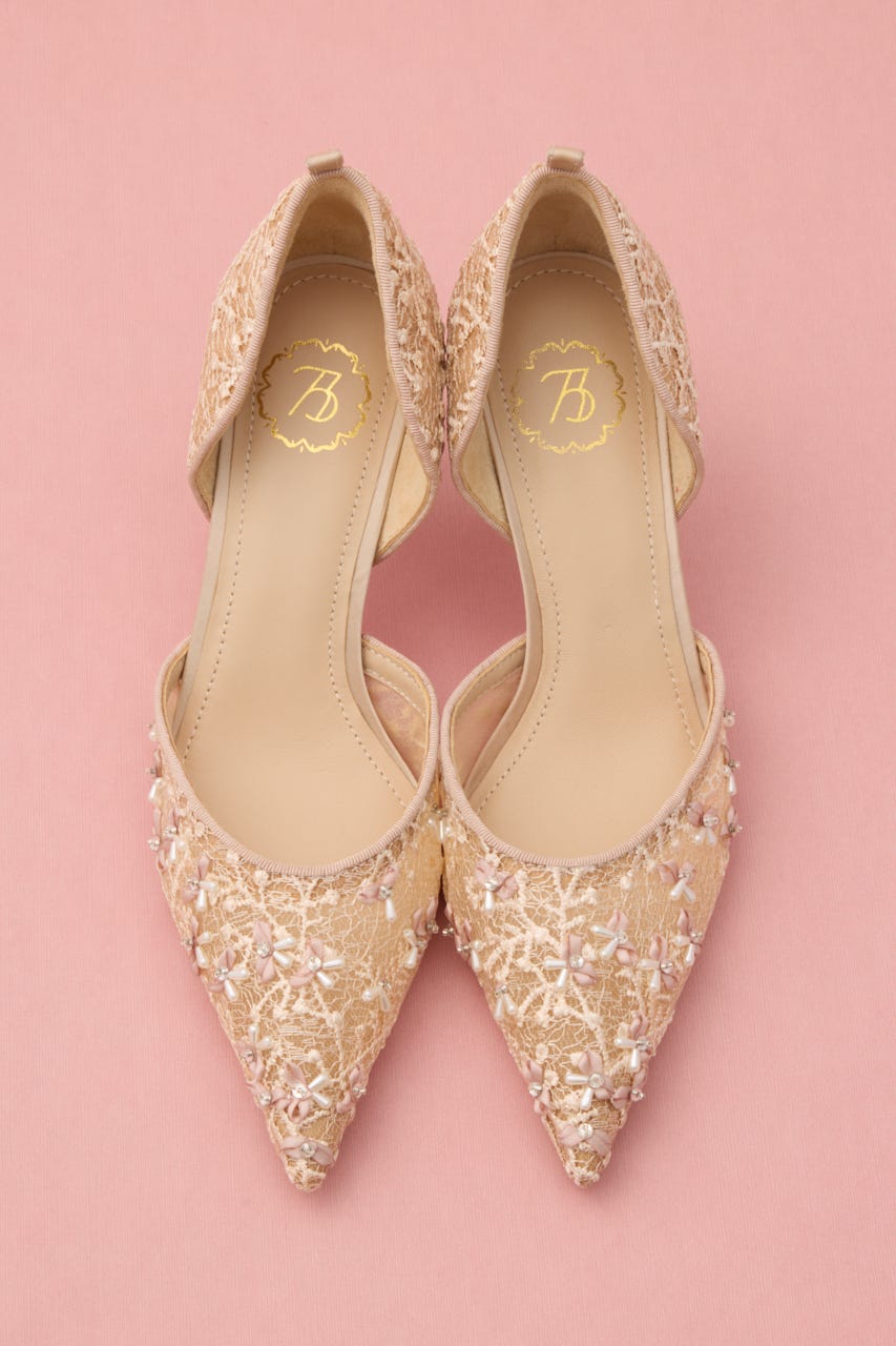 脚を綺麗に魅せてくれる『73Hours』定番型のセパレートパンプス。女性らしさ漂う、刺繍×メッシュ地に小粒のリボンビーズ装飾が施された、繊細なディテールが光るオリジナリティ溢れるフェミニンな雰囲気のパンプスです。