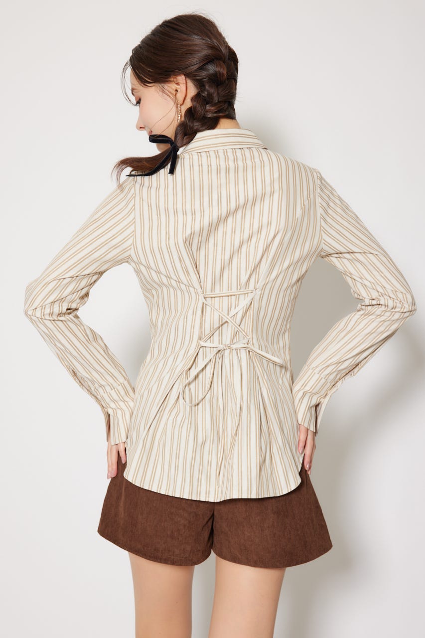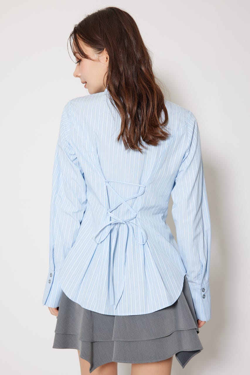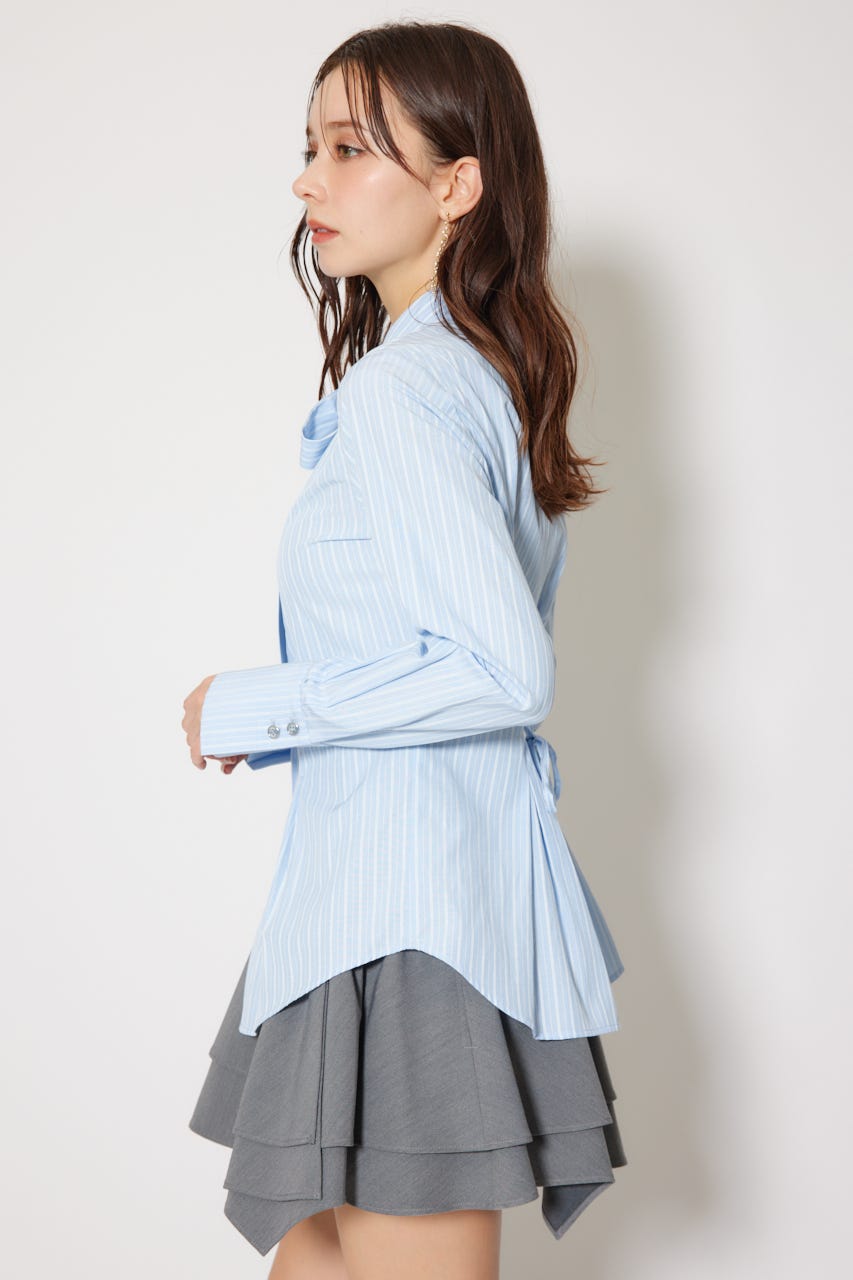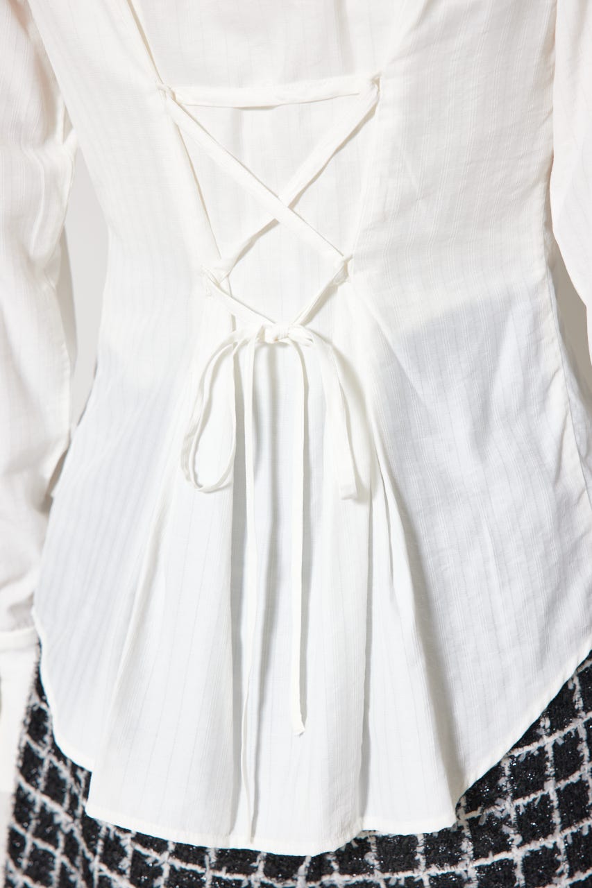 ウエストをパターンでシェイプさせ女性らしいシルエットを作り上げたriendaらしいシャツトップスの登場です。