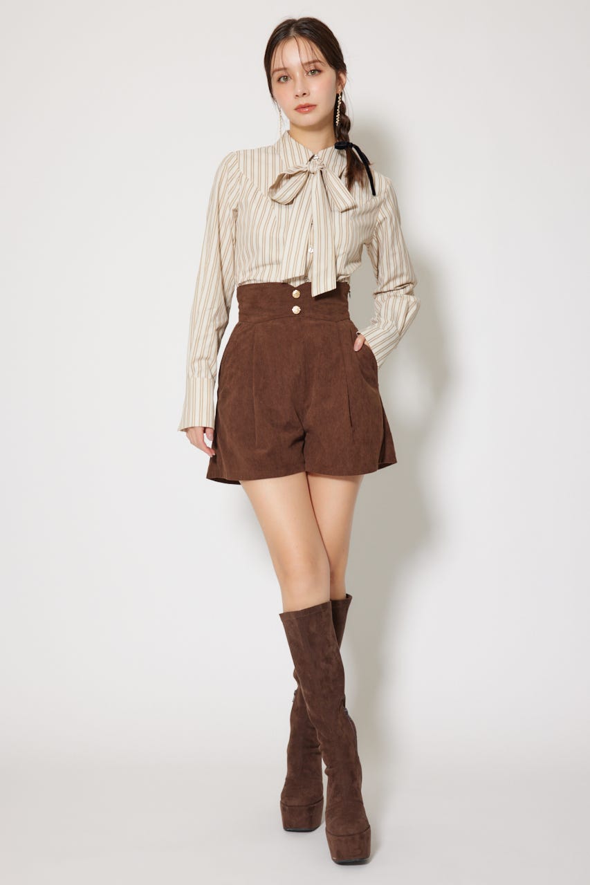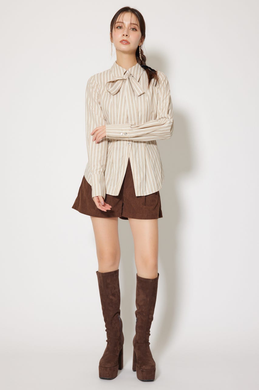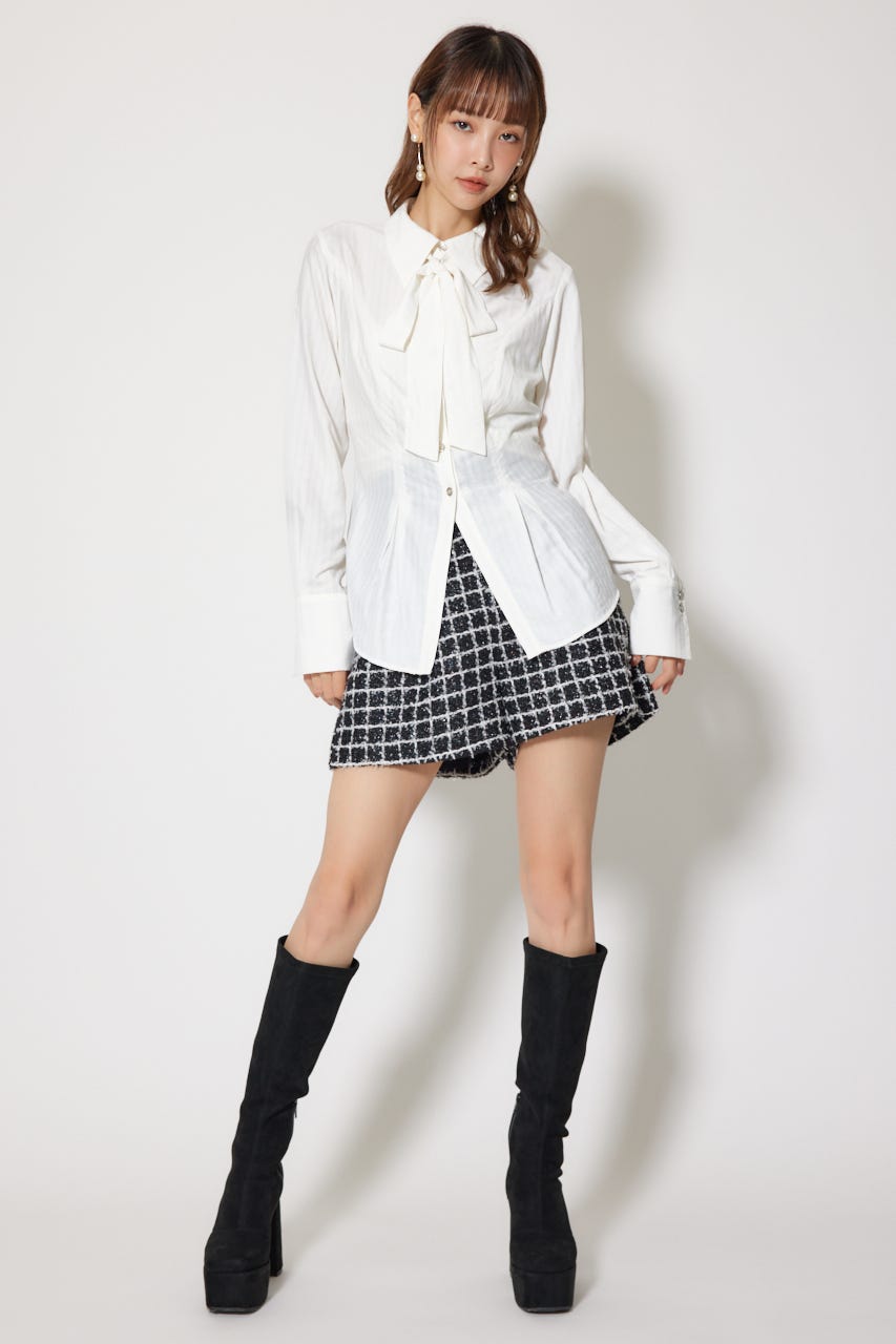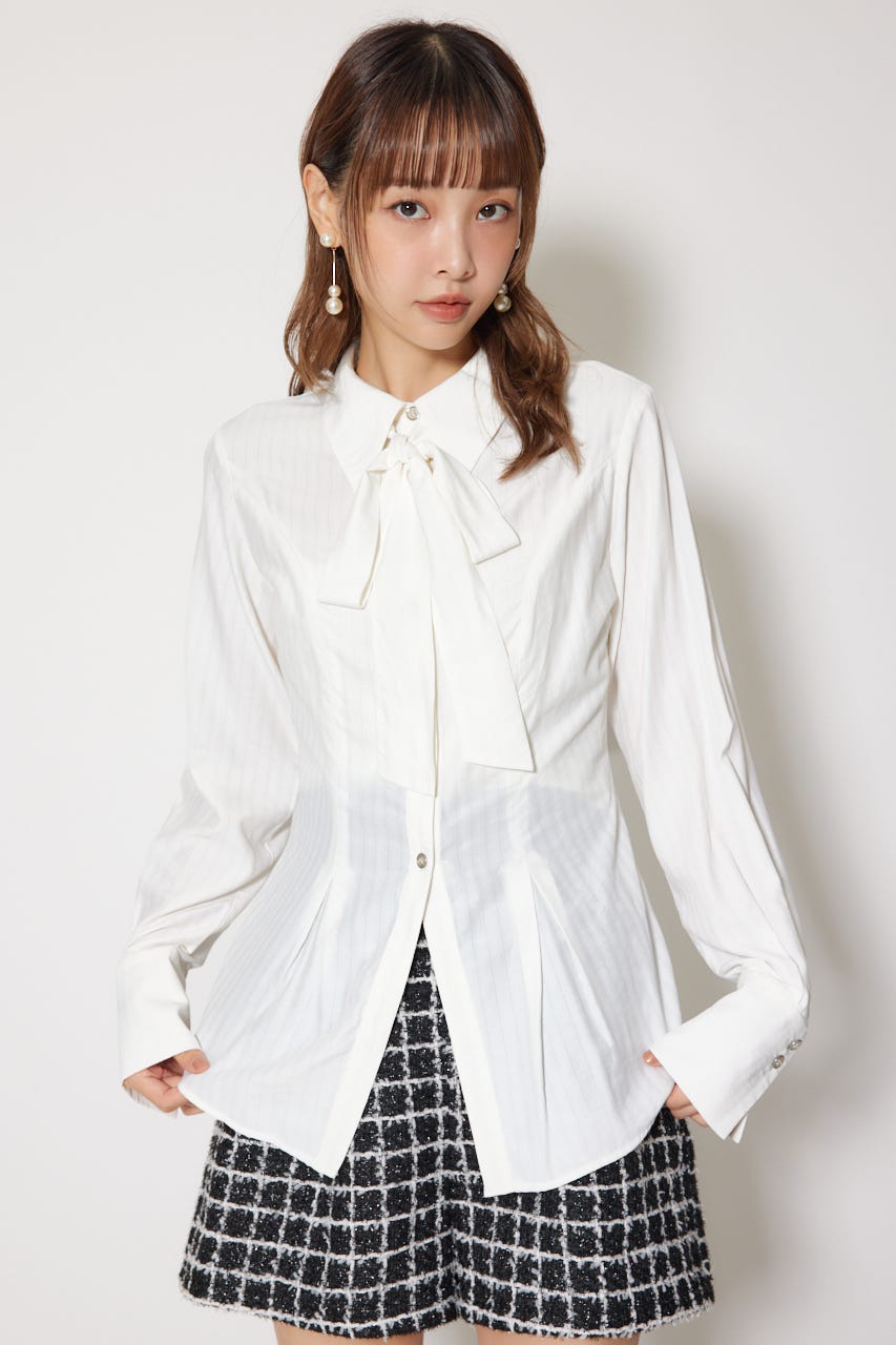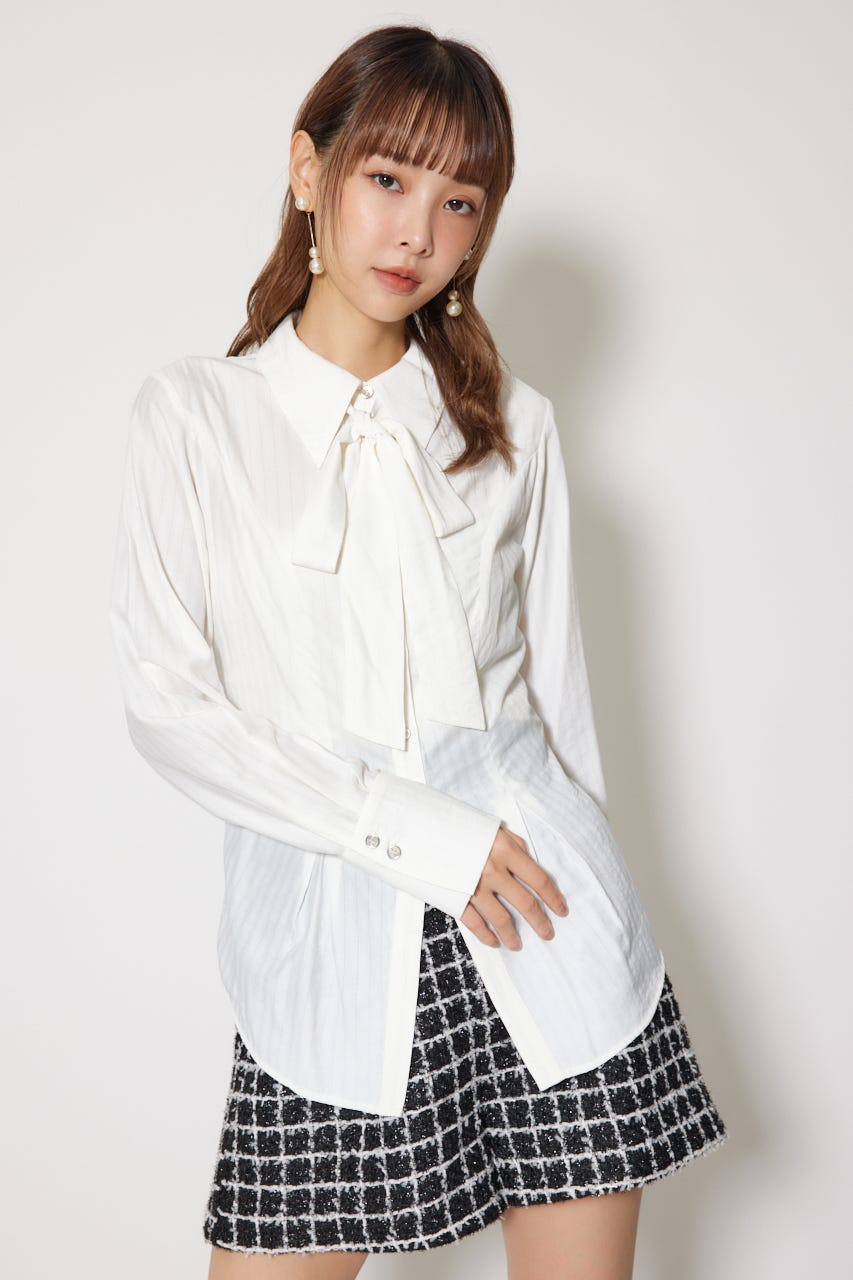 同じ生地のリボンタイ付きでその日の気分でコーディネートを楽しめます。