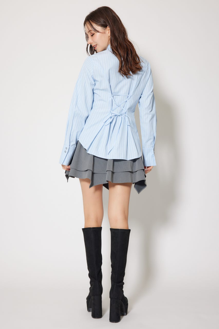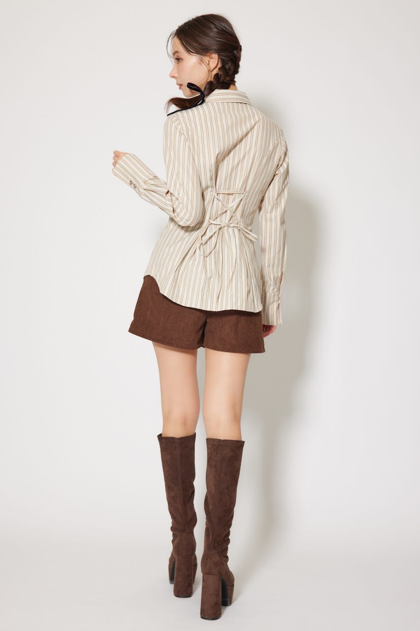 背中側に調節のレースアップがついているので、様々な体系にもフィットしてスタイルアップが可能です。