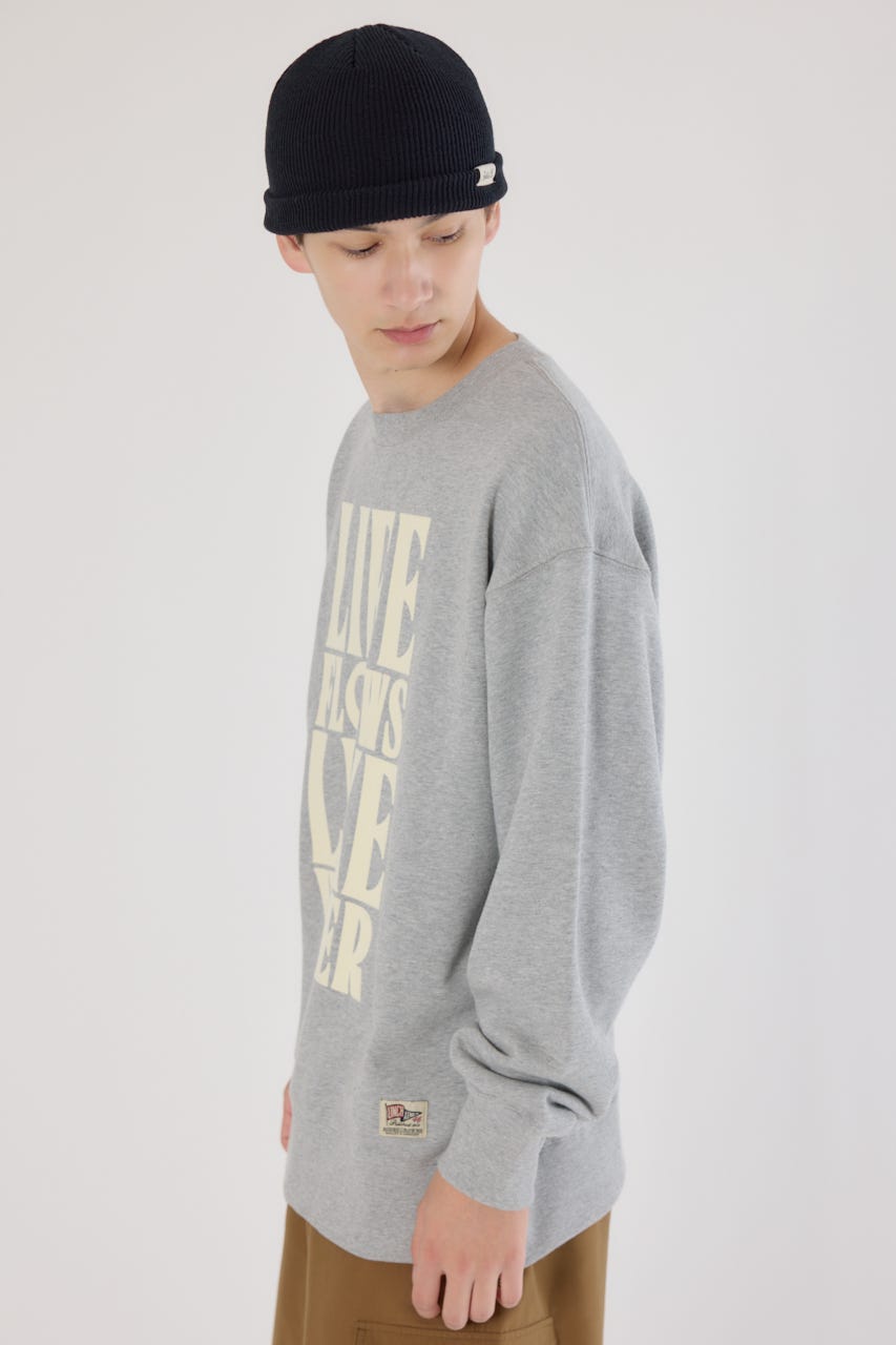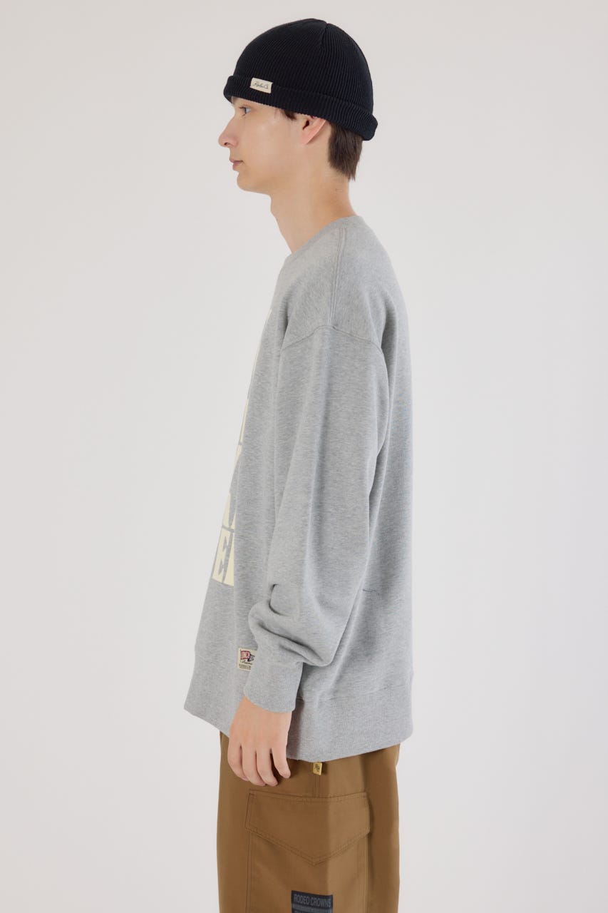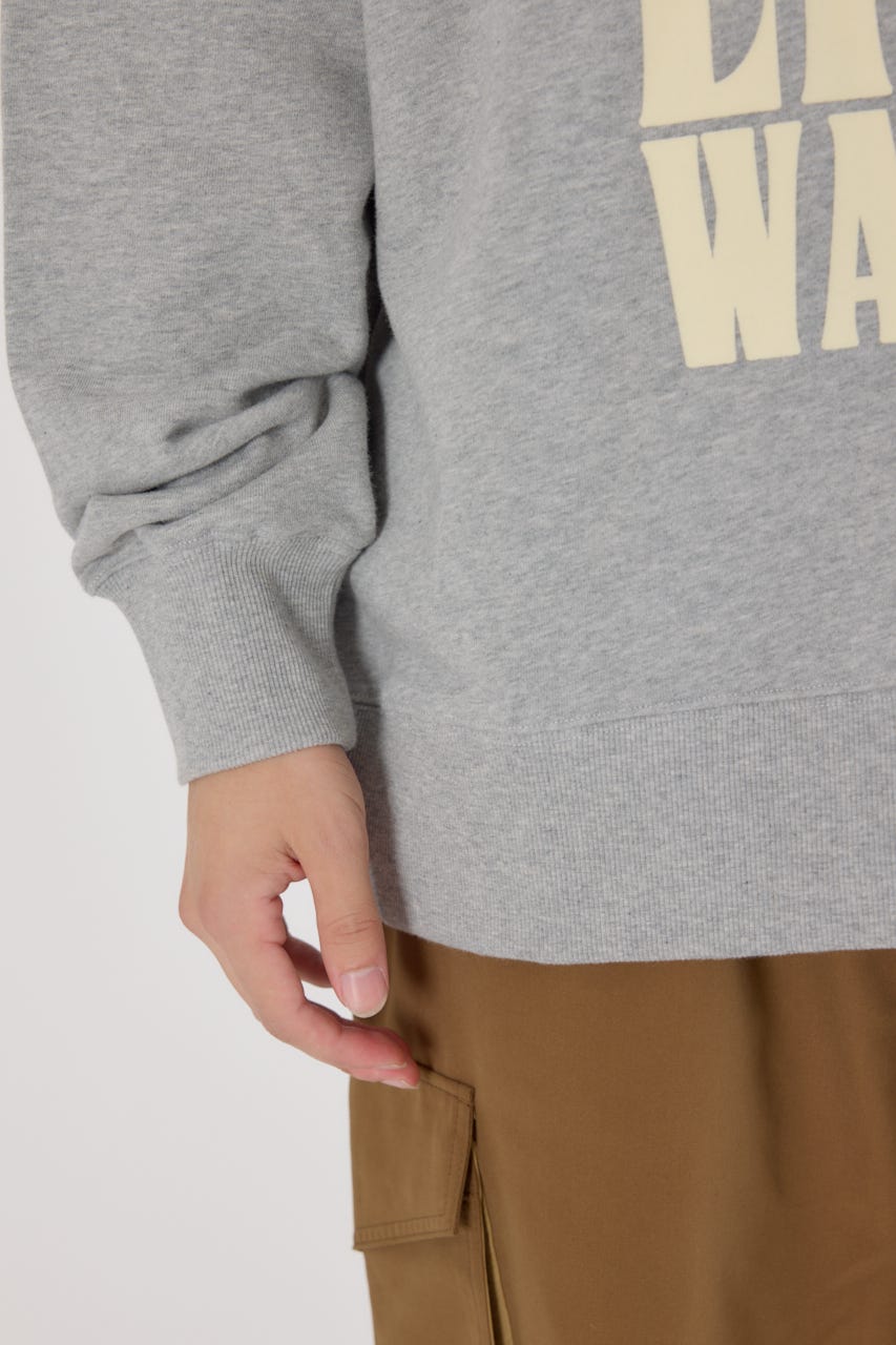 フロントに入った大胆なレタリングデザインが目を引くスウェットプルオーバー。