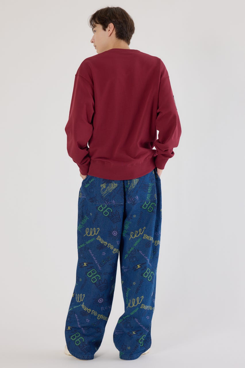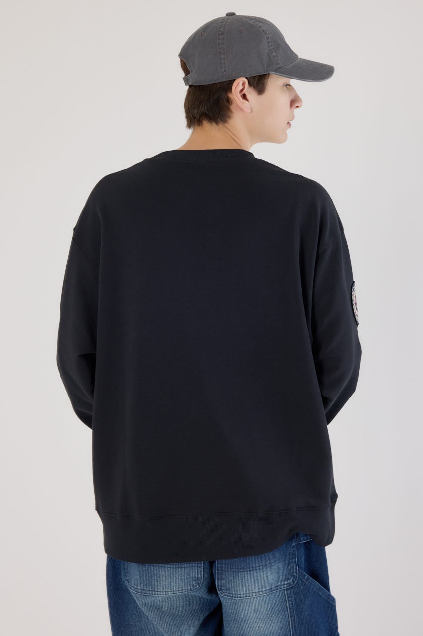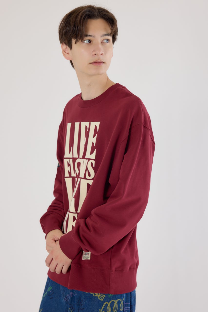フロントに入った大胆なレタリングデザインが目を引くスウェットプルオーバー。