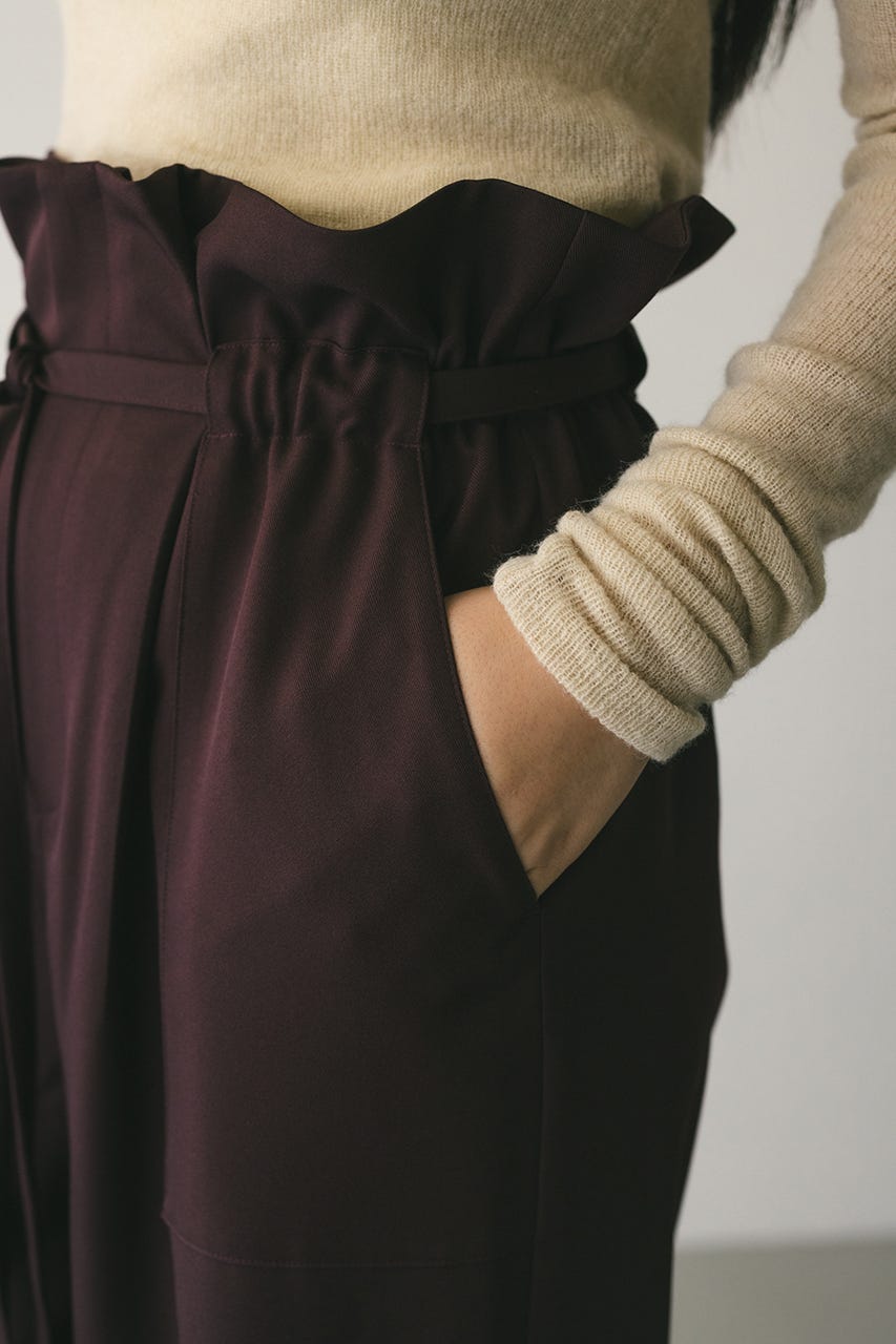 ウエストフリルデザインがポイントのギャザーイージーパンツ。