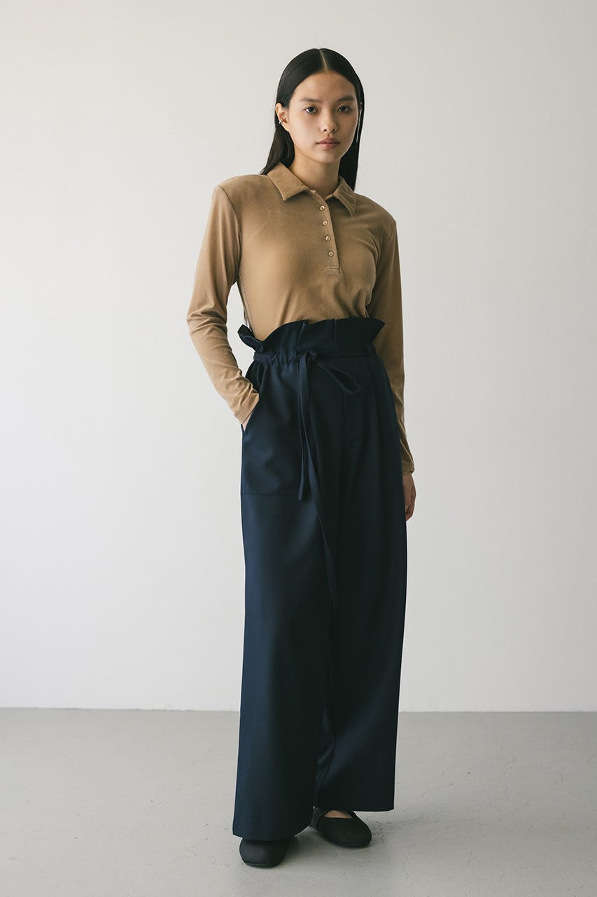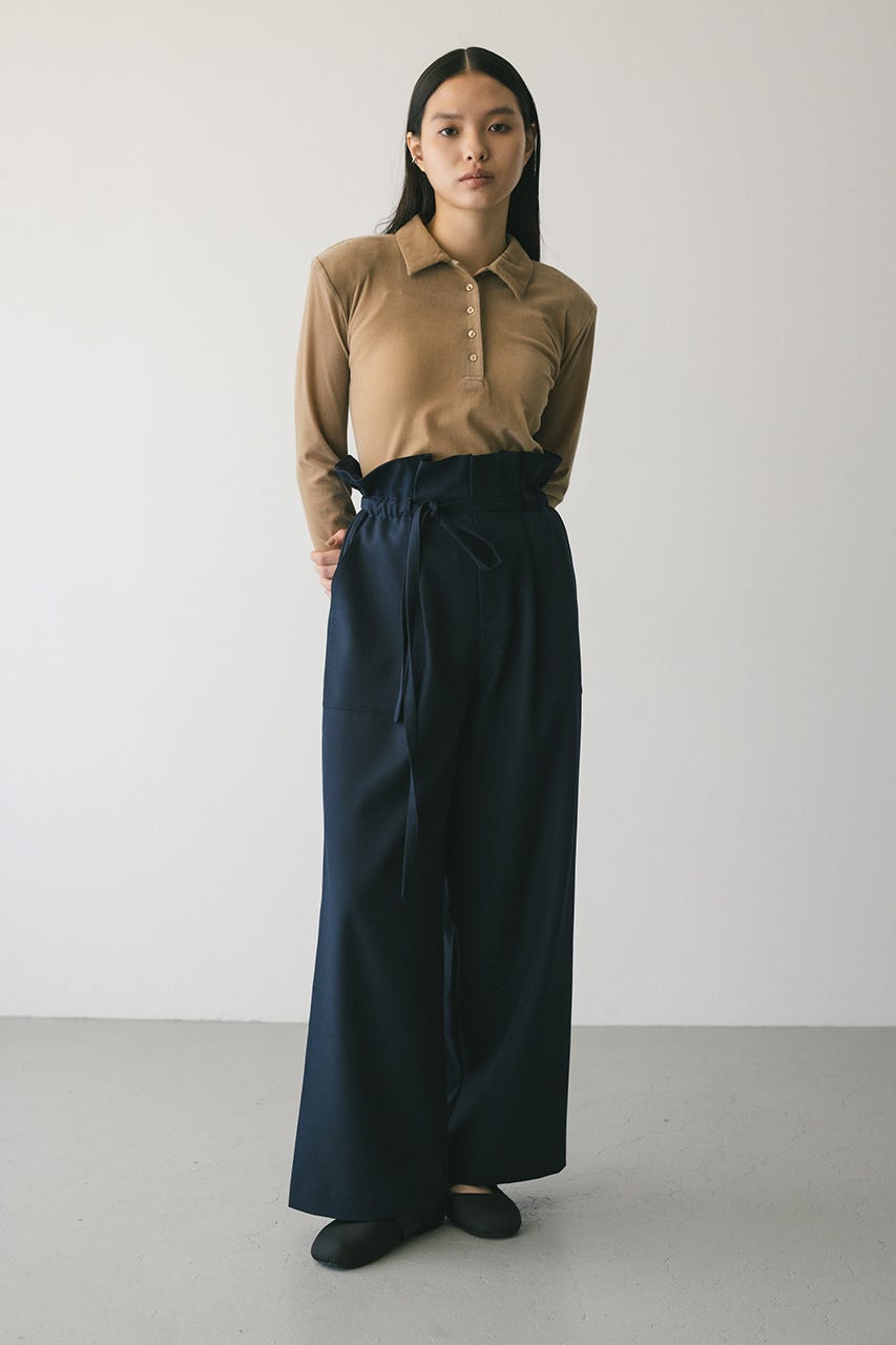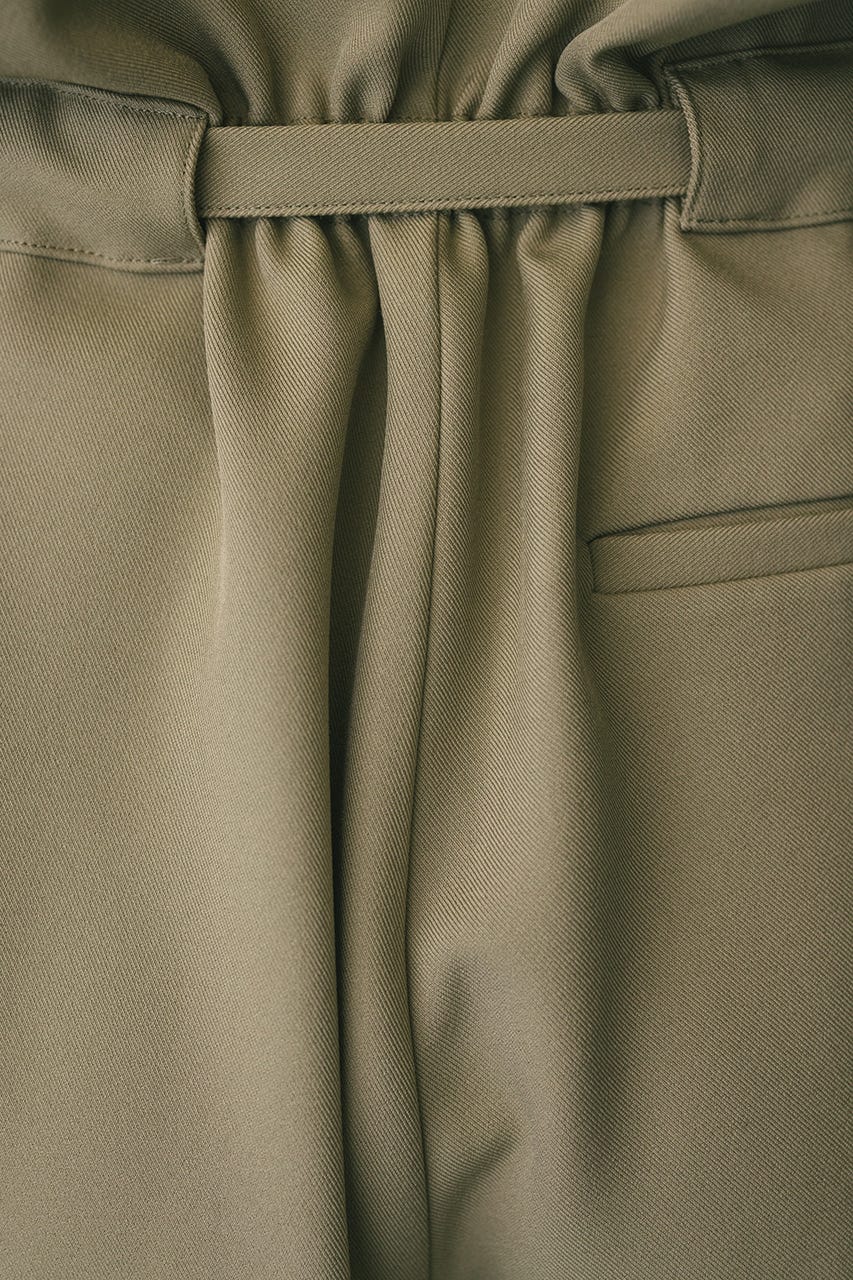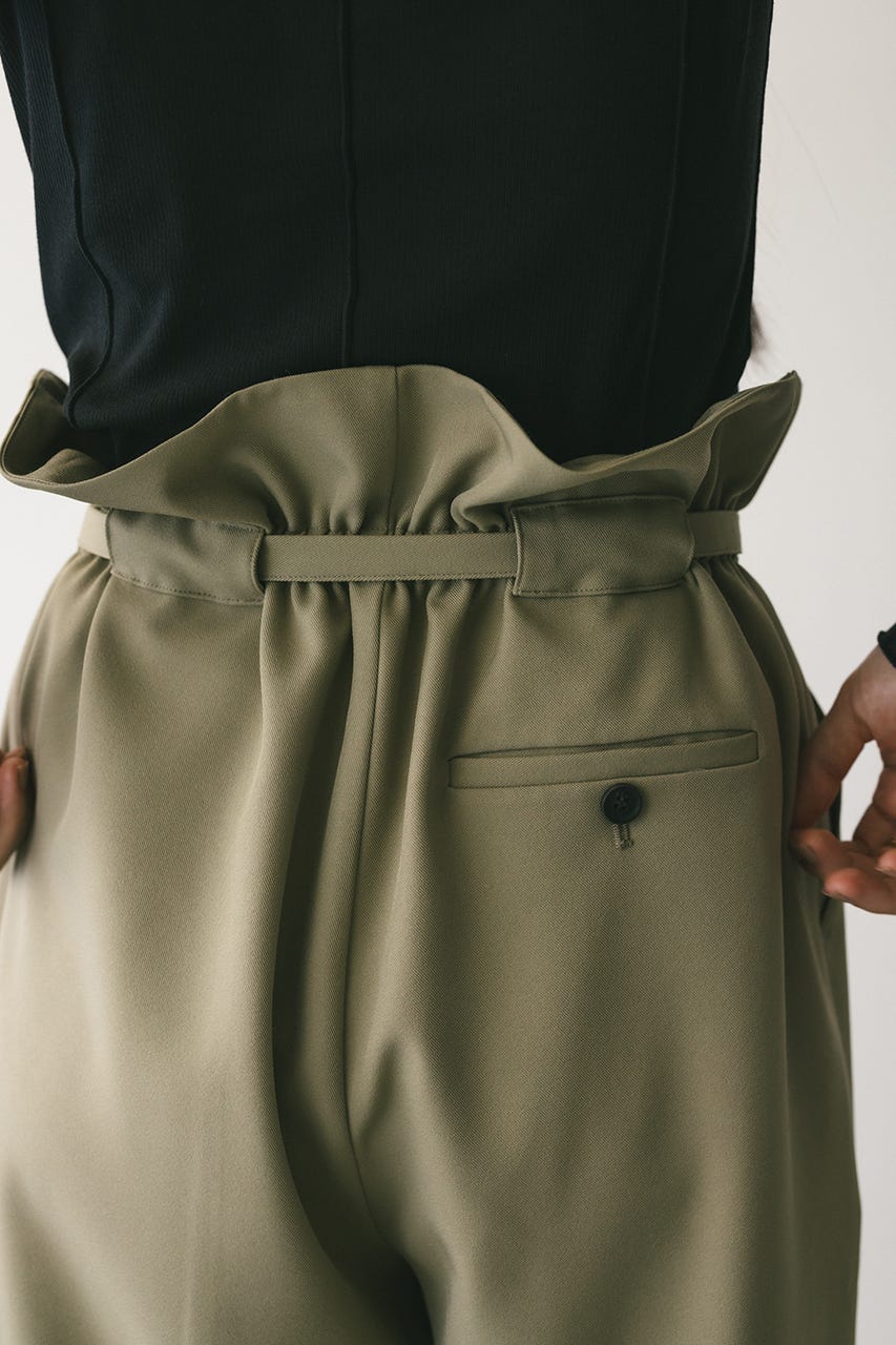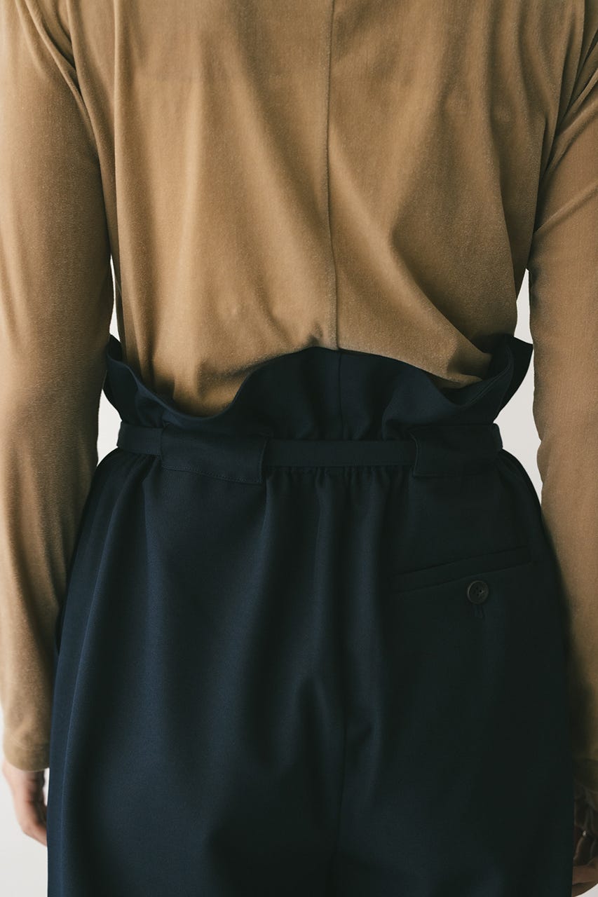 ウエストはフロントタックから後ろにかけてゴム仕様なのでリラックスして着用いただけます。