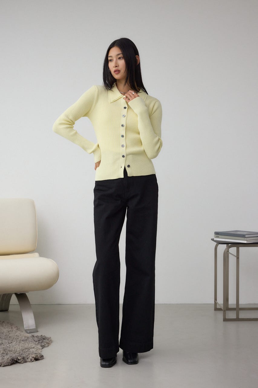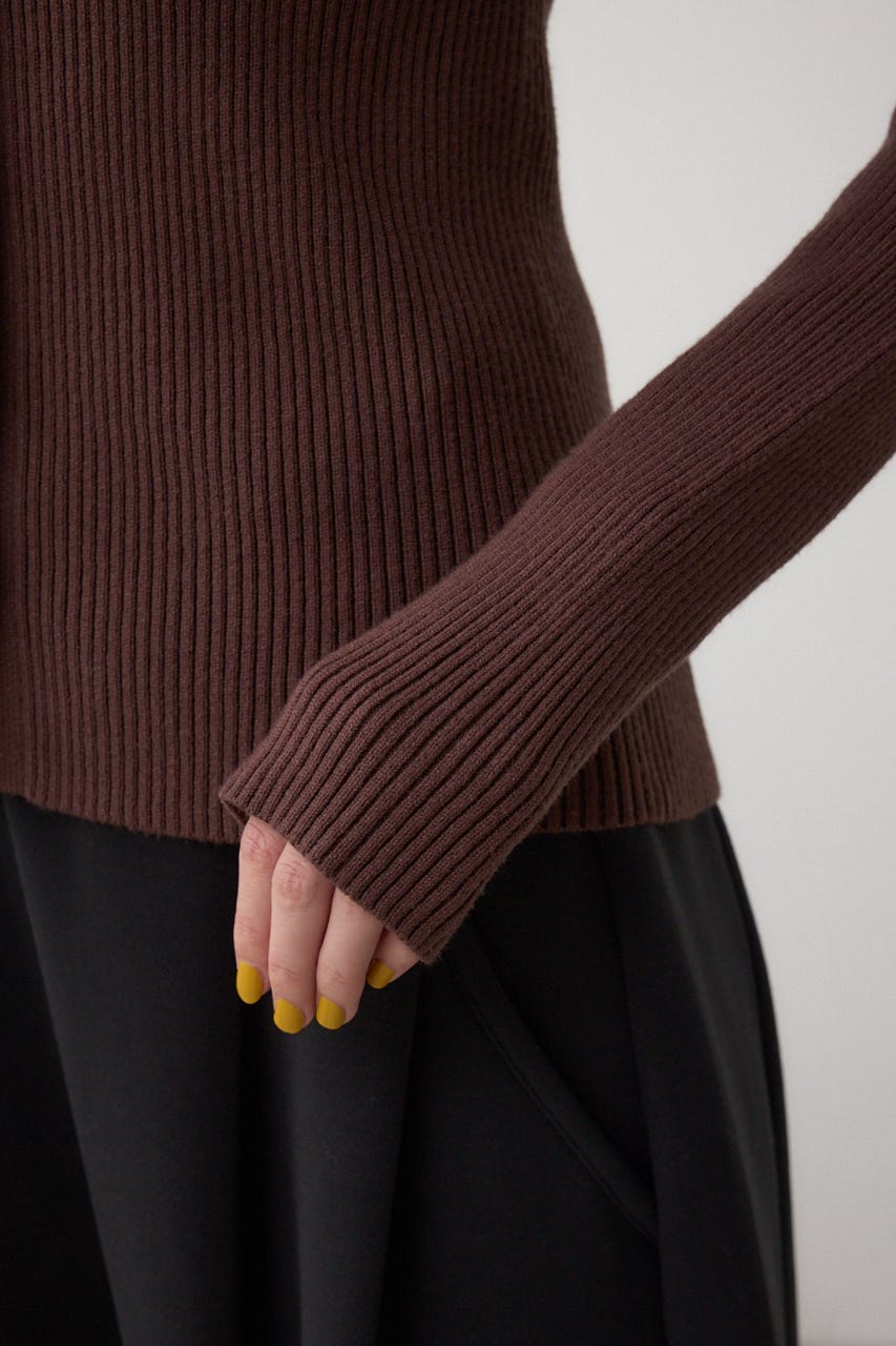 肌触りの良い柔らかなリブニットで編み立てたニットトップスです。