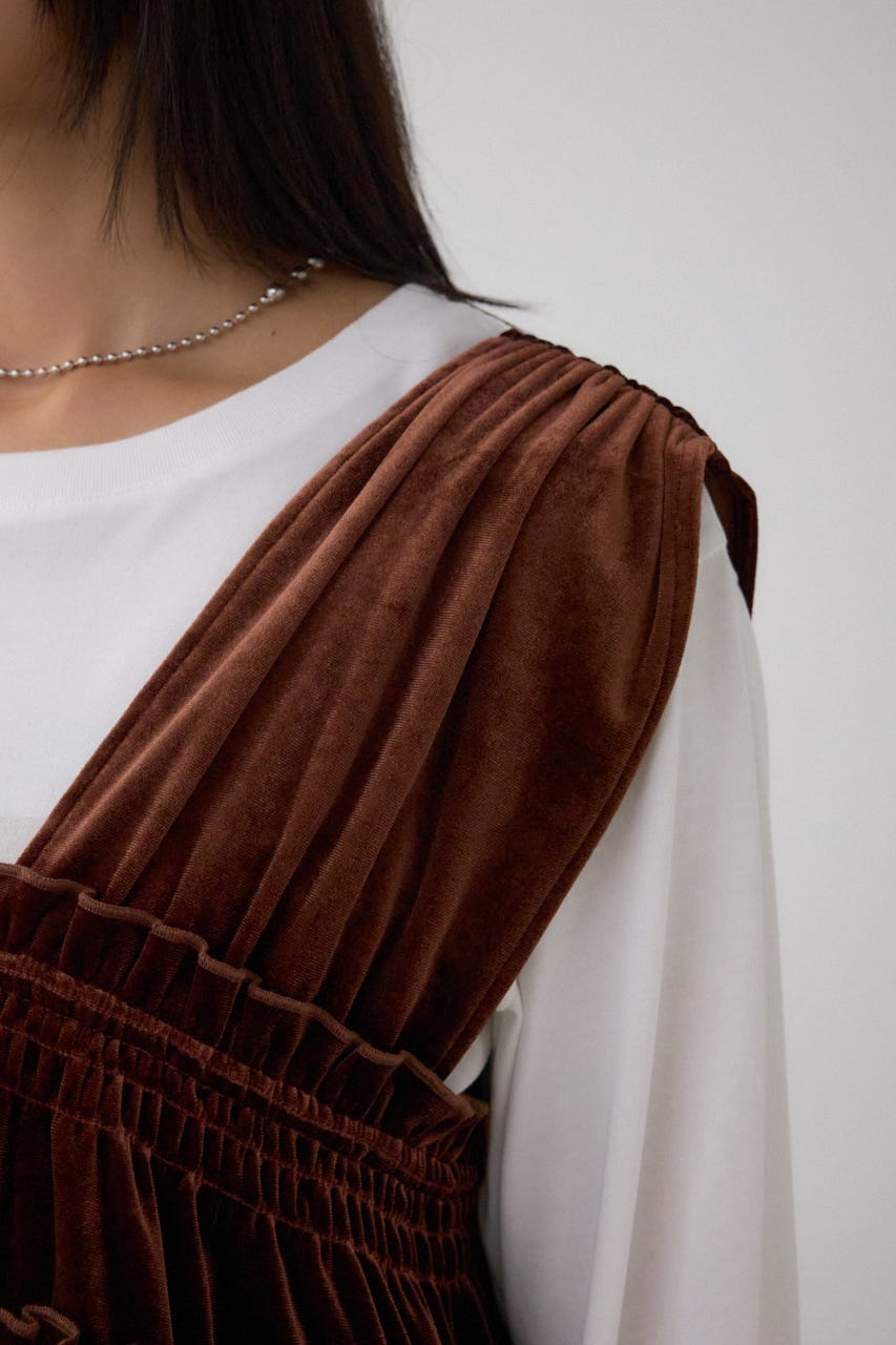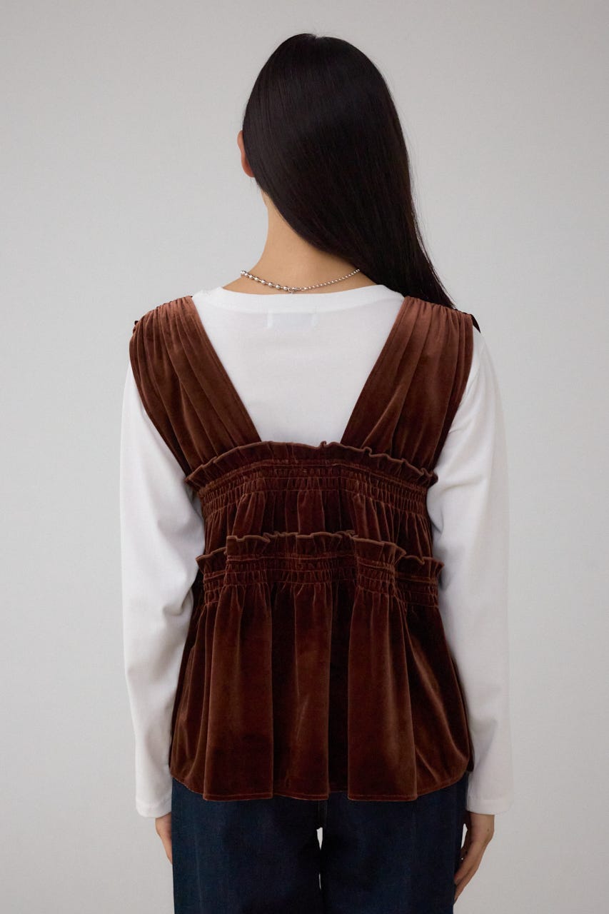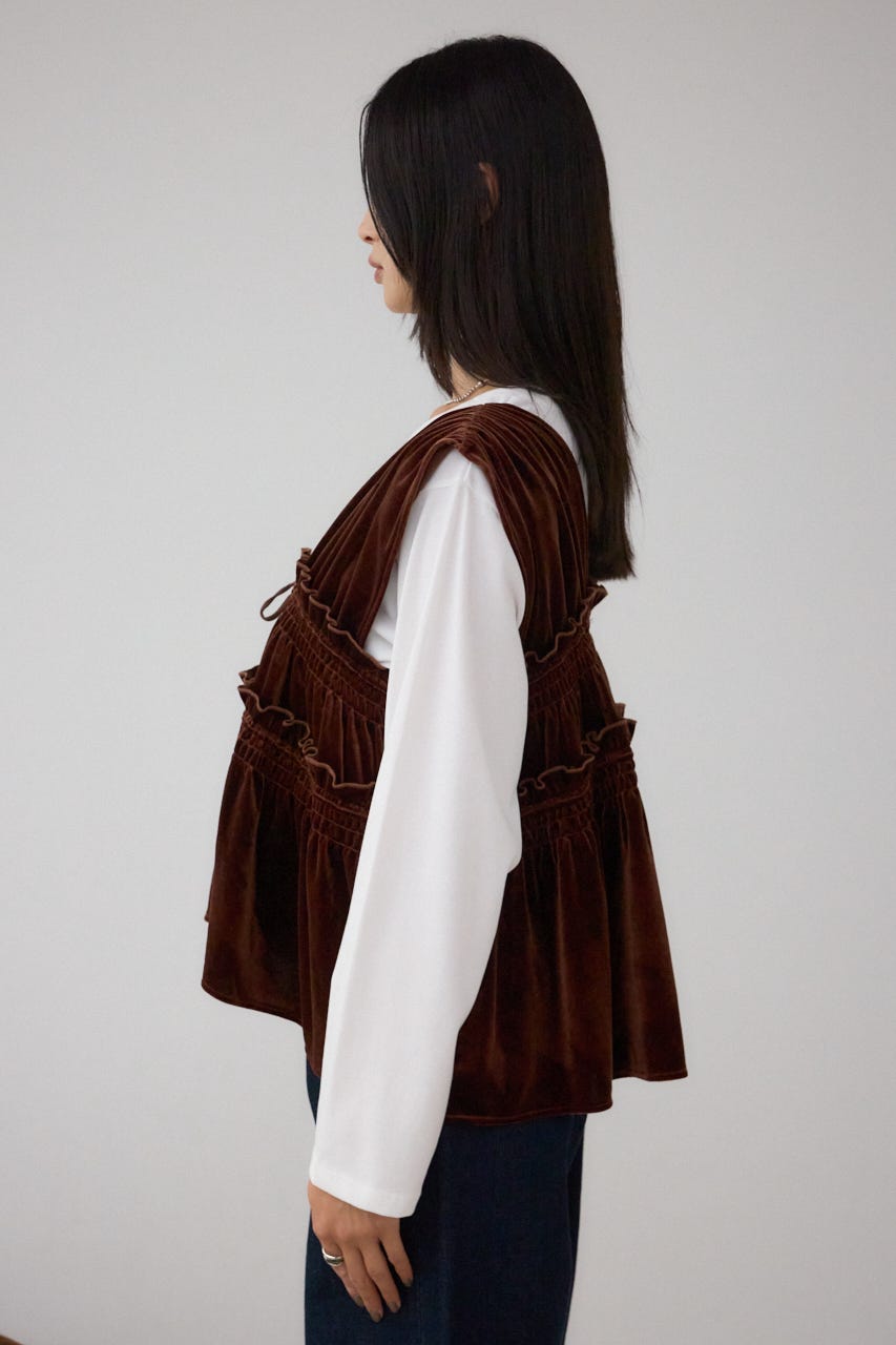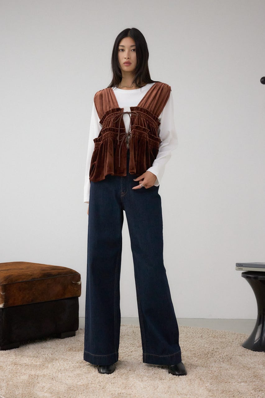 ギャザーデザインが、着こなしに華やかさと上品さをプラスします。