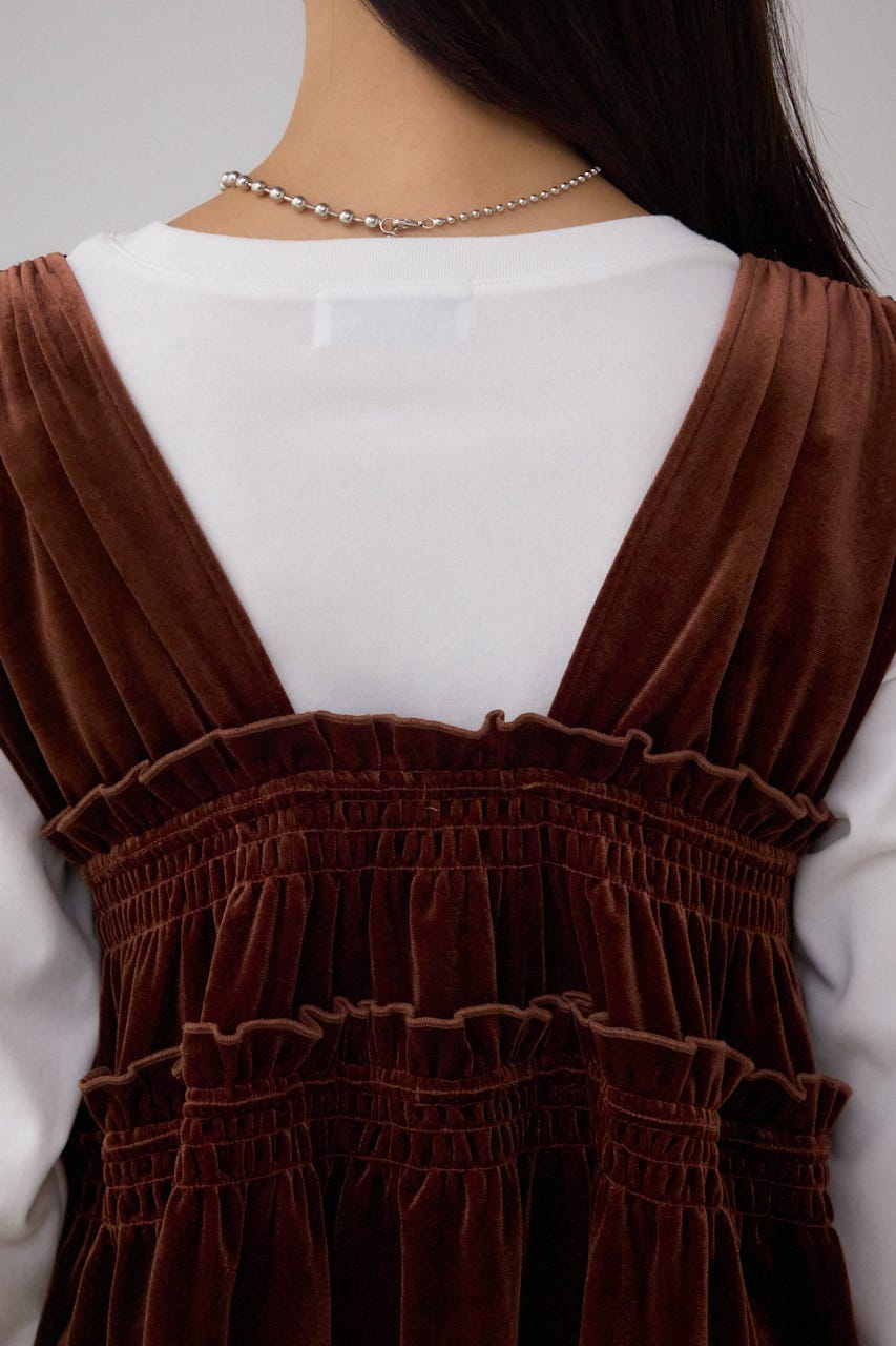 ウエスト部分のシャーリングで、スタイルアップ効果も期待できます。