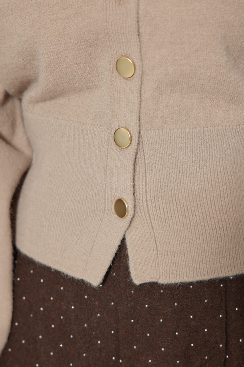 ボタンを全部閉めてトップスとしての着用もできますし、ワンピースやブラウスの羽織としてスタイリングしてもバランスを取れるような丈感にしています。