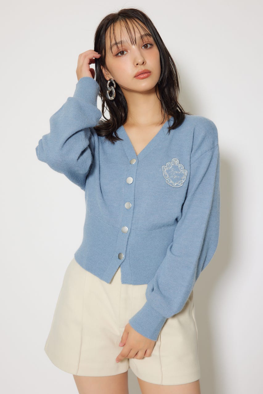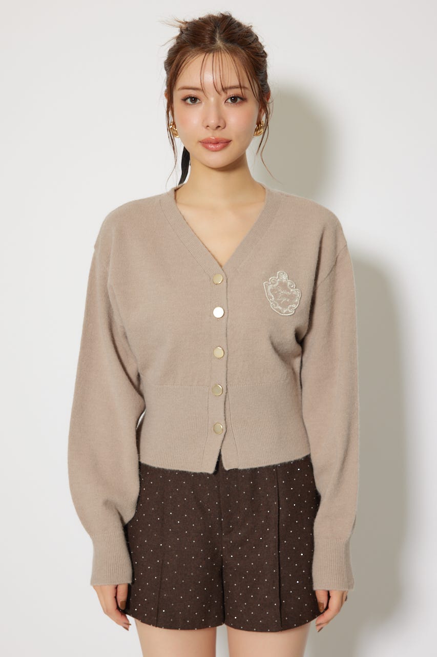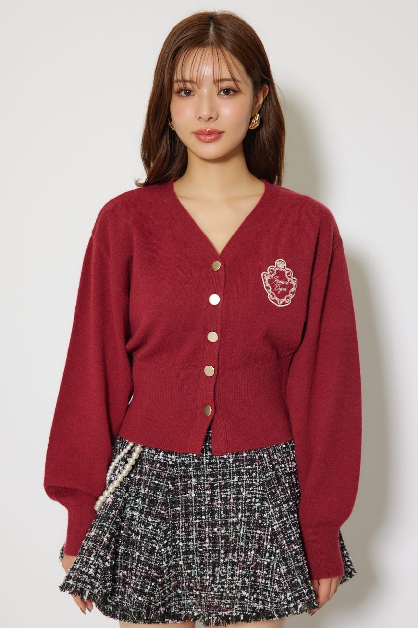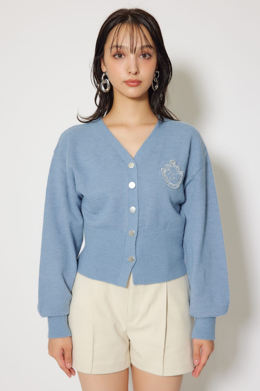 トレンド感のあるエンブレムデザインがポイントで、羽織るだけでバランス良く着こなせるカーディガン。