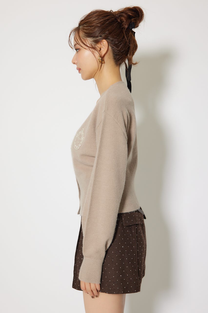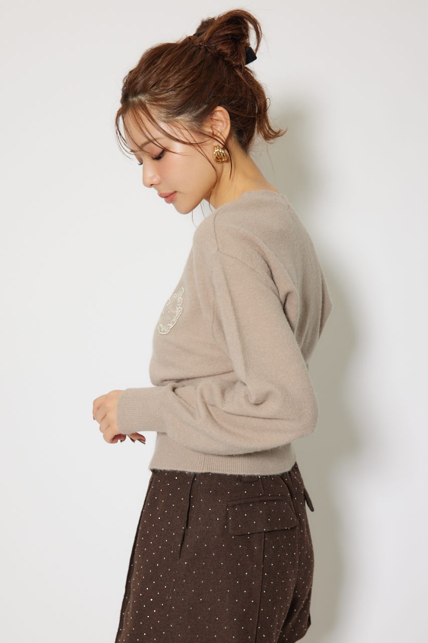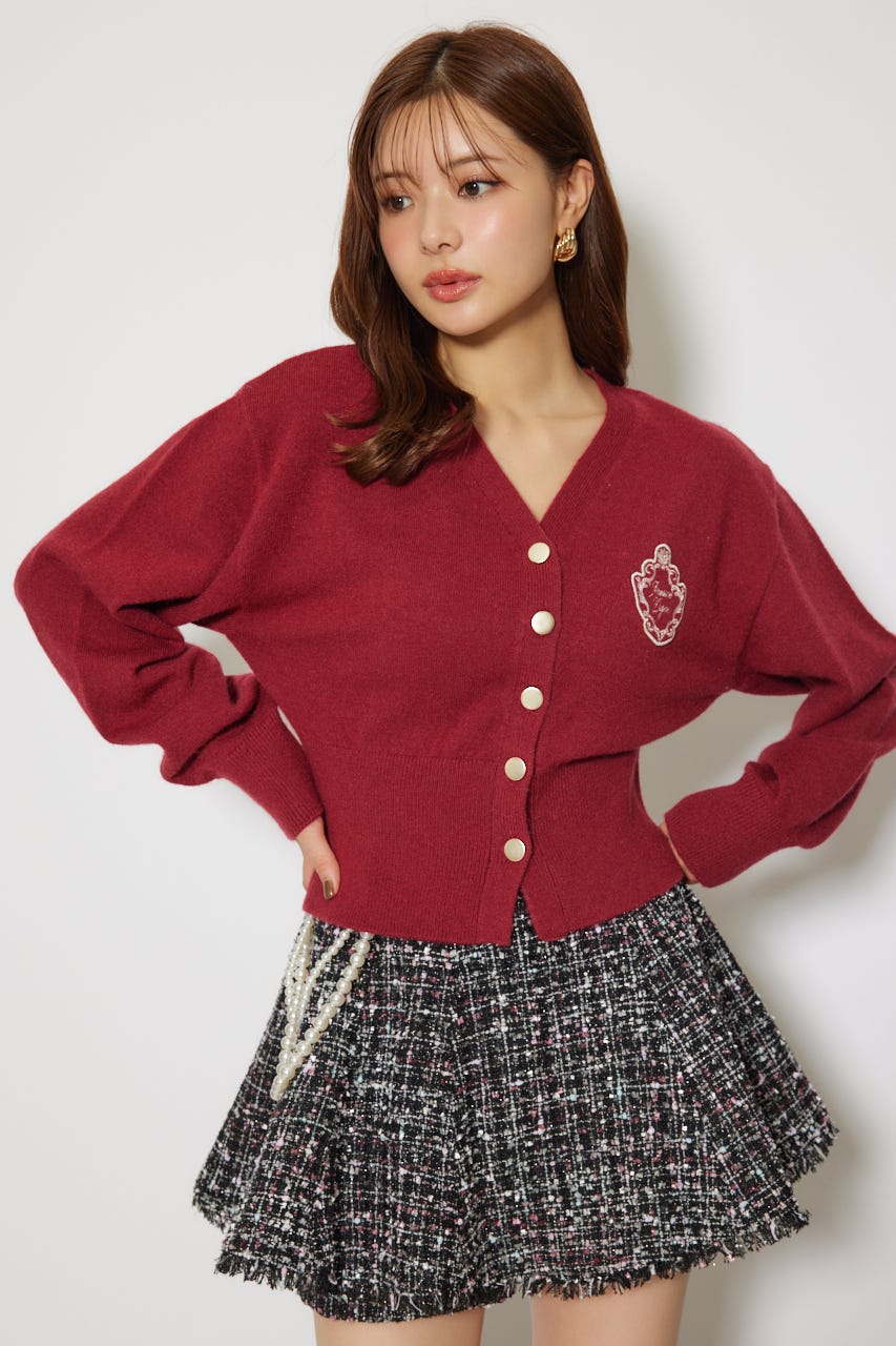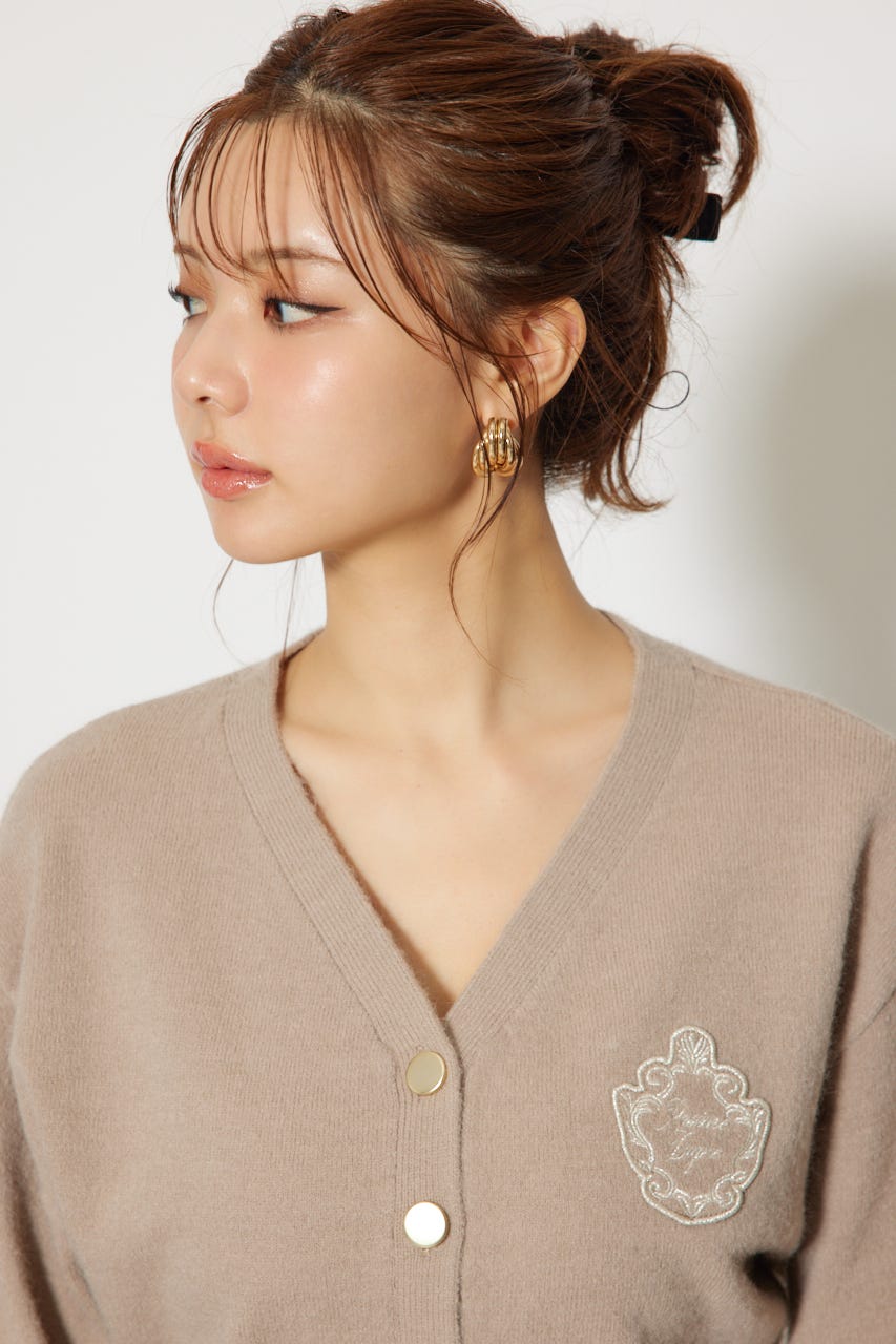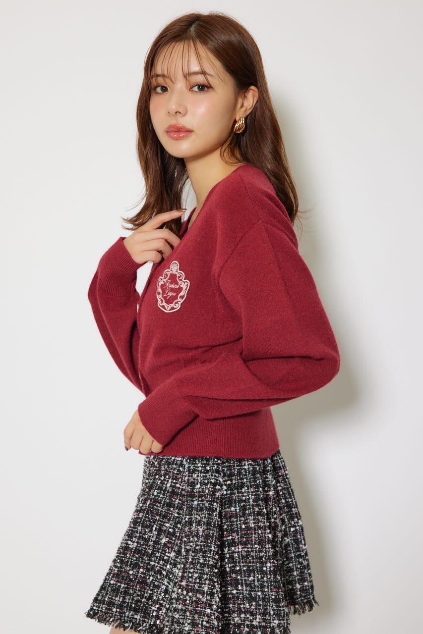 トレンド感のあるエンブレムデザインがポイントで、羽織るだけでバランス良く着こなせるカーディガン。