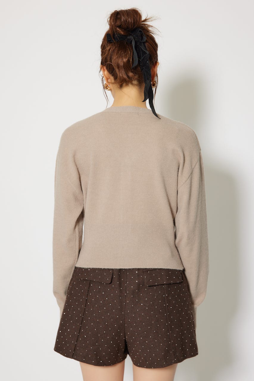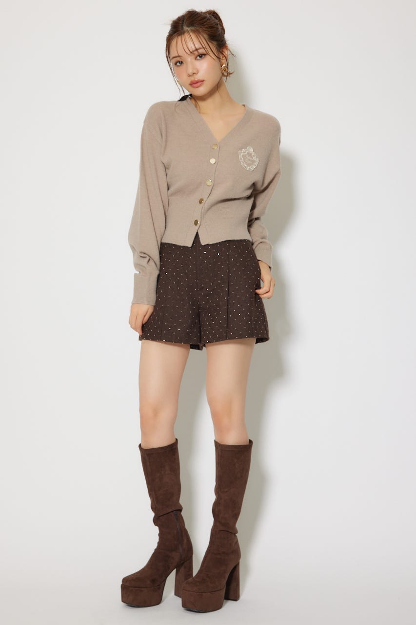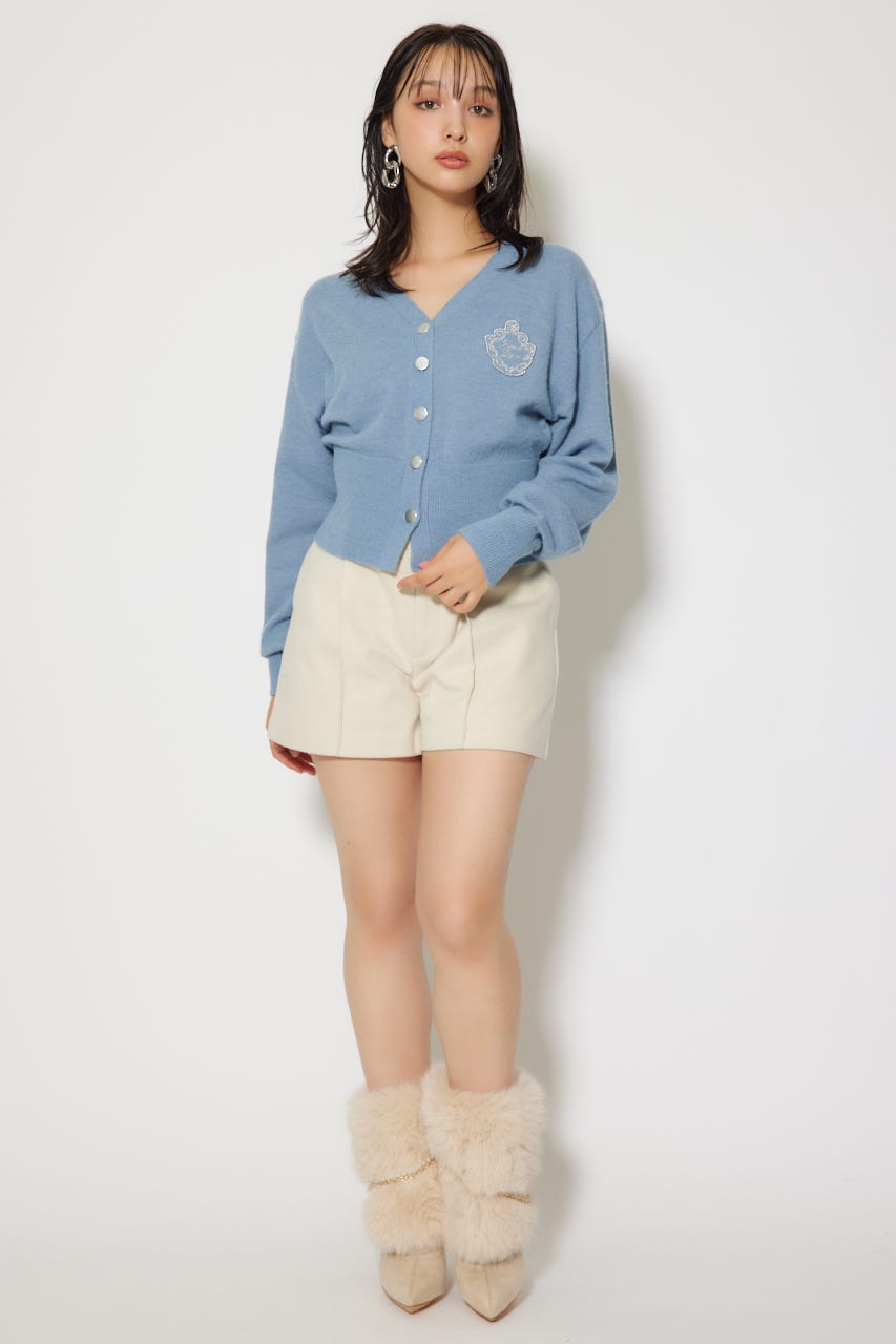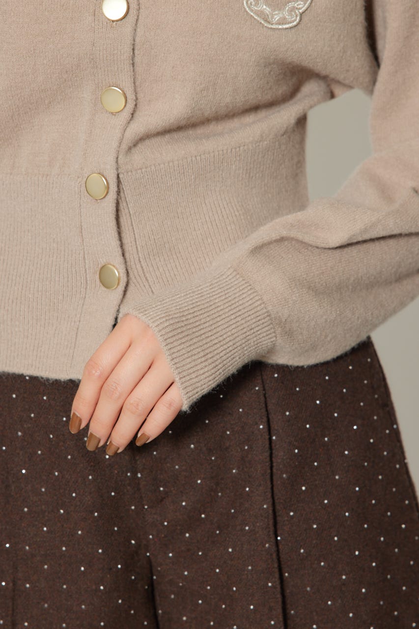トレンド感のあるエンブレムデザインがポイントで、羽織るだけでバランス良く着こなせるカーディガン。
