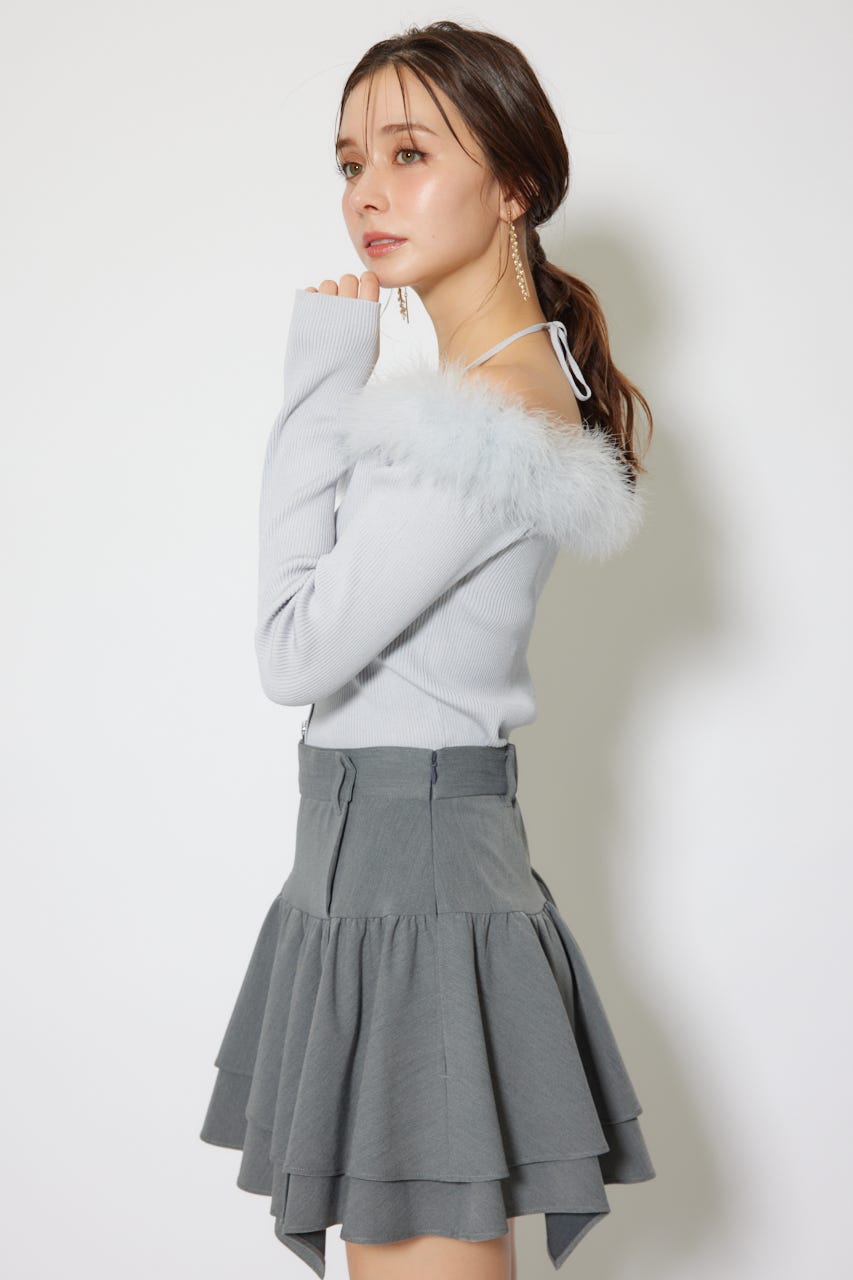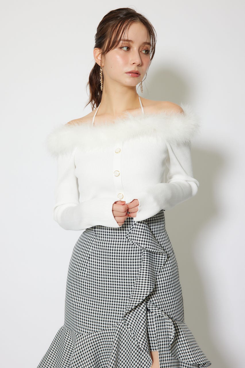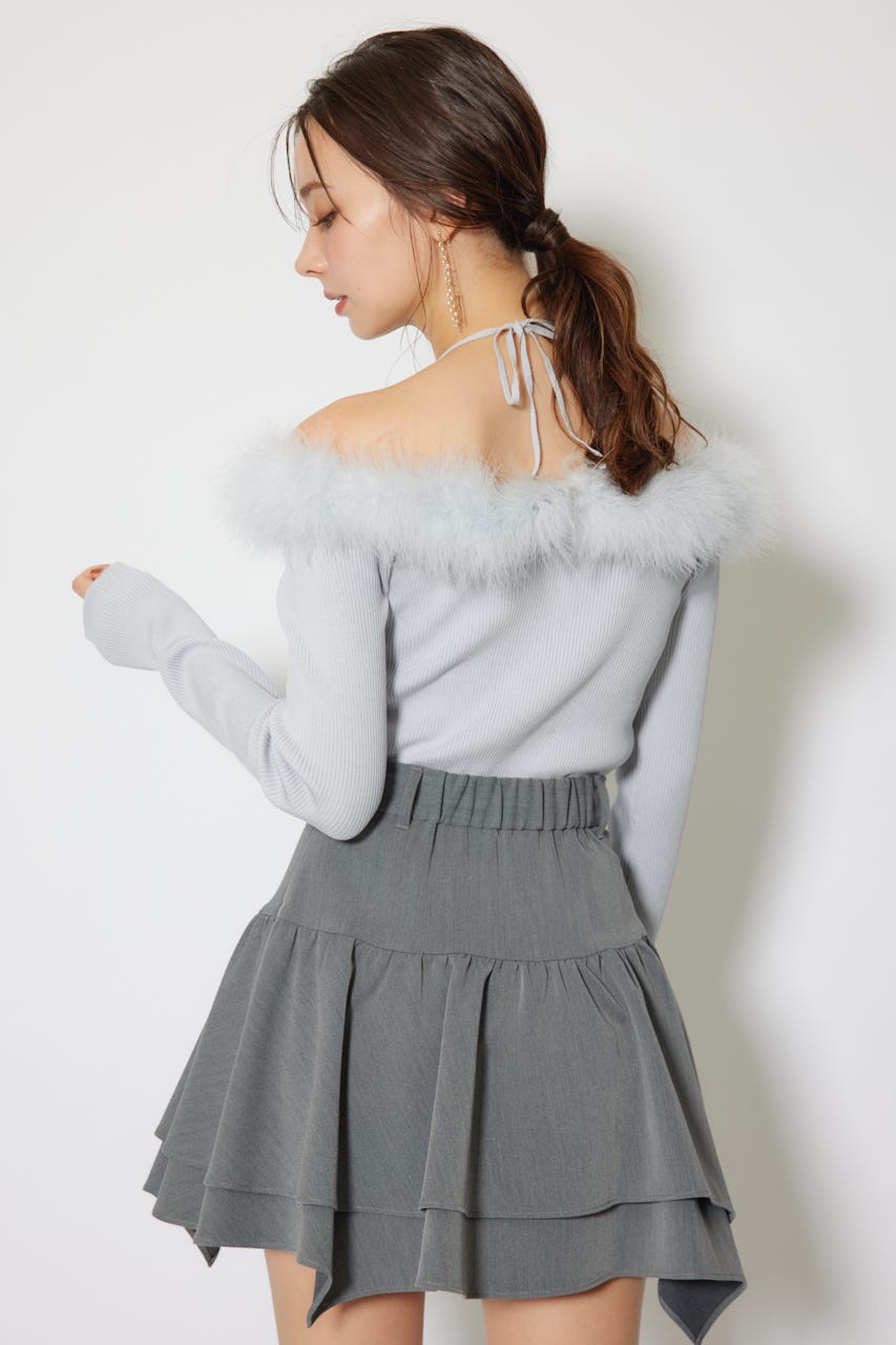 フワフワしたリアルフェザーファーに対して身頃はタイトなシルエットなので、フレアスカートなどボリュームのあるボトムとも相性抜群です。
