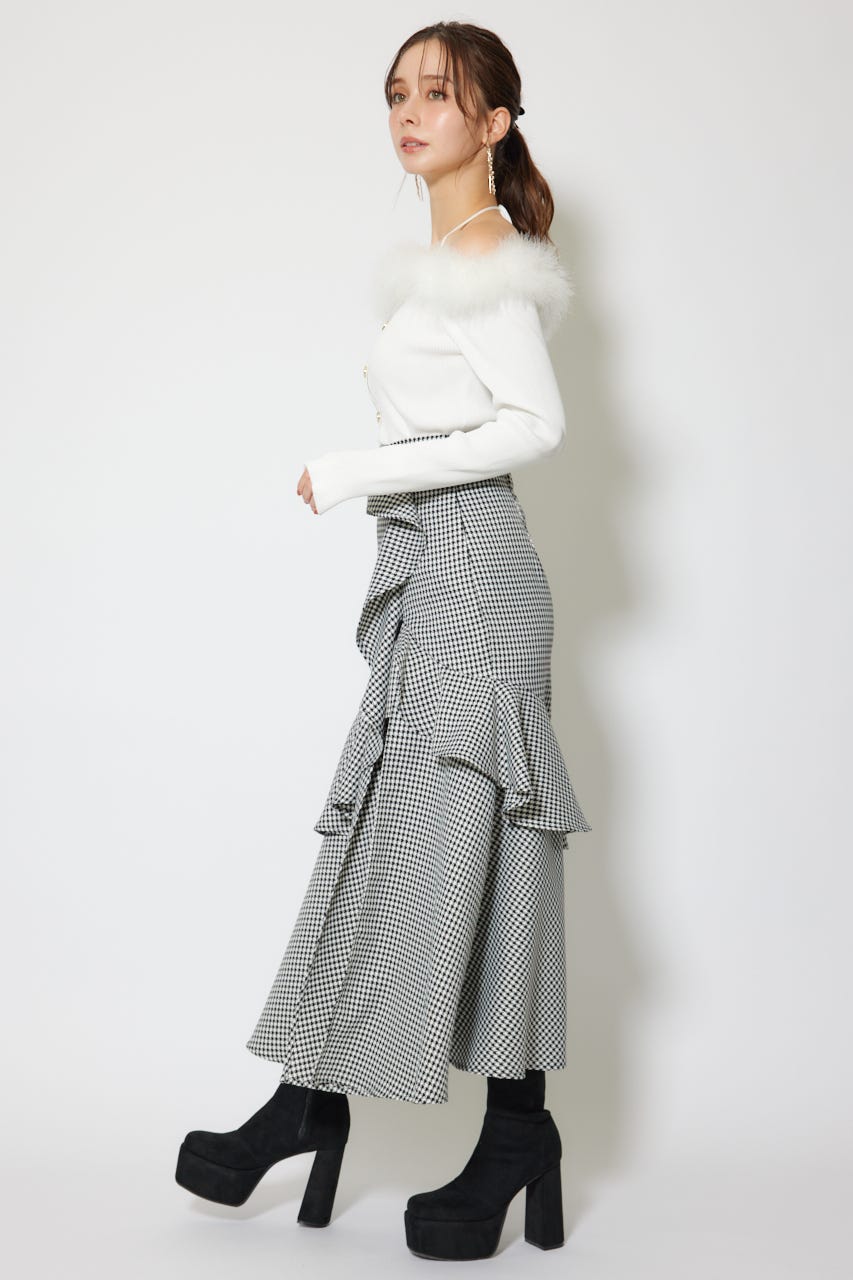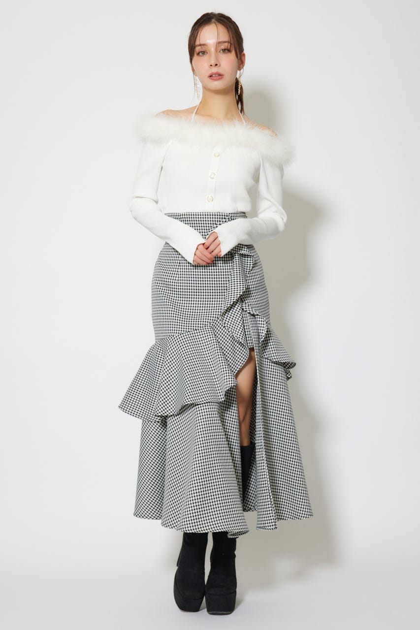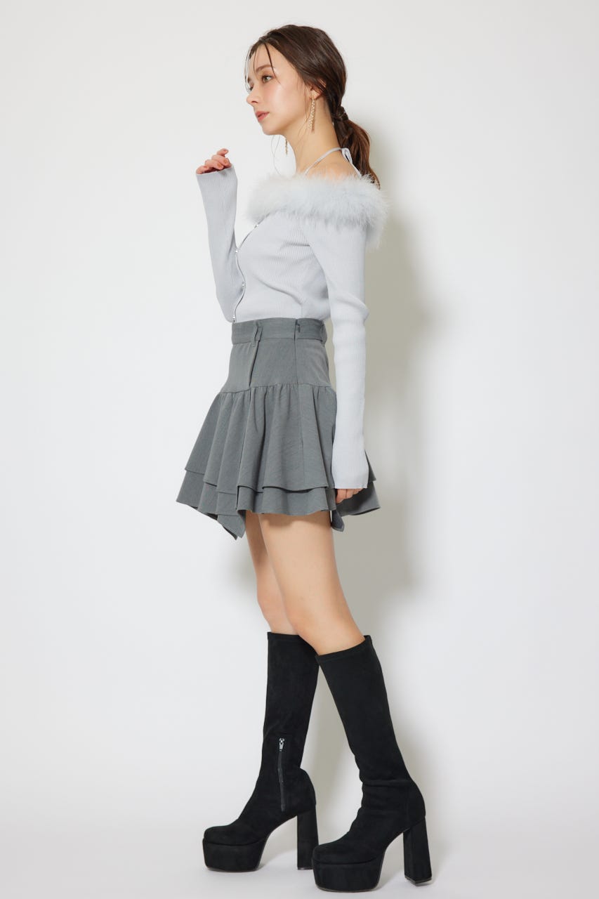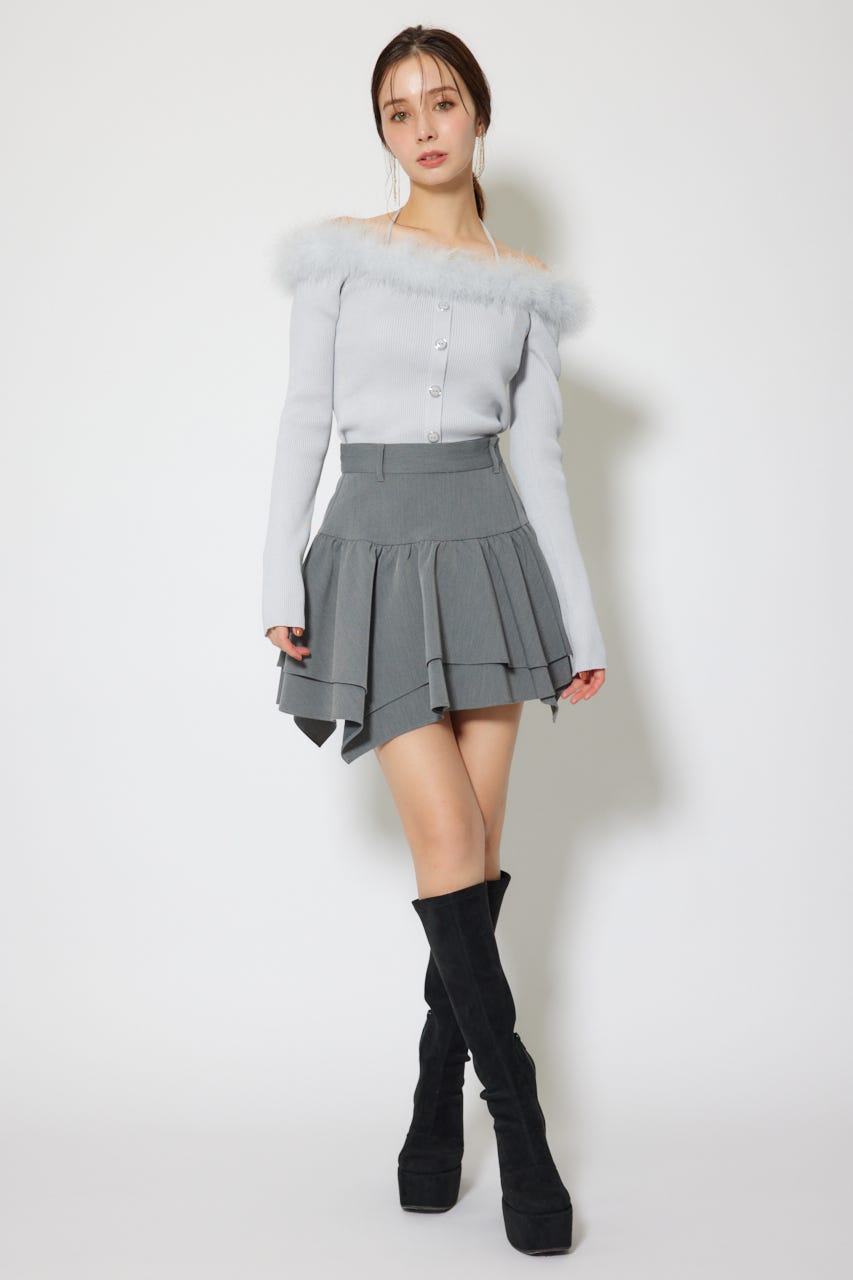 フワフワしたリアルフェザーファーに対して身頃はタイトなシルエットなので、フレアスカートなどボリュームのあるボトムとも相性抜群です。