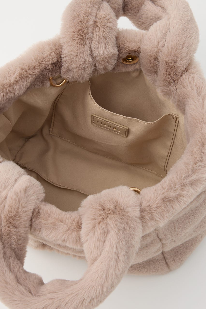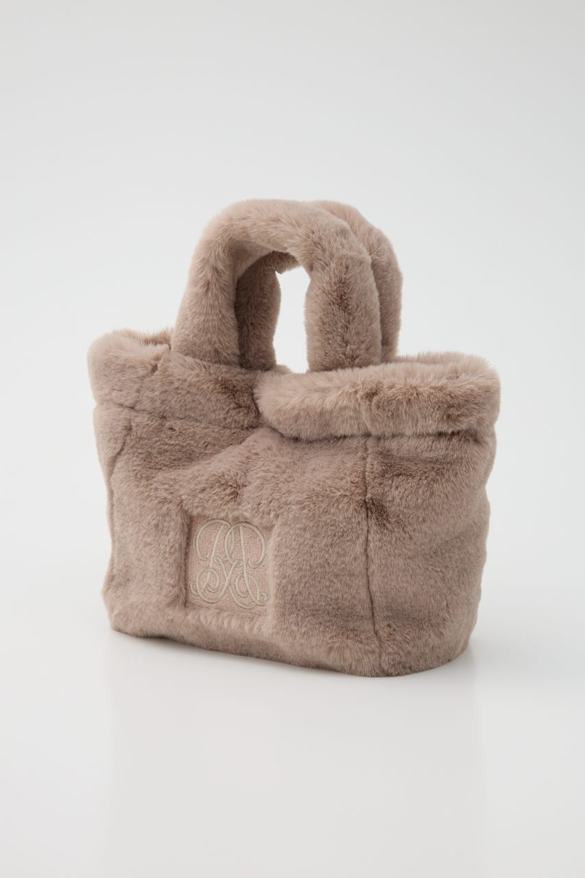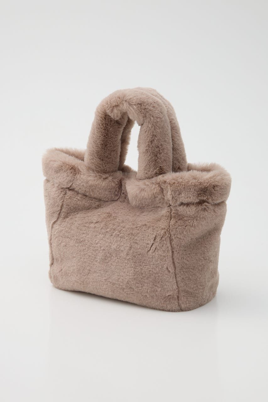 ふわふわなエコファーがかわいらしい印象を与えてくれるトートバッグ。