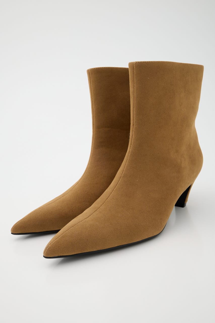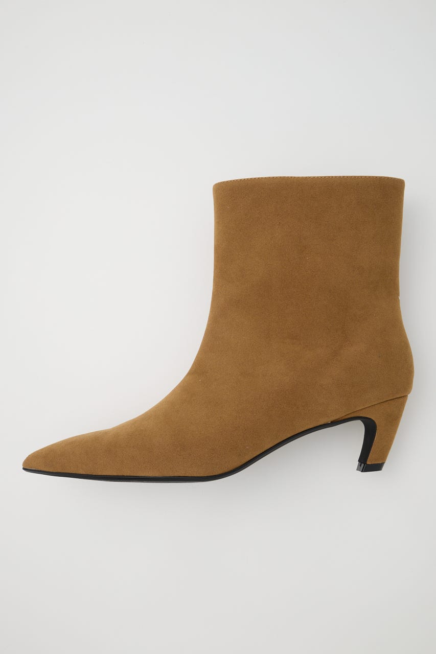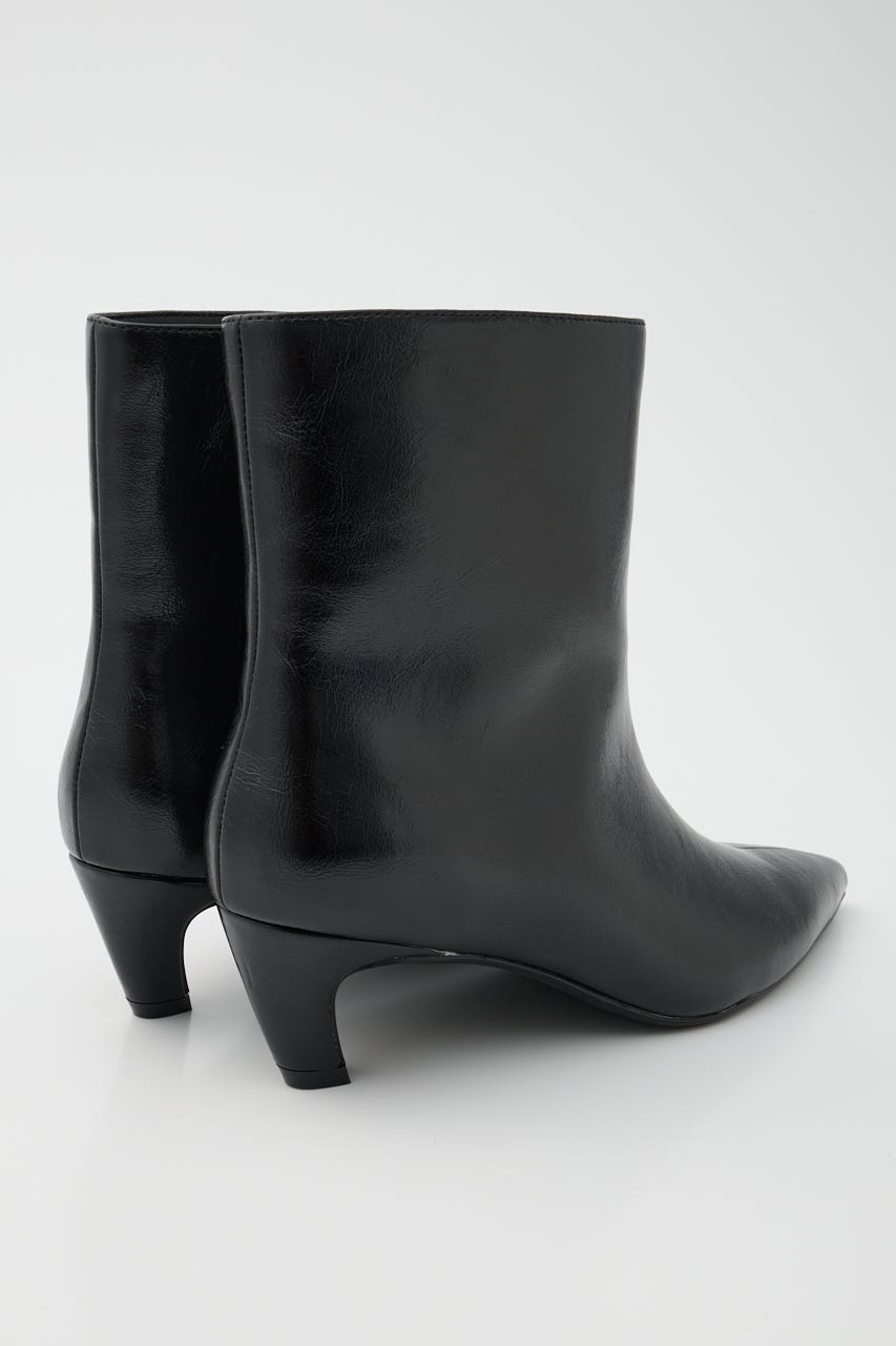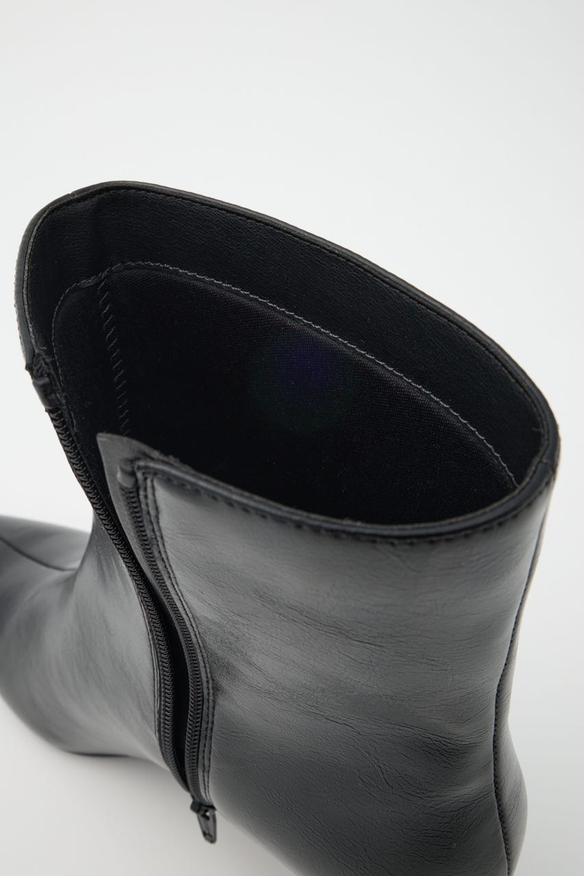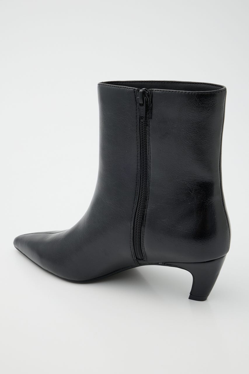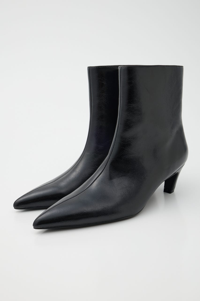 すっきりとしたポインテッドトゥと、無駄を削ぎ落としたシンプルなデザインが魅力のショートブーツ。