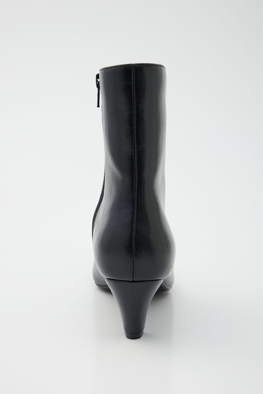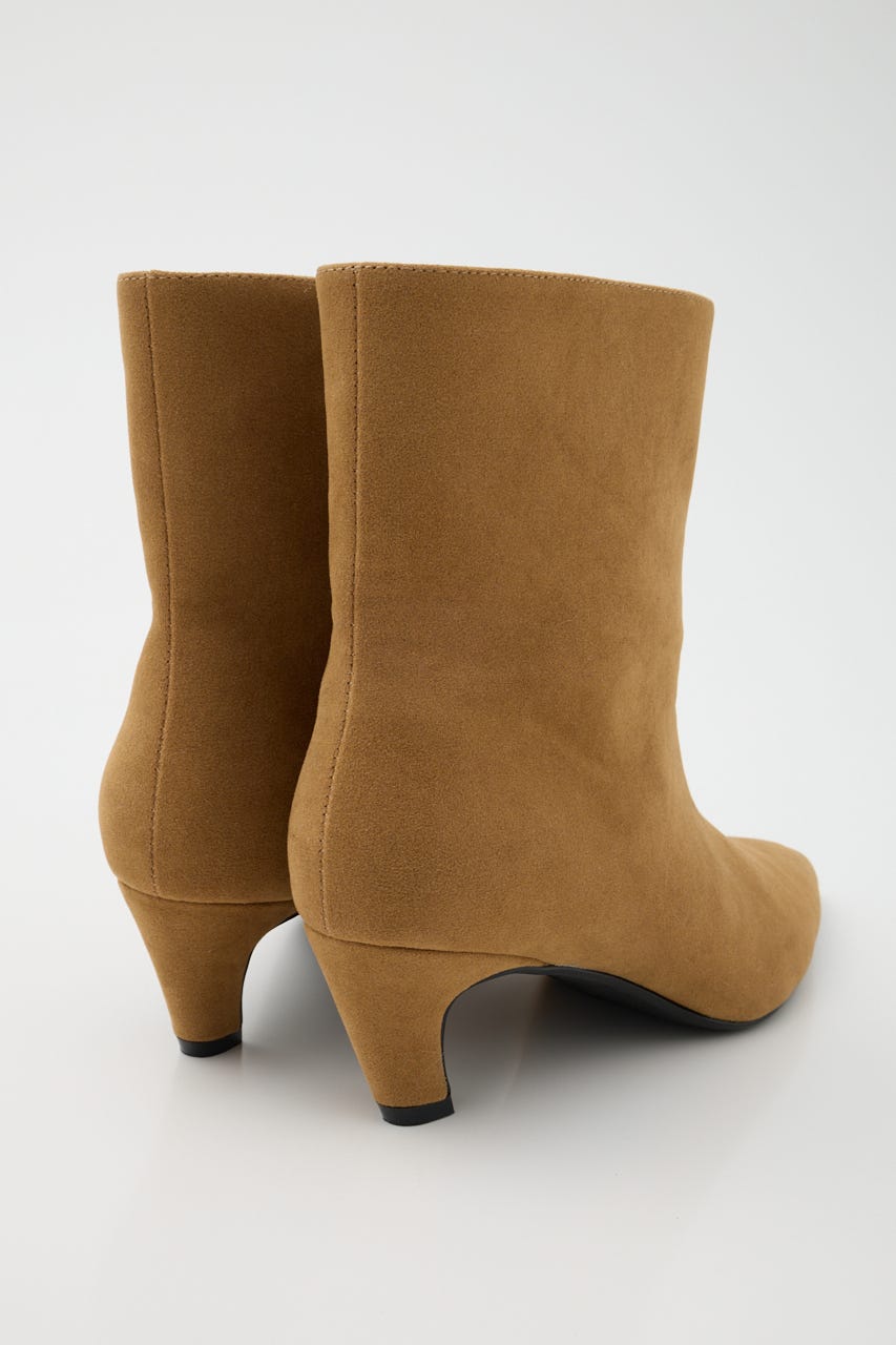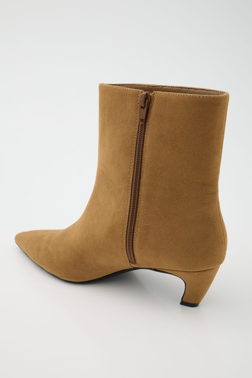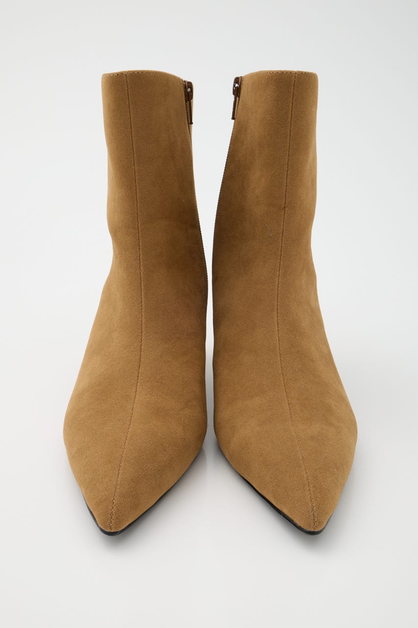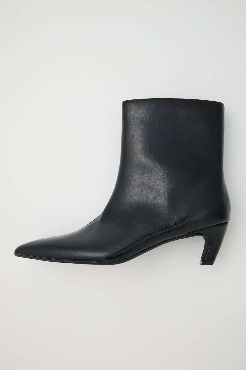 すっきりとしたポインテッドトゥと、無駄を削ぎ落としたシンプルなデザインが魅力のショートブーツ。