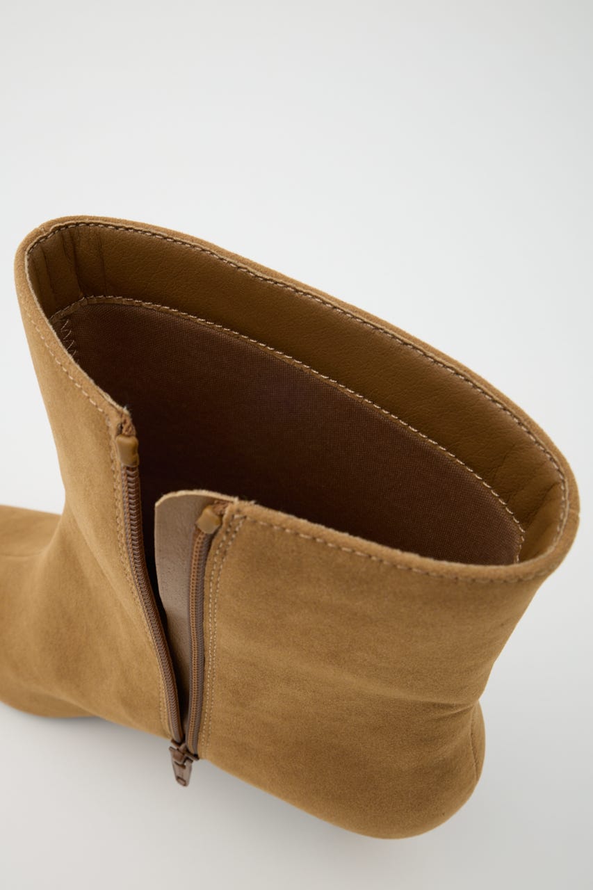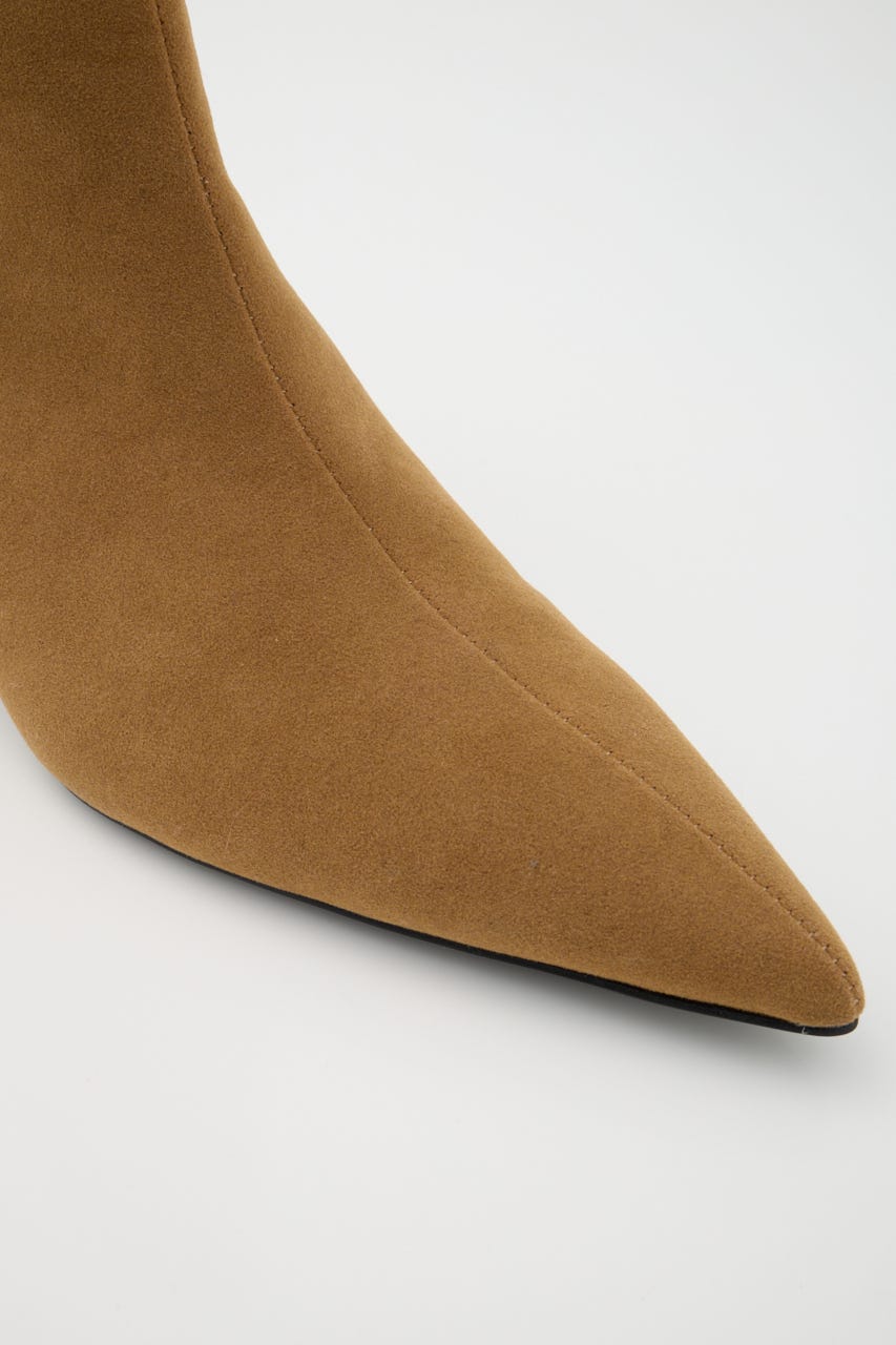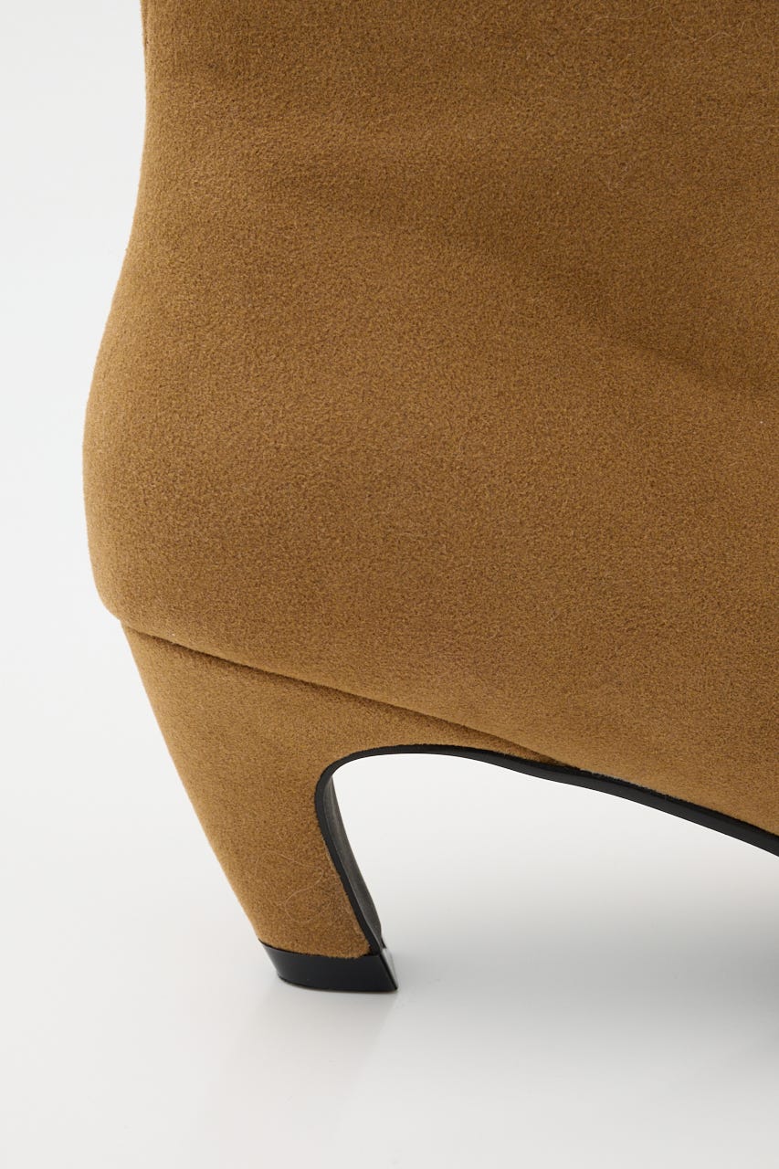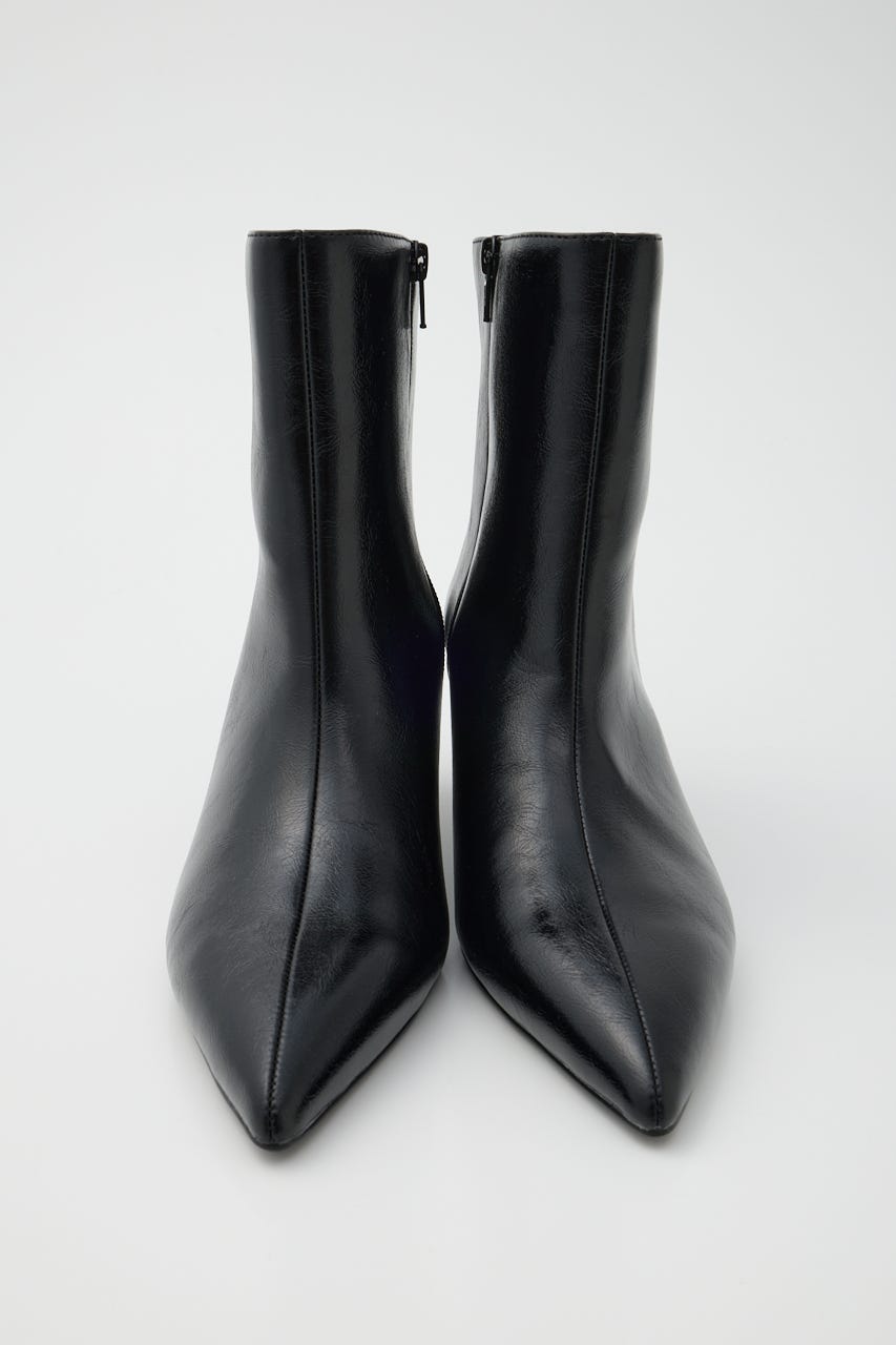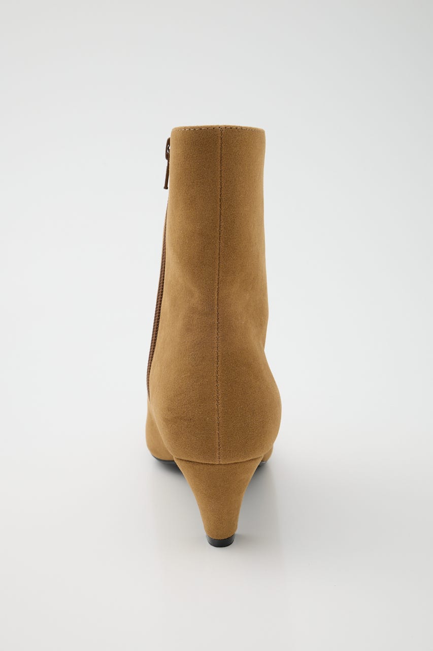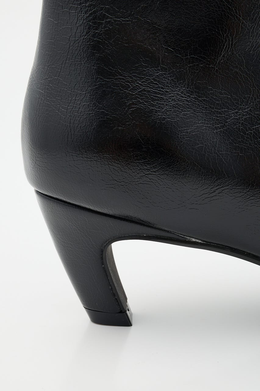 すっきりとしたポインテッドトゥと、無駄を削ぎ落としたシンプルなデザインが魅力のショートブーツ。
