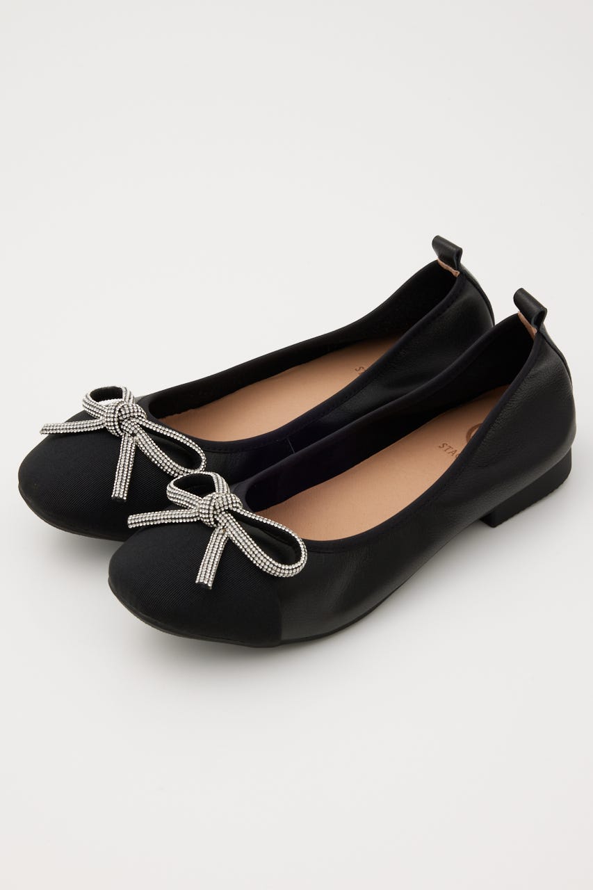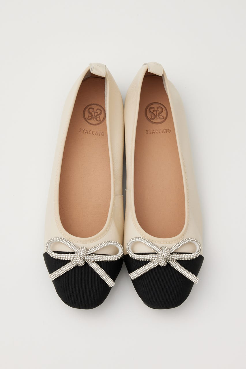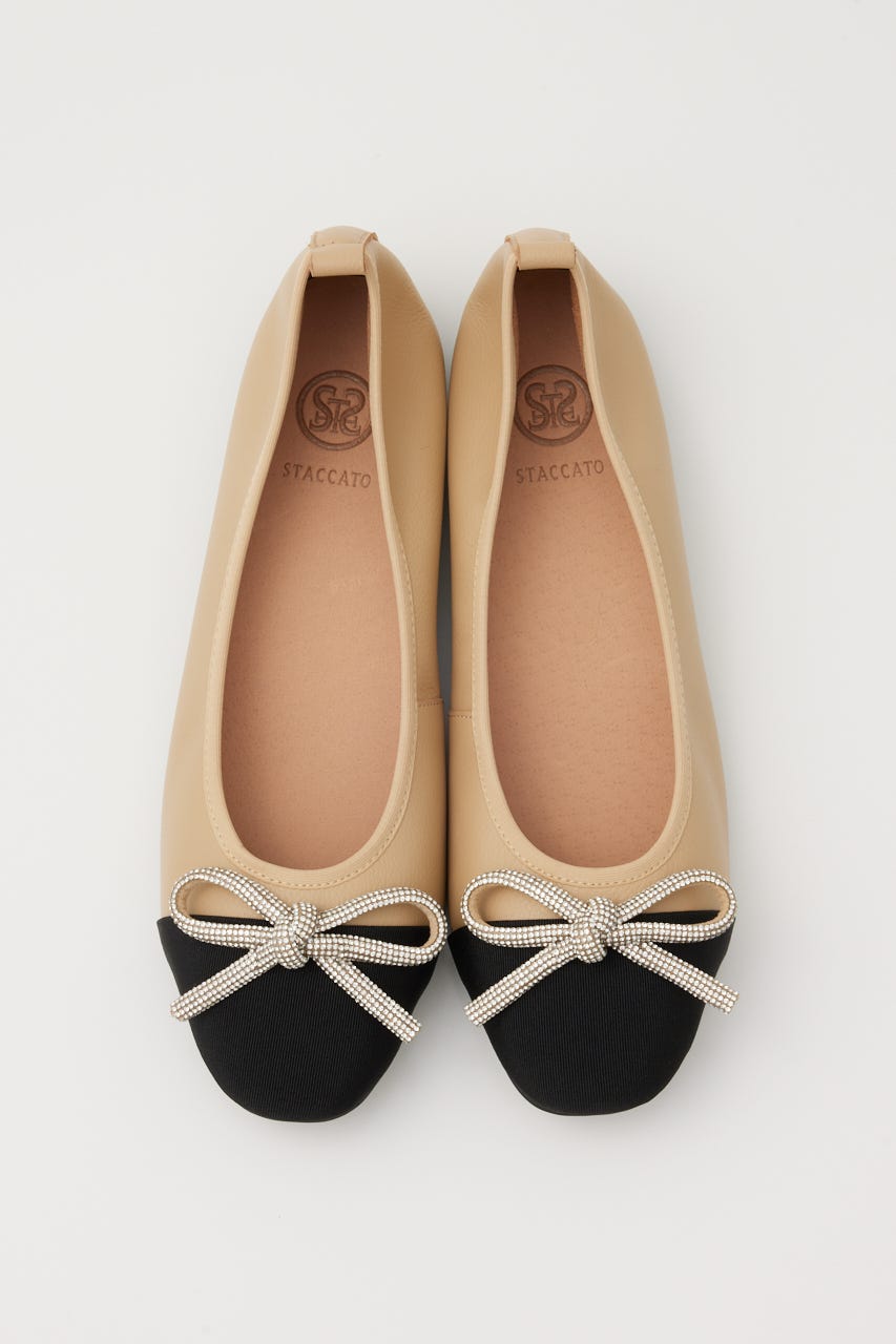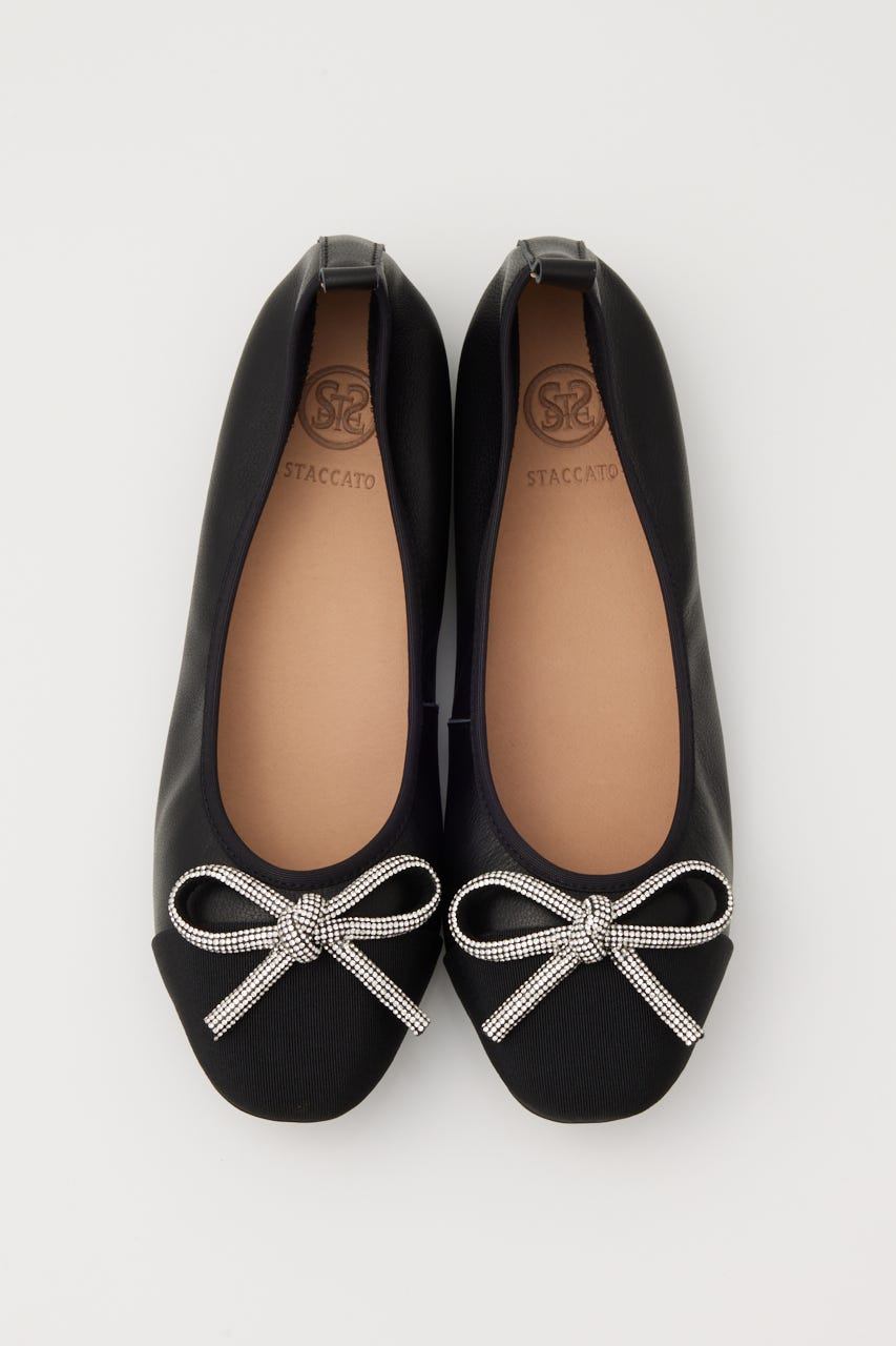 STACCATOを象徴するエレメントのラインストーンでほどこした"リボンモチーフ"がキュートなバレエシューズ。ふかふかのインソールが足裏に吸い付き、ソフトかつしなやかでフィット感も◎