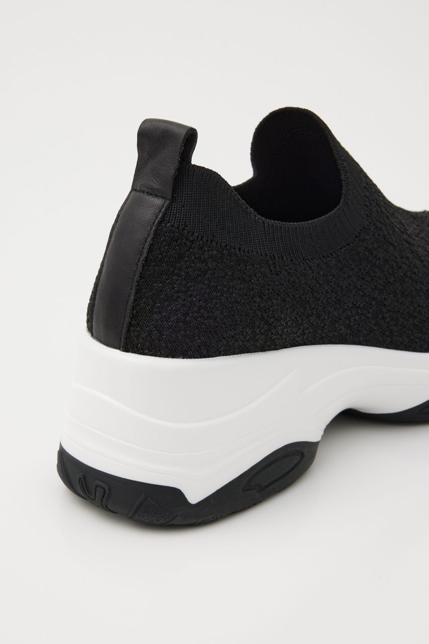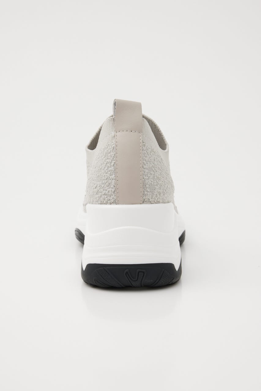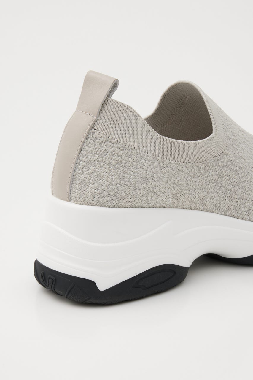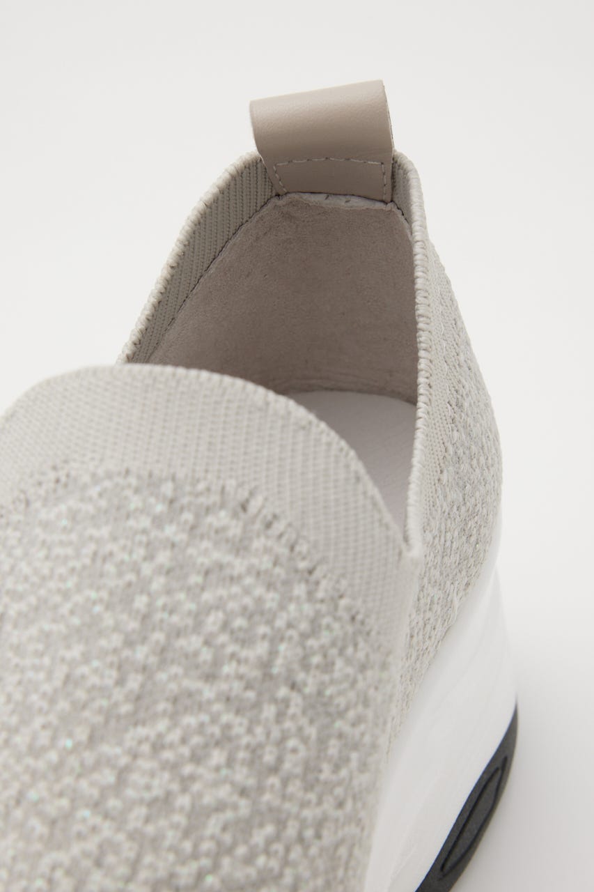 表情感と凹凸感のある立体的なMIXニット地に、つま先部分にはグラデーション風に大小のオーロラストーンを装飾。フィット感のあるハイバンプデザイン&安定感ある程よい高さのスニーカーソールは、ボリューム過ぎないのに脚長効果も期待大。シーズンレスでデイリーユースに大活躍してくれます。