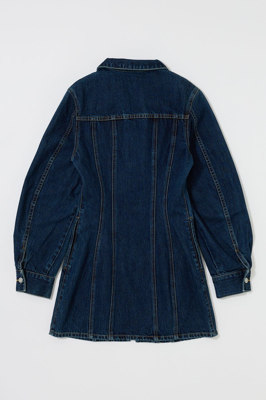 デニムジャケットからインスパイアされたフロントの切り替えが特徴で、ウエストラインを引き立てるシルエットが簡単にスタイルアップをしてくれます。