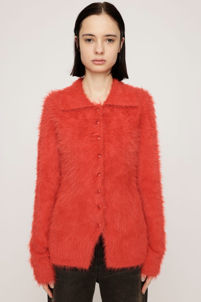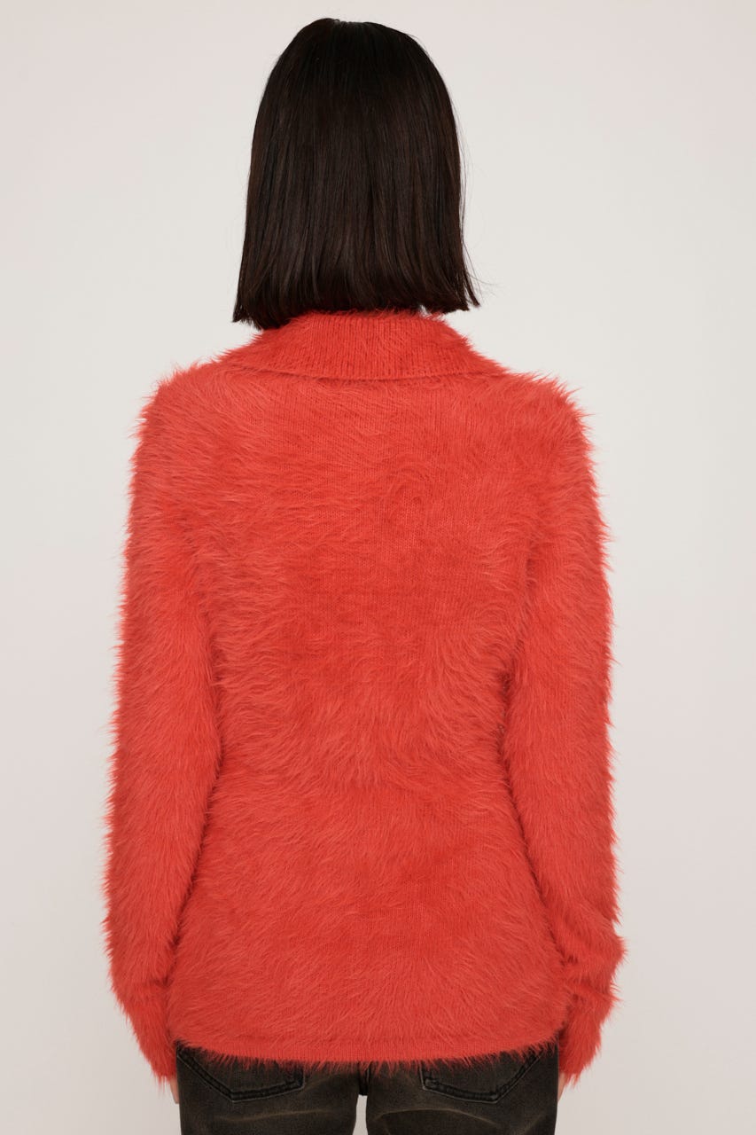 ■POINT:毛足の長いシャギー素材が目を惹く、トレンド感たっぷりの襟付きニットトップス。