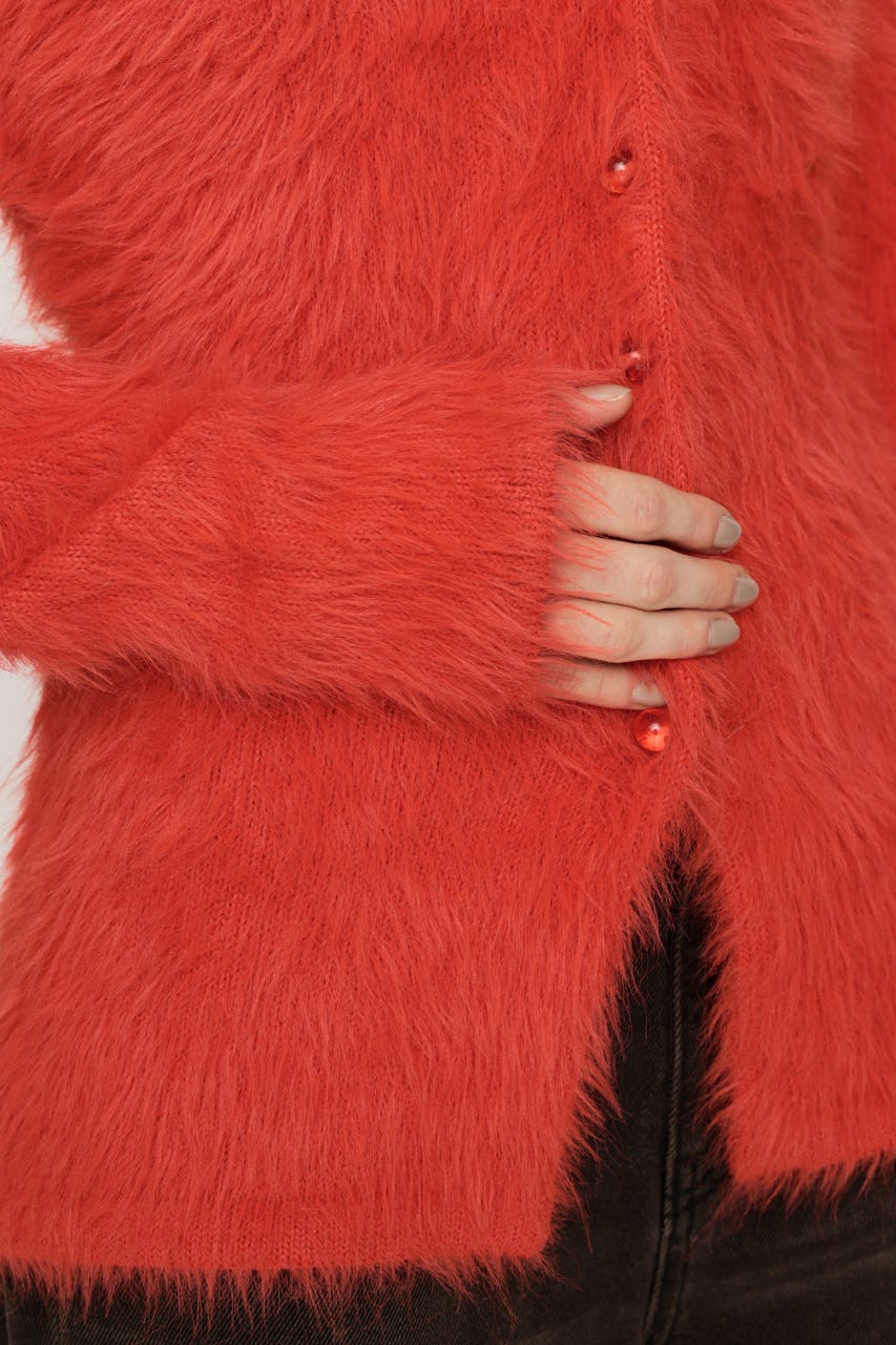 毛足の長いシャギーがトレンド感と華やかさをプラスし、1枚でコーディネートが映えるアイテムです。