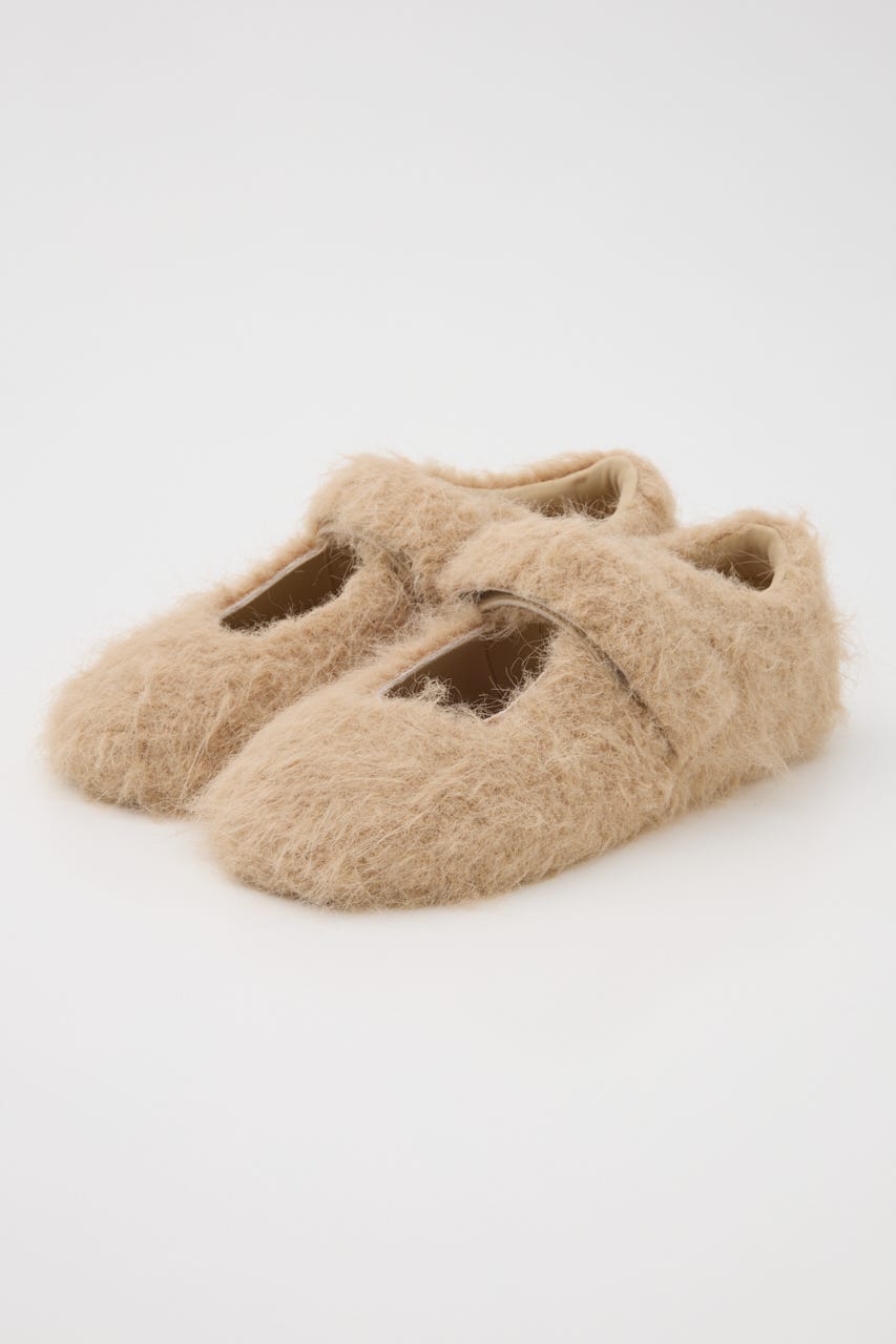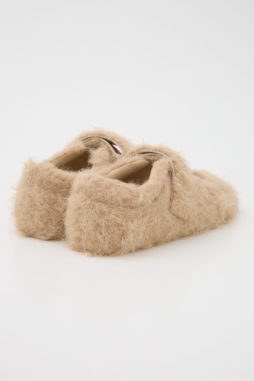 ■POINT/DETAIL:今季注目のバレリーナシューズ型をベースに、毛足のあるフェイクファー素材で仕上げたフラットシューズ。