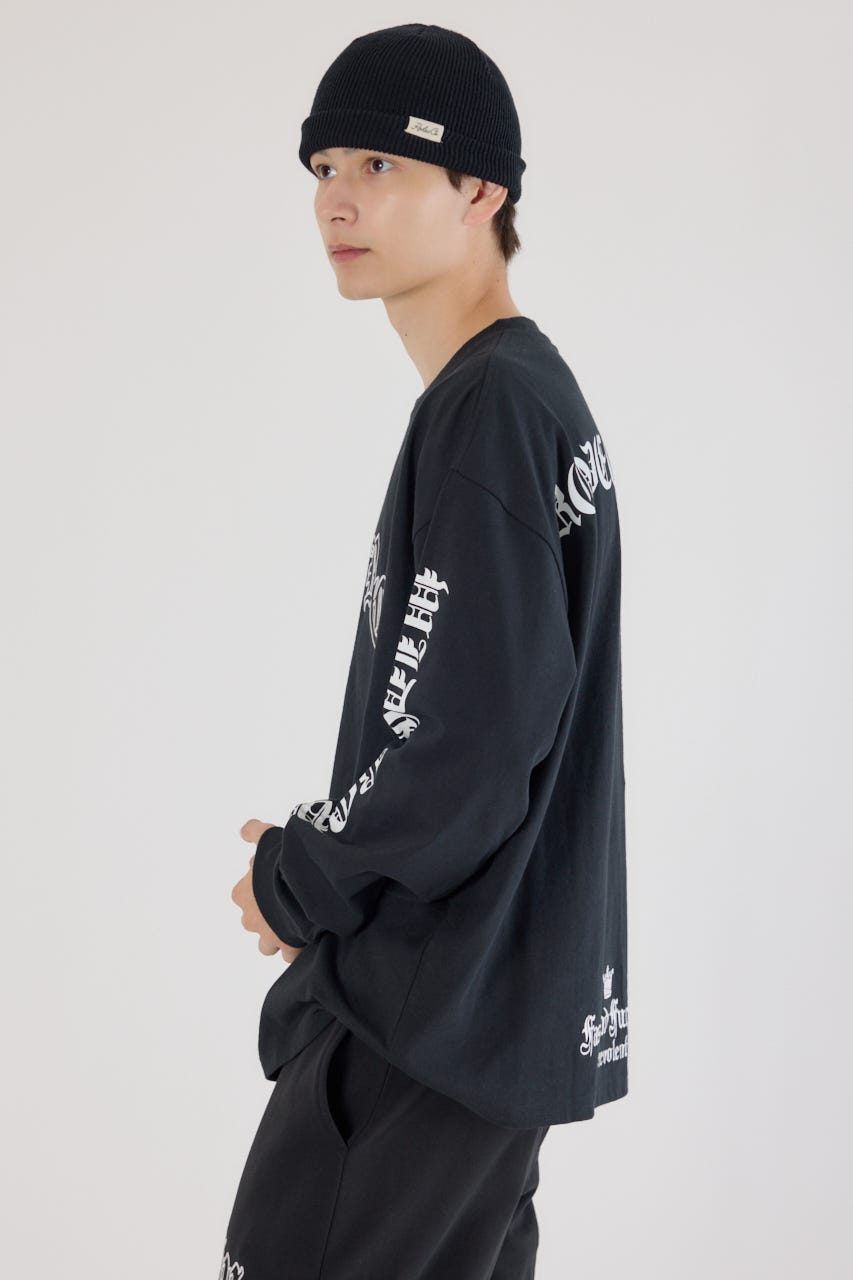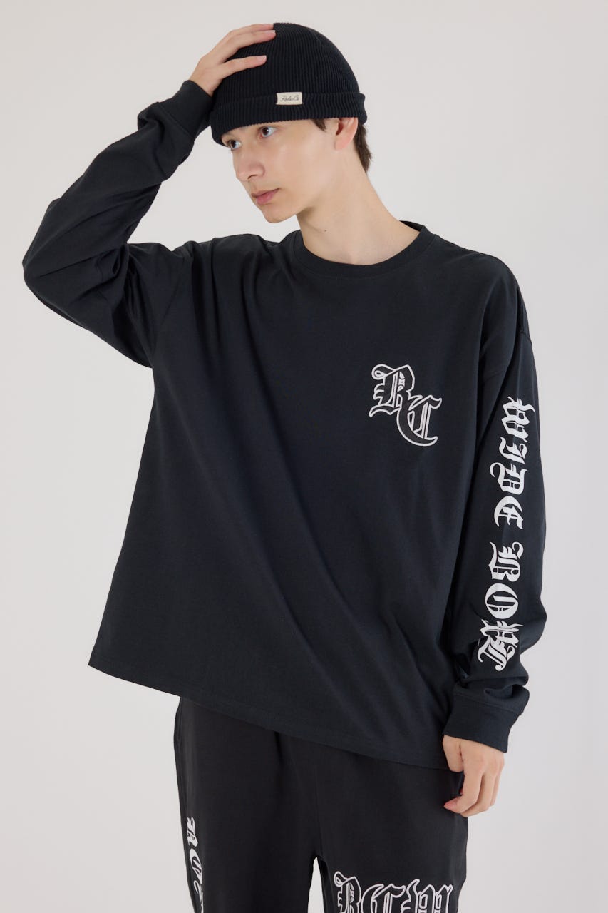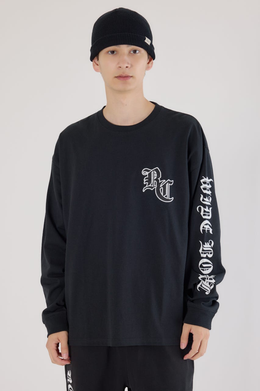 クールな印象のオールドイングリッシュフォントロゴがポイントのロングスリーブTシャツ。