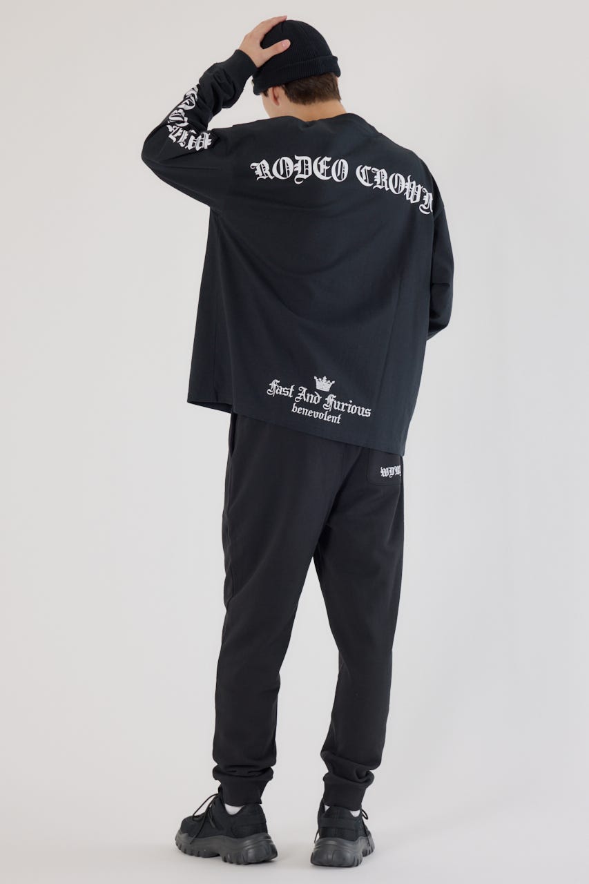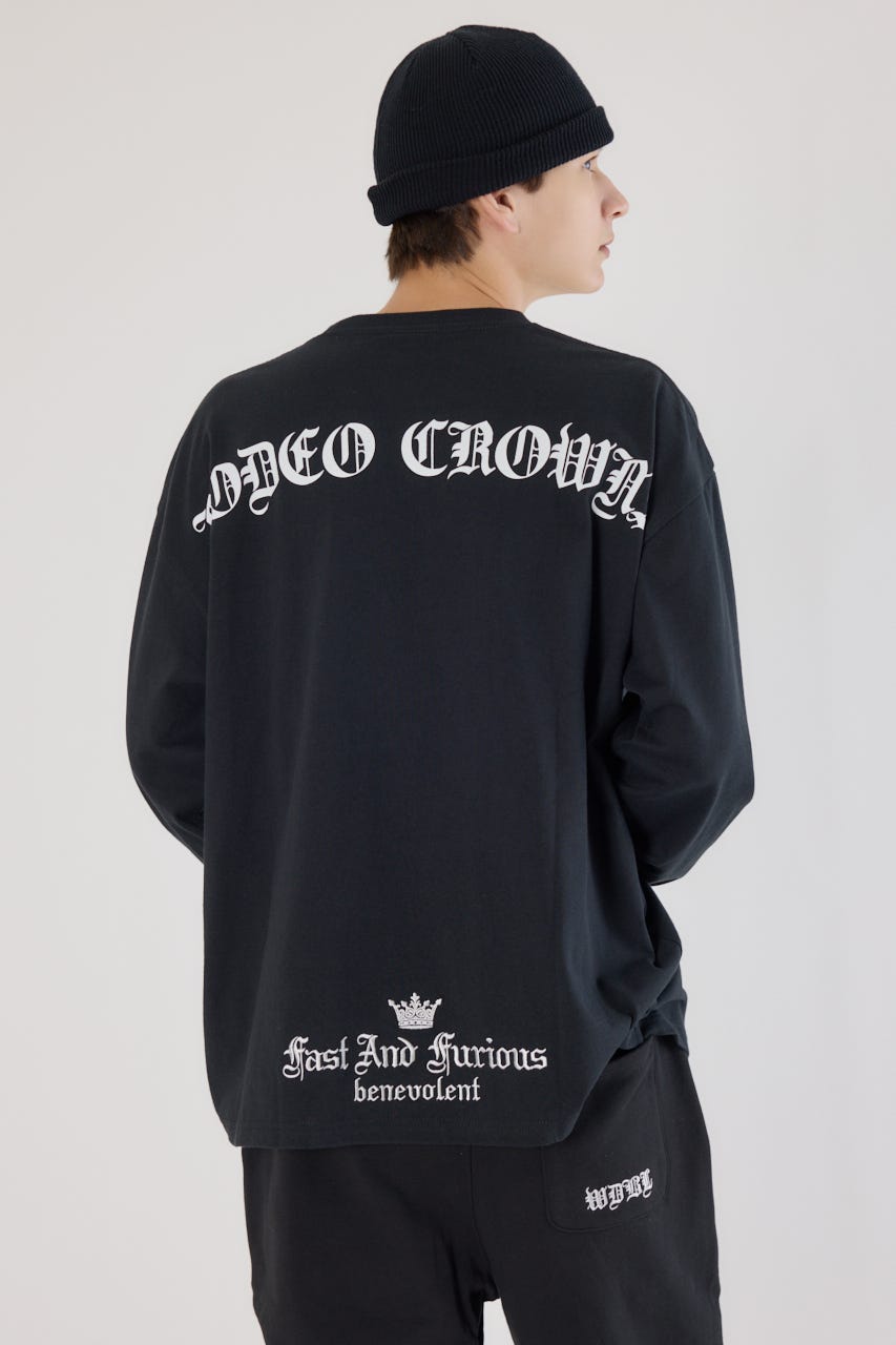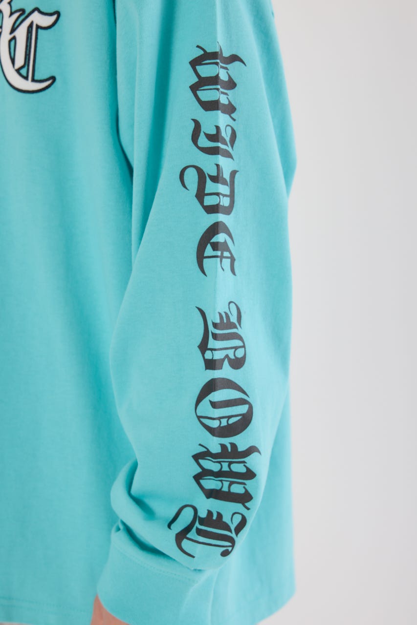 クールな印象のオールドイングリッシュフォントロゴがポイントのロングスリーブTシャツ。