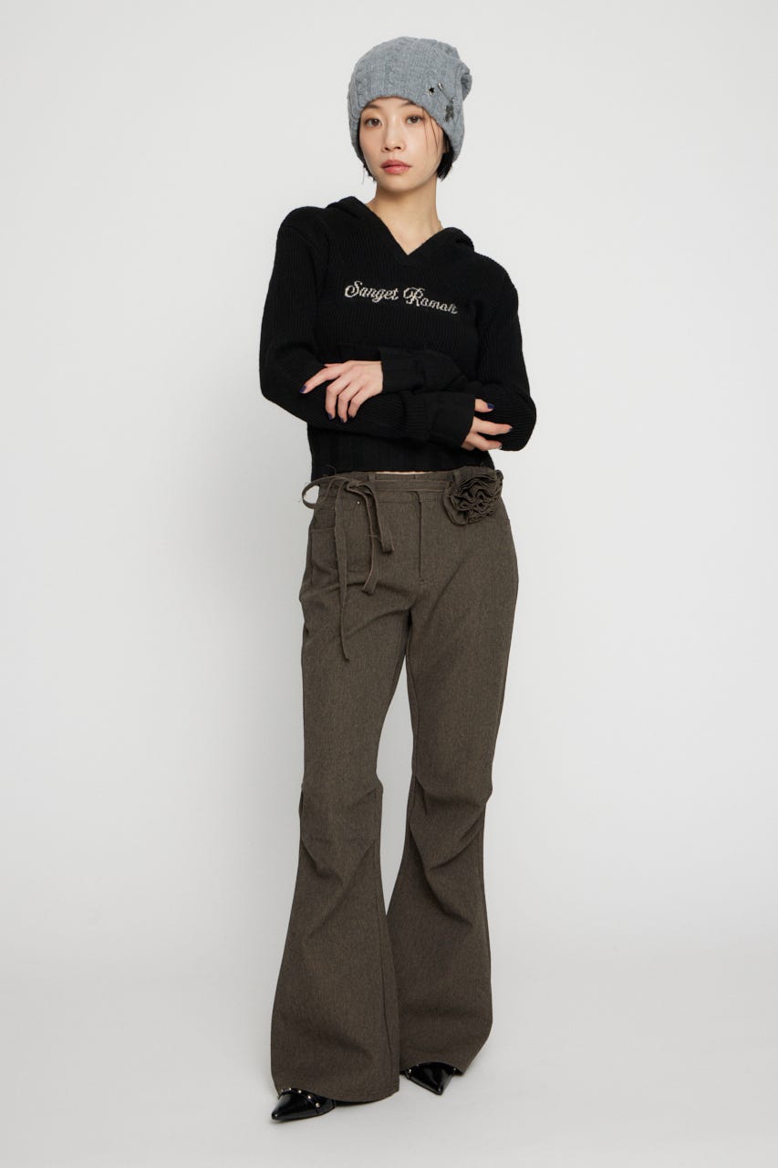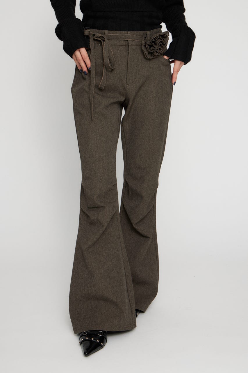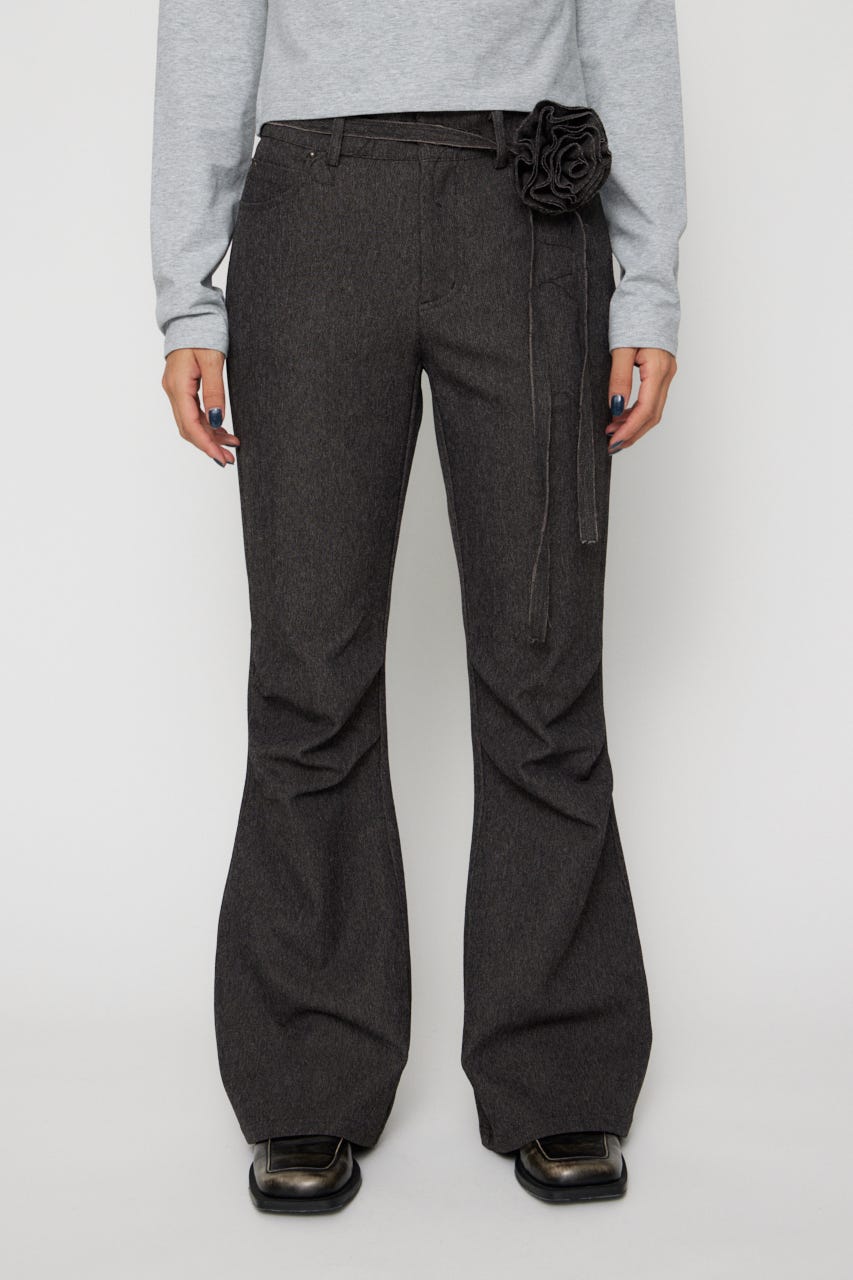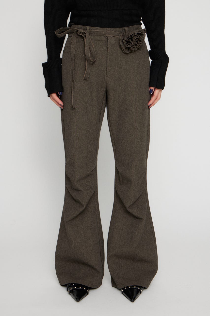 ■POINT:共地のコサージュベルトがポイントのフレアボトム。