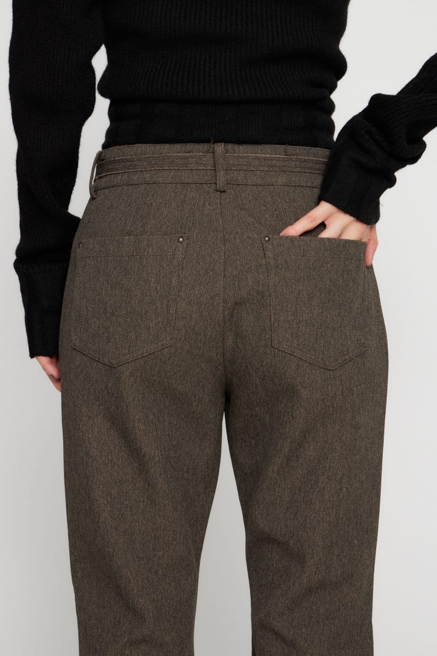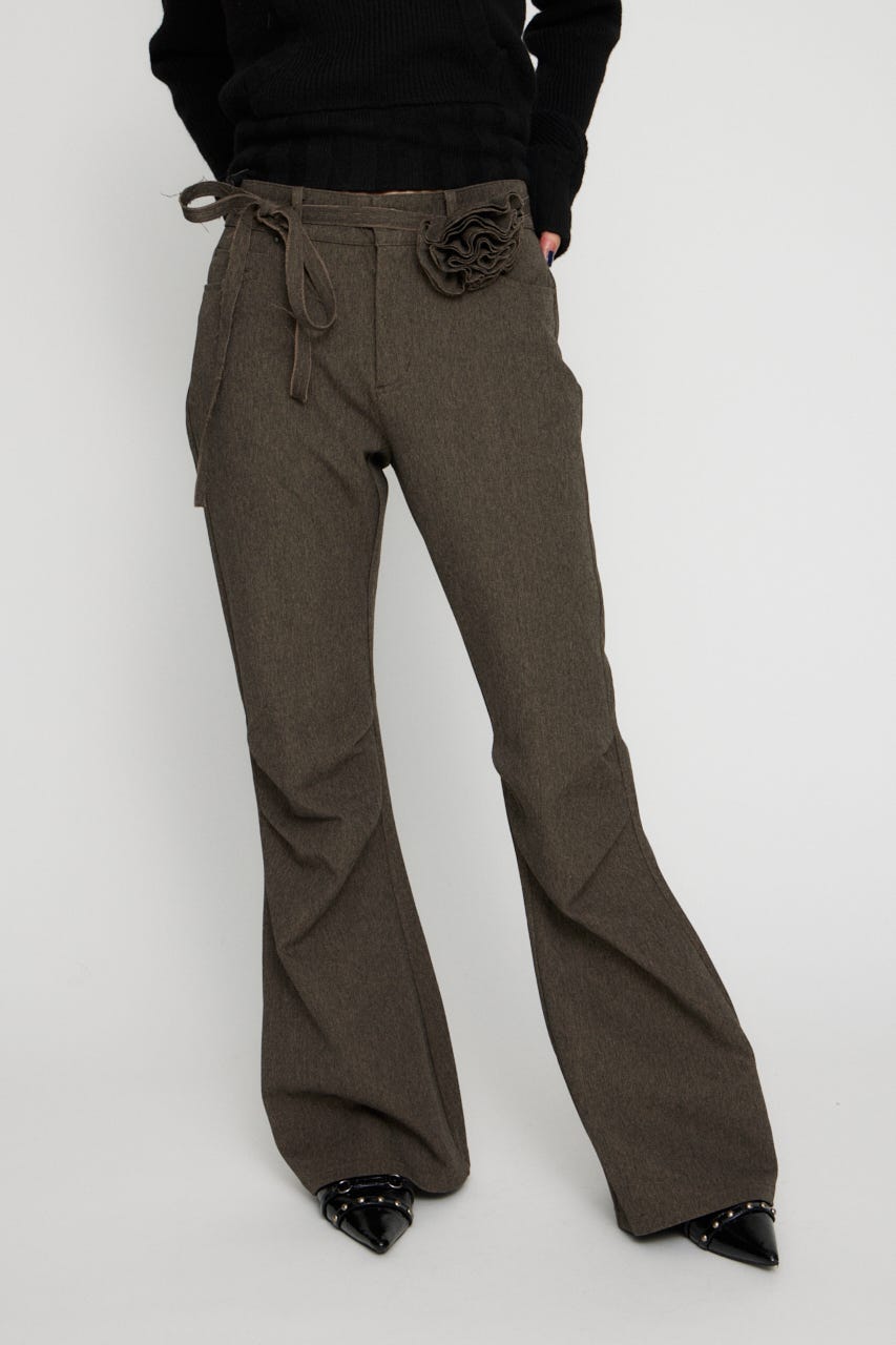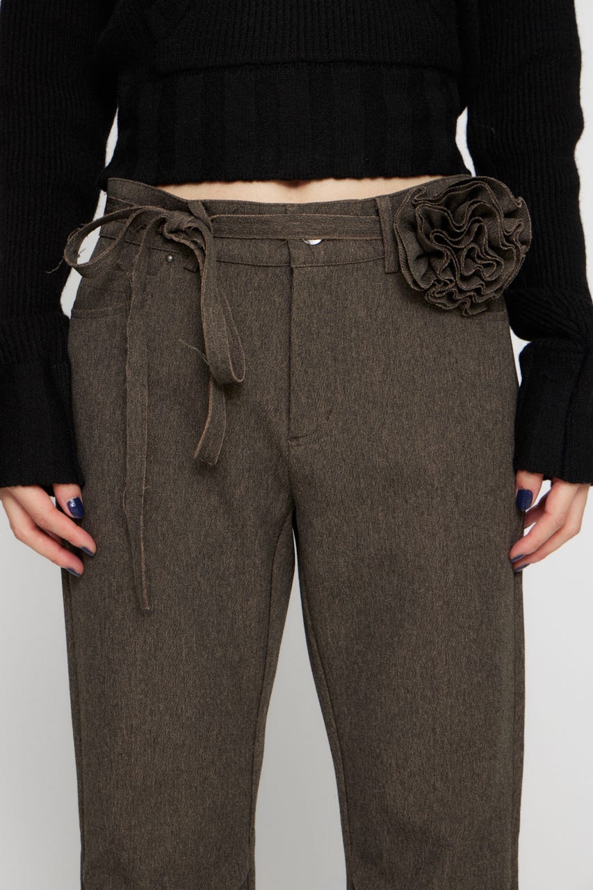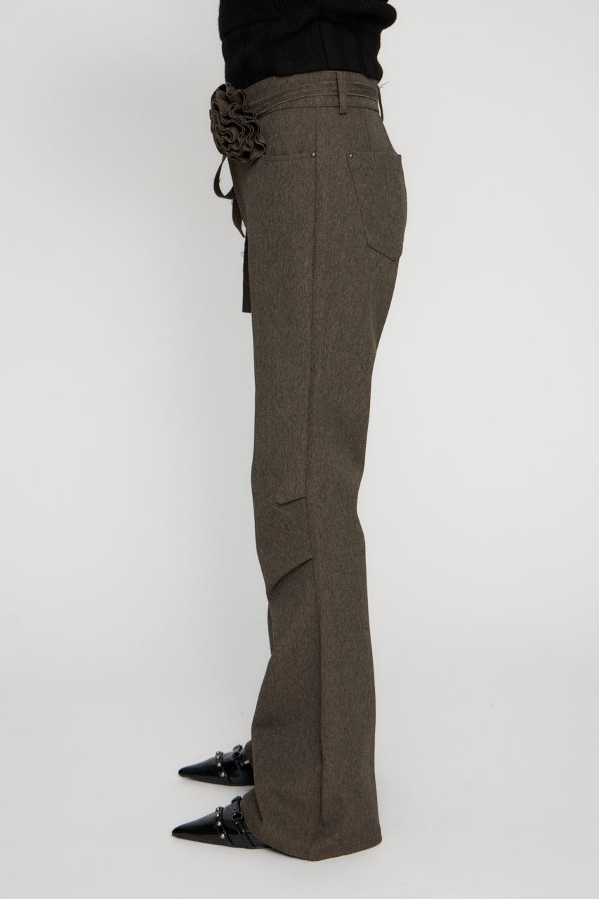 ■POINT:共地のコサージュベルトがポイントのフレアボトム。