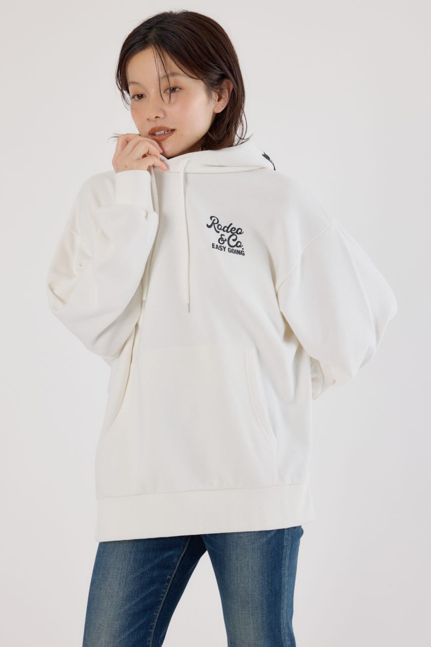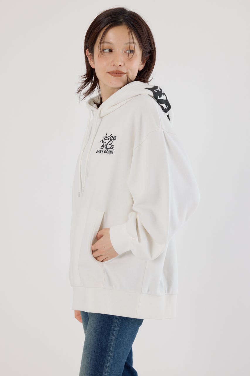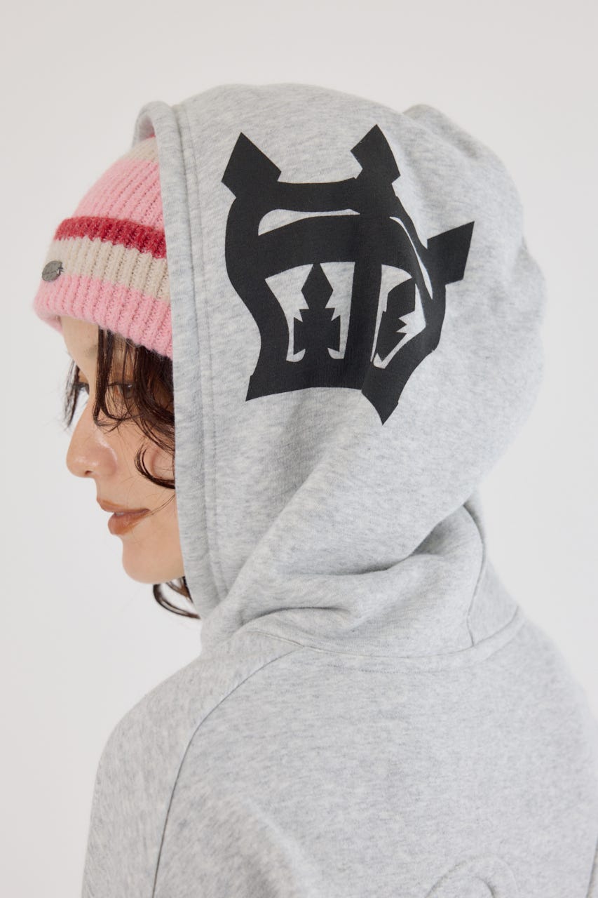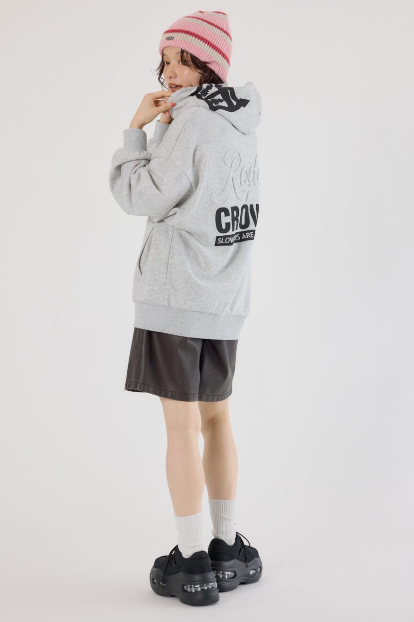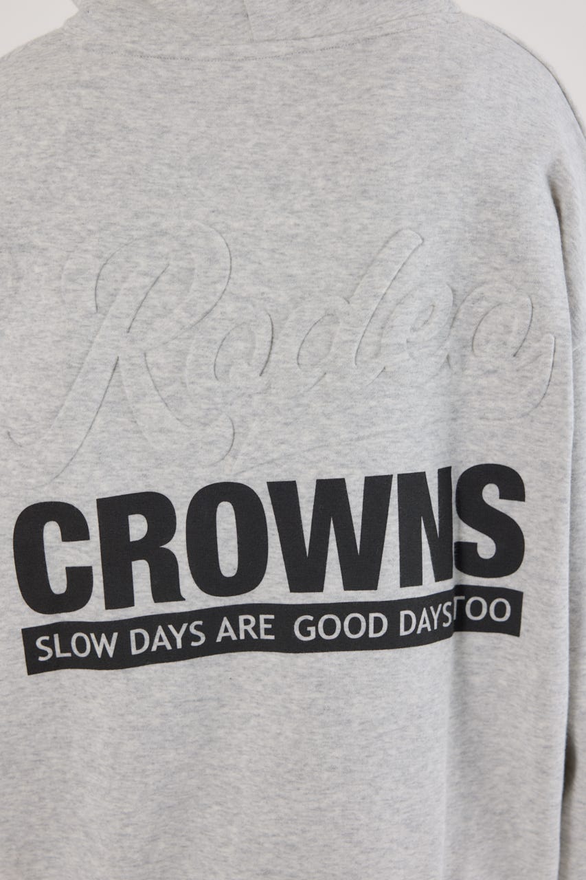 フードにもクラウンマークのプリントを施し、かぶっても降ろしてもアクセントになる、コーディネートの主役にぴったりな一枚です。