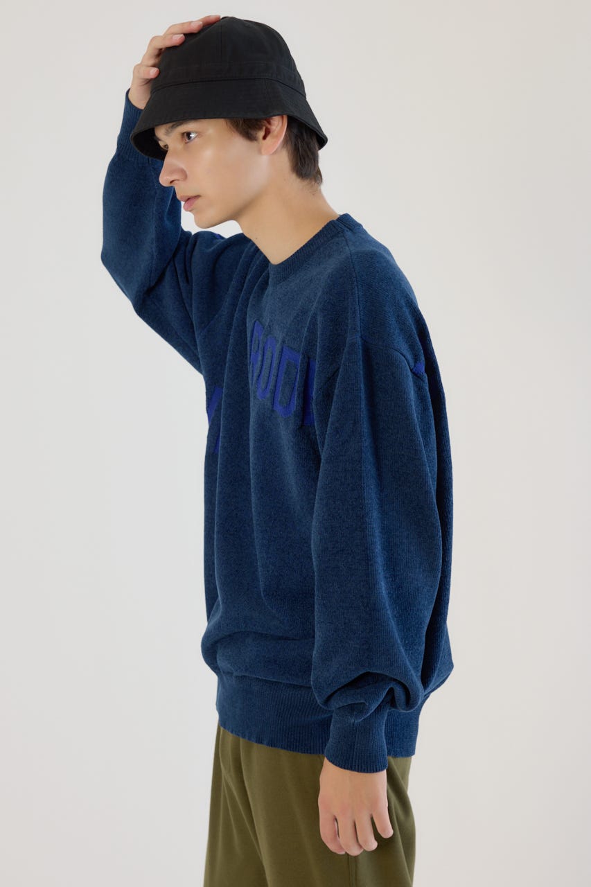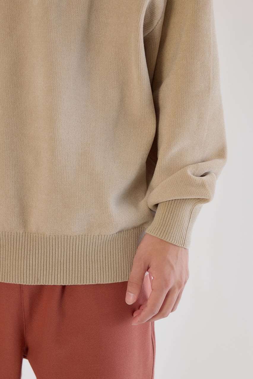 モール糸と、細番手のストレート糸を使用したニットプルオーバー。