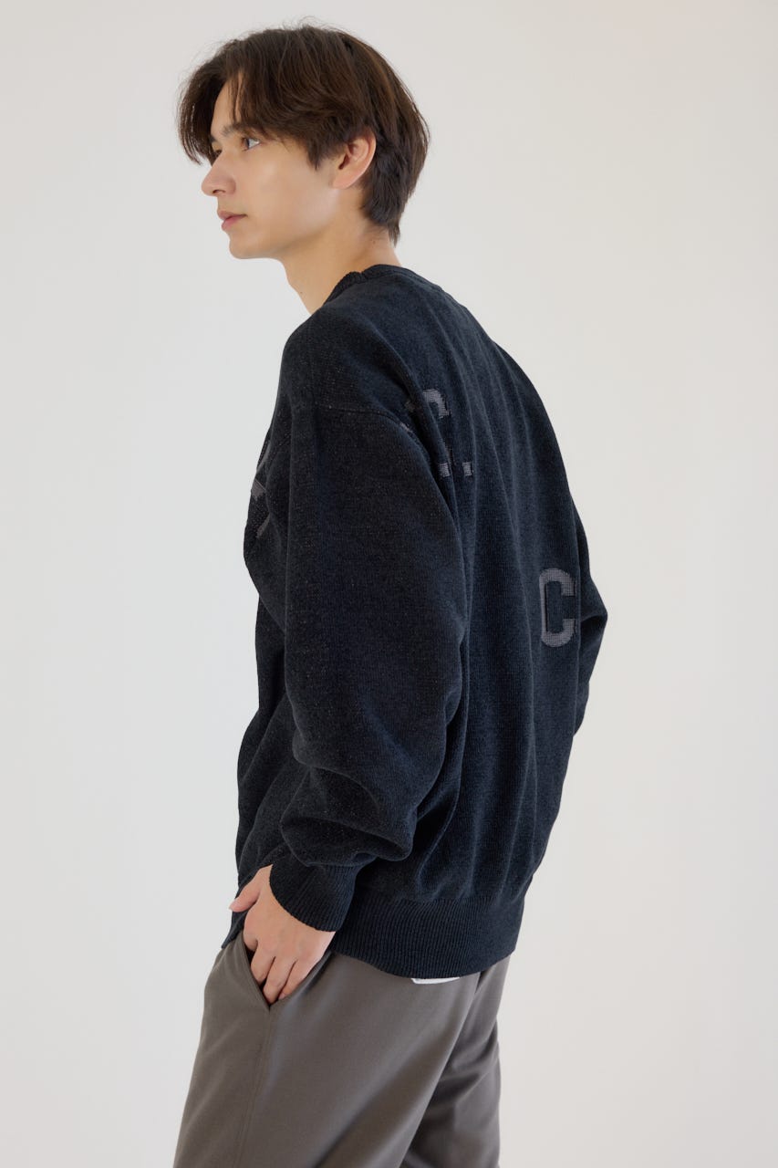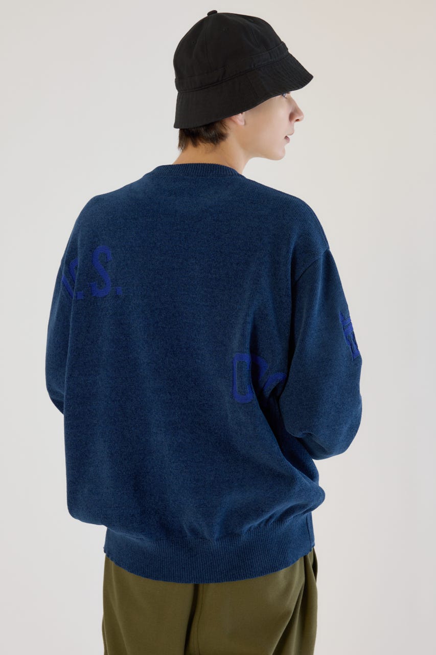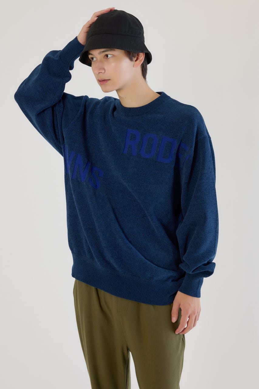 糸の種類を使いわけることにより、編み柄でも凹凸を表現し、異素材の組み合わせでより立体的なロゴデザインなどをニットに落とし込んでいます。