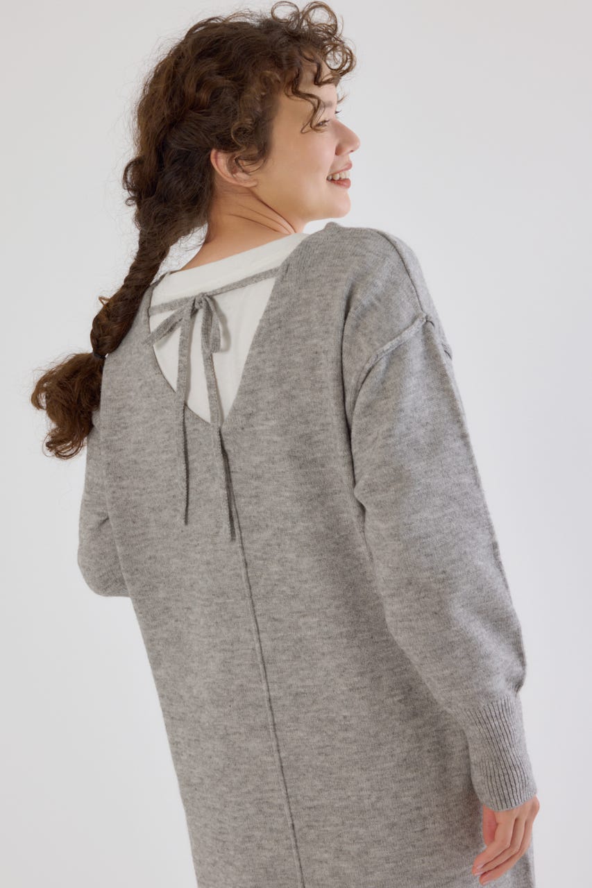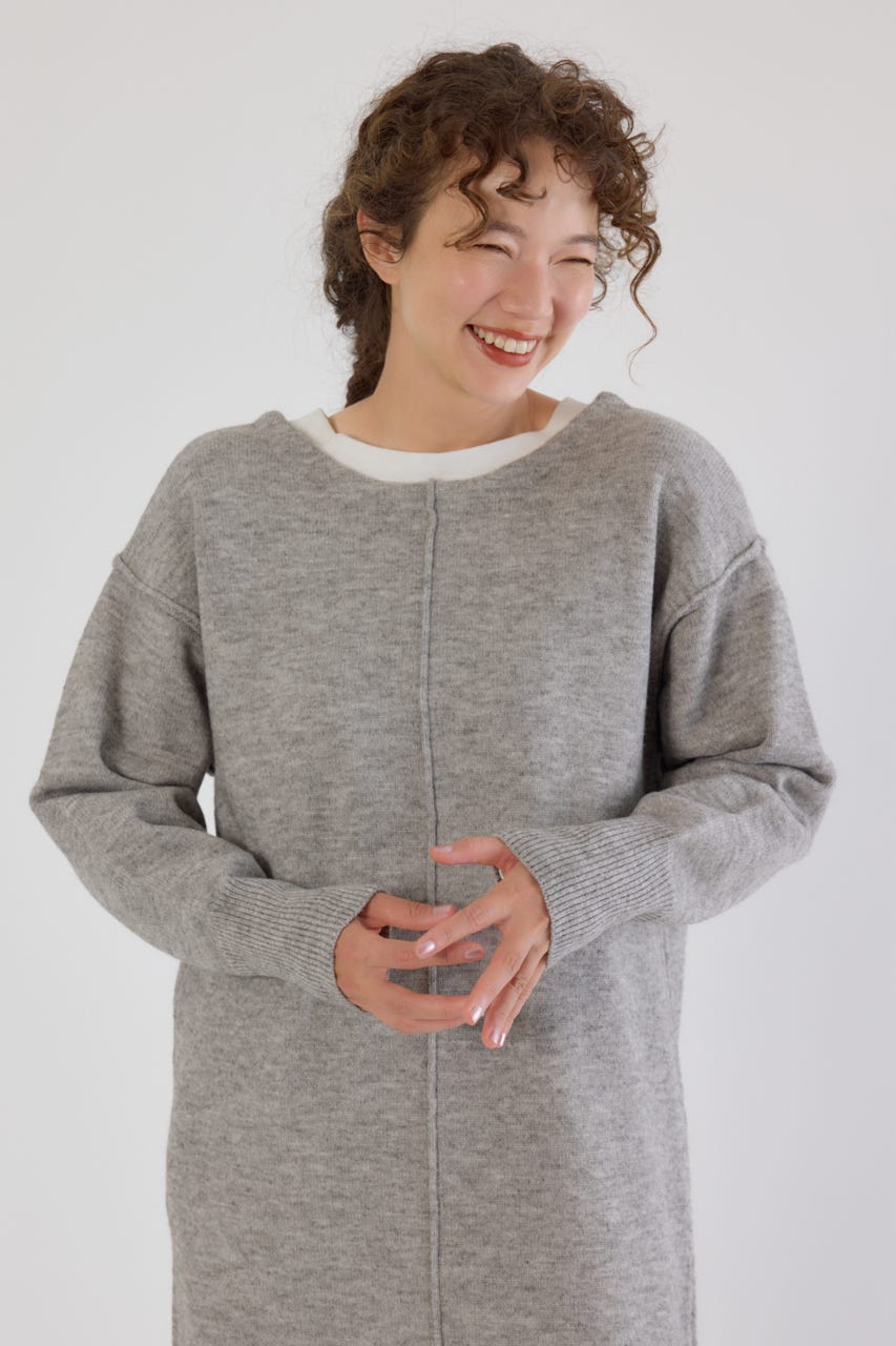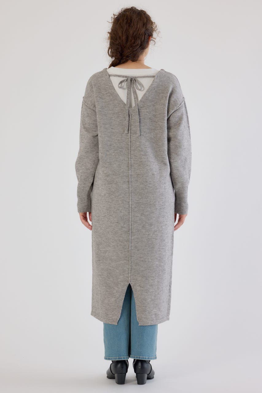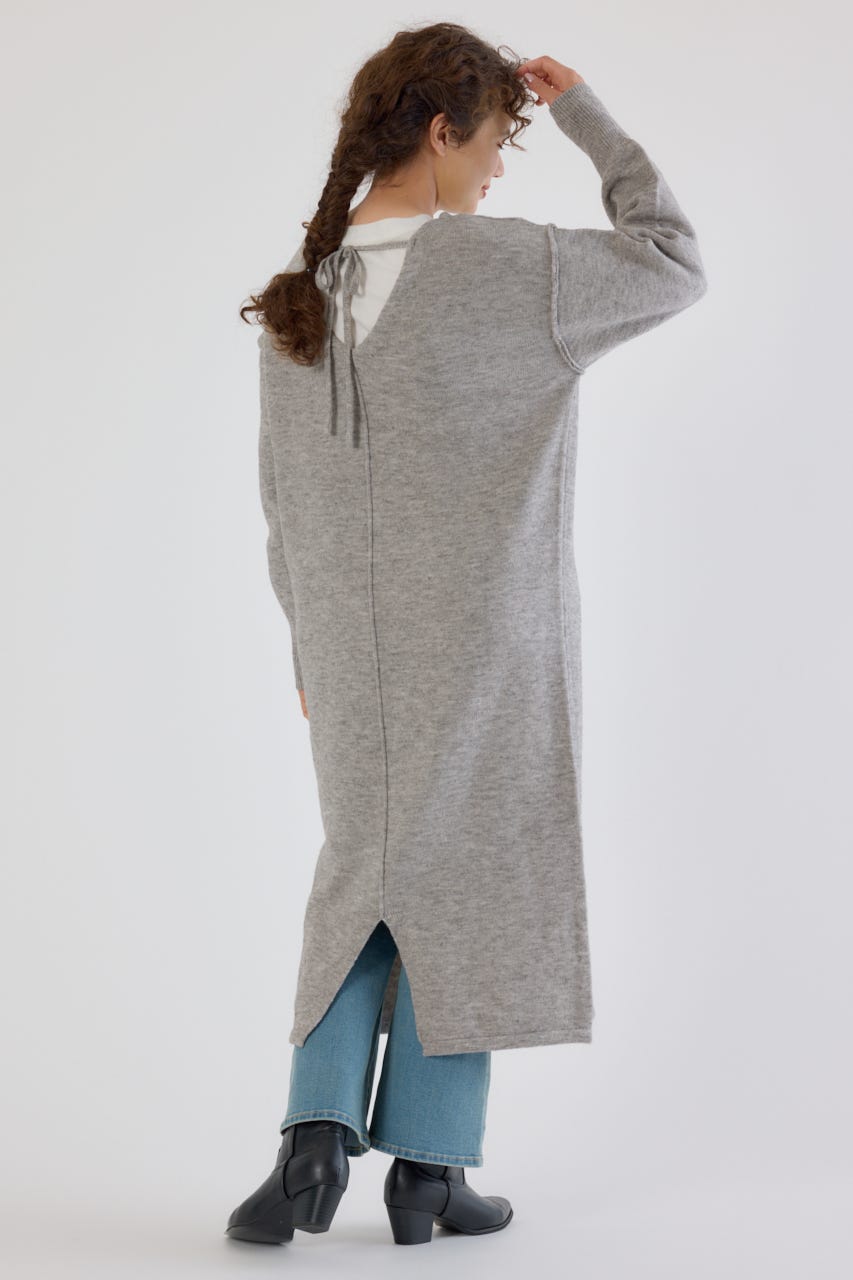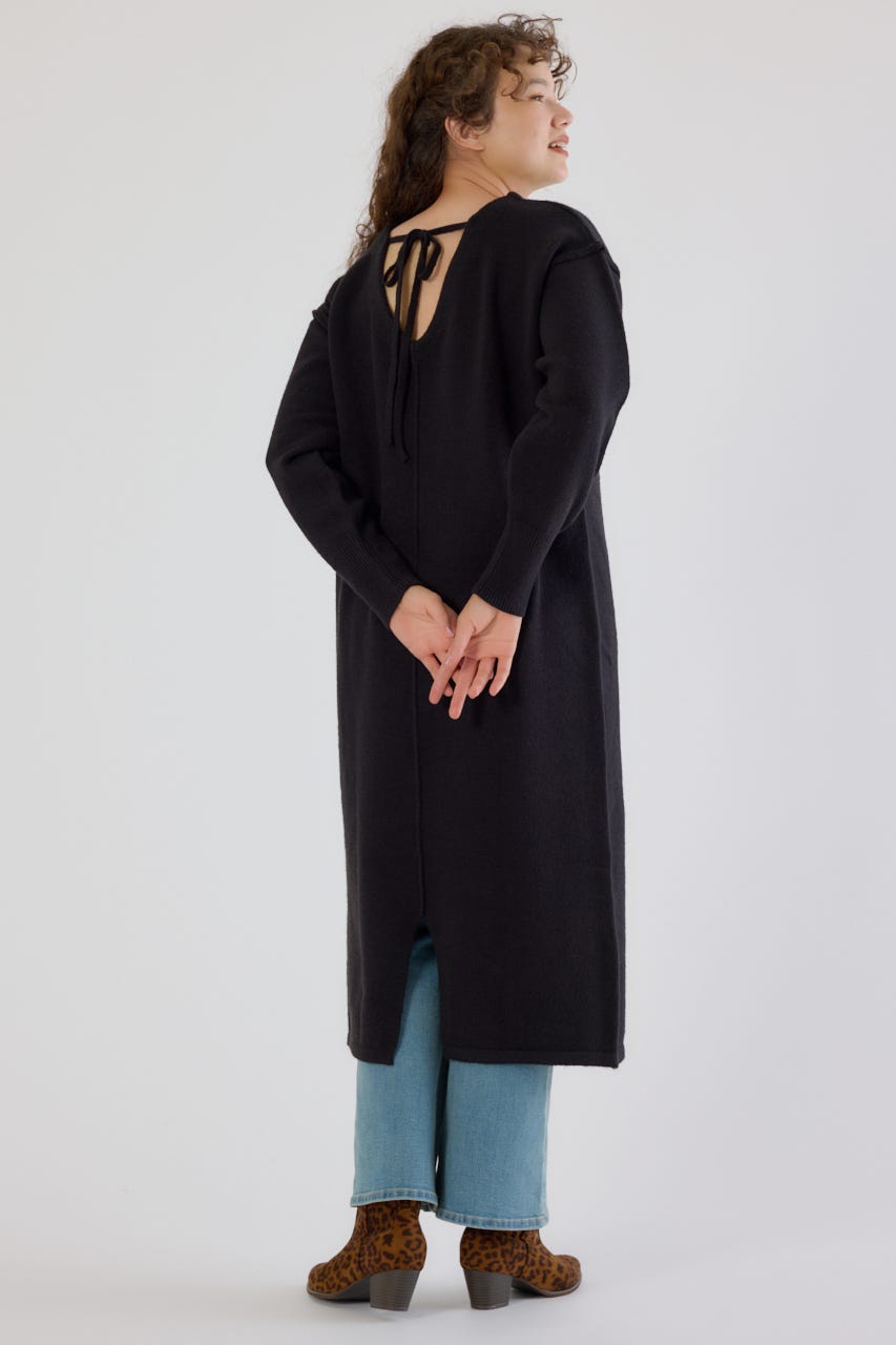 Vネックとクルーネックの仕様になっており、前後2WAYで着まわせる大人ロングニットワンピース。