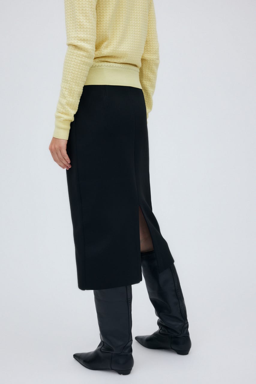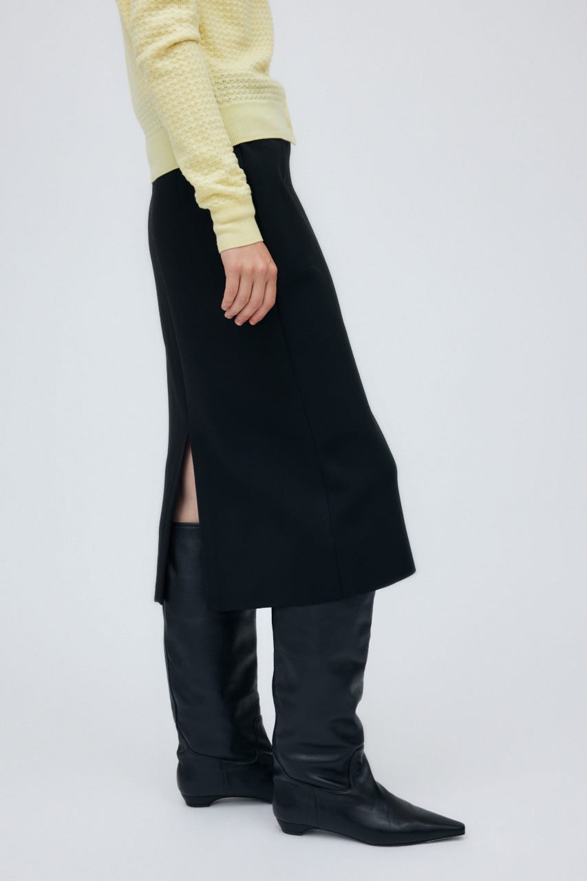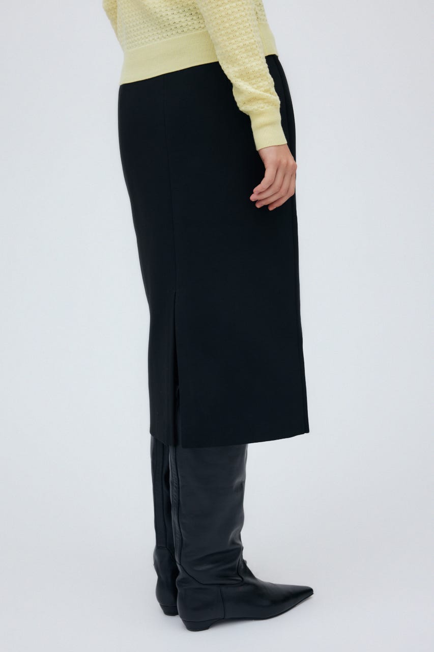 ストレッチ性に優れたポリエステル約100%のペンシルスカート。