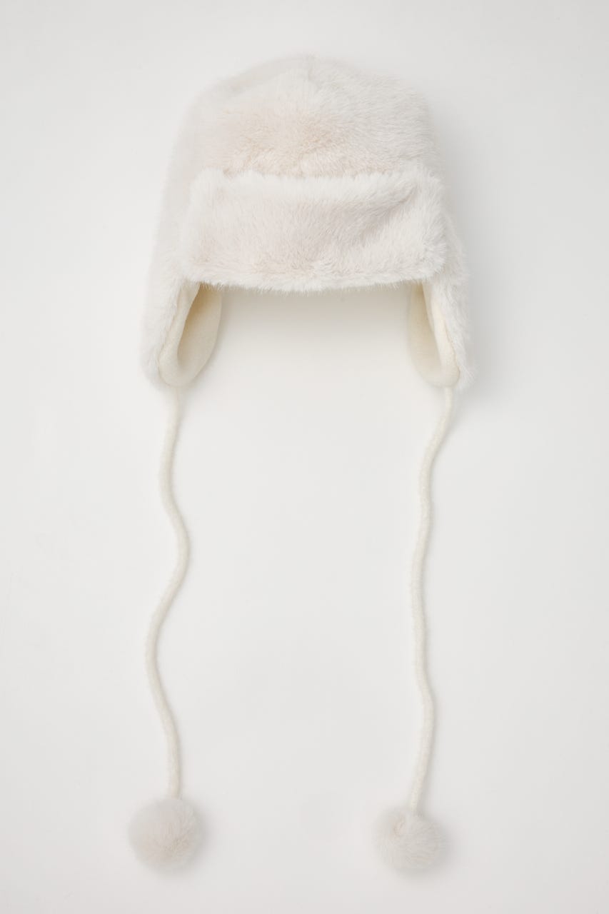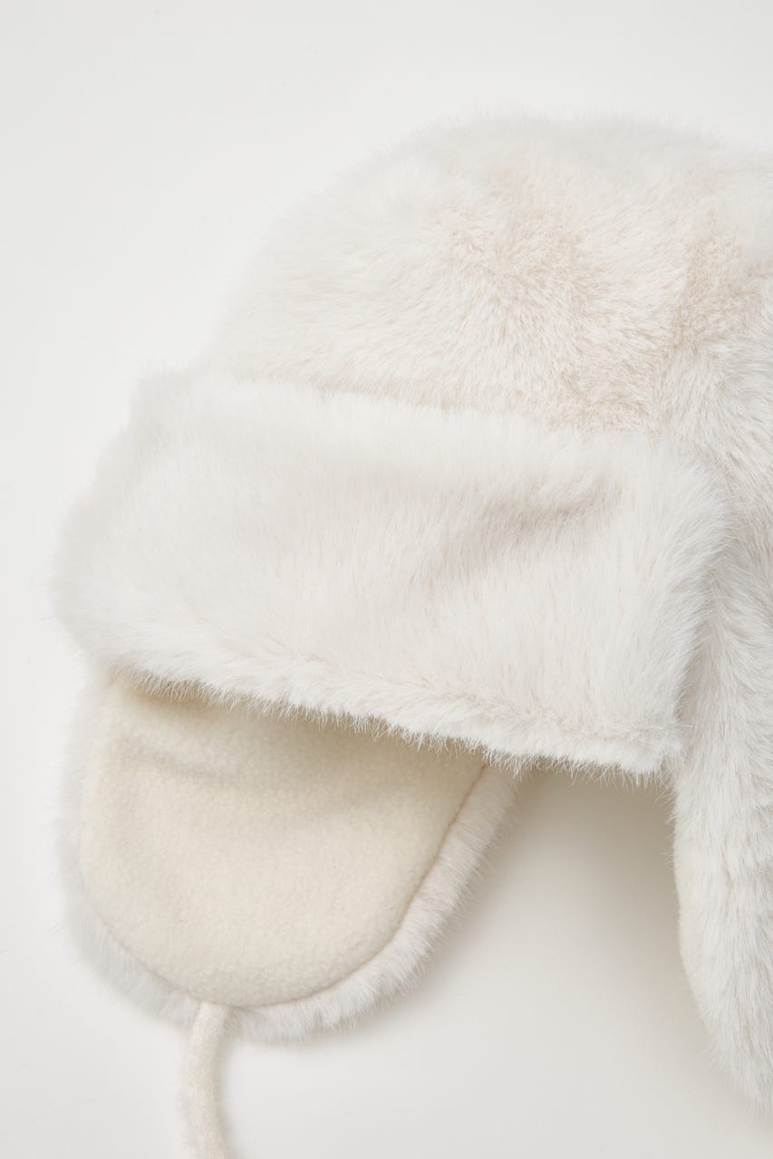 ふわふわのフェイクファーで女性らしい雰囲気になるよう製作したパイロット帽子。
